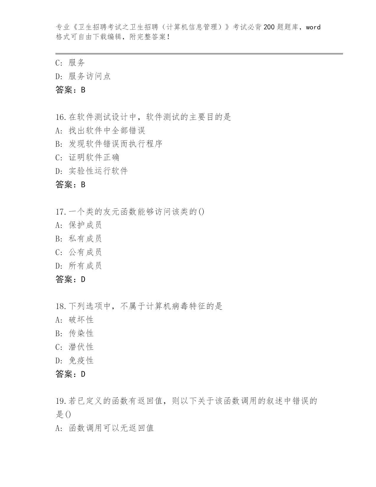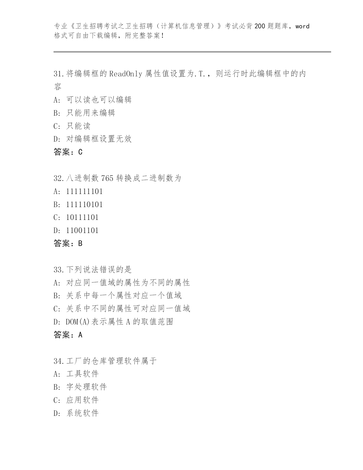 内部使用甘肃省《卫生招聘考试之卫生招聘(计算机信息管理)》考试必背200题真题【夺分金卷】