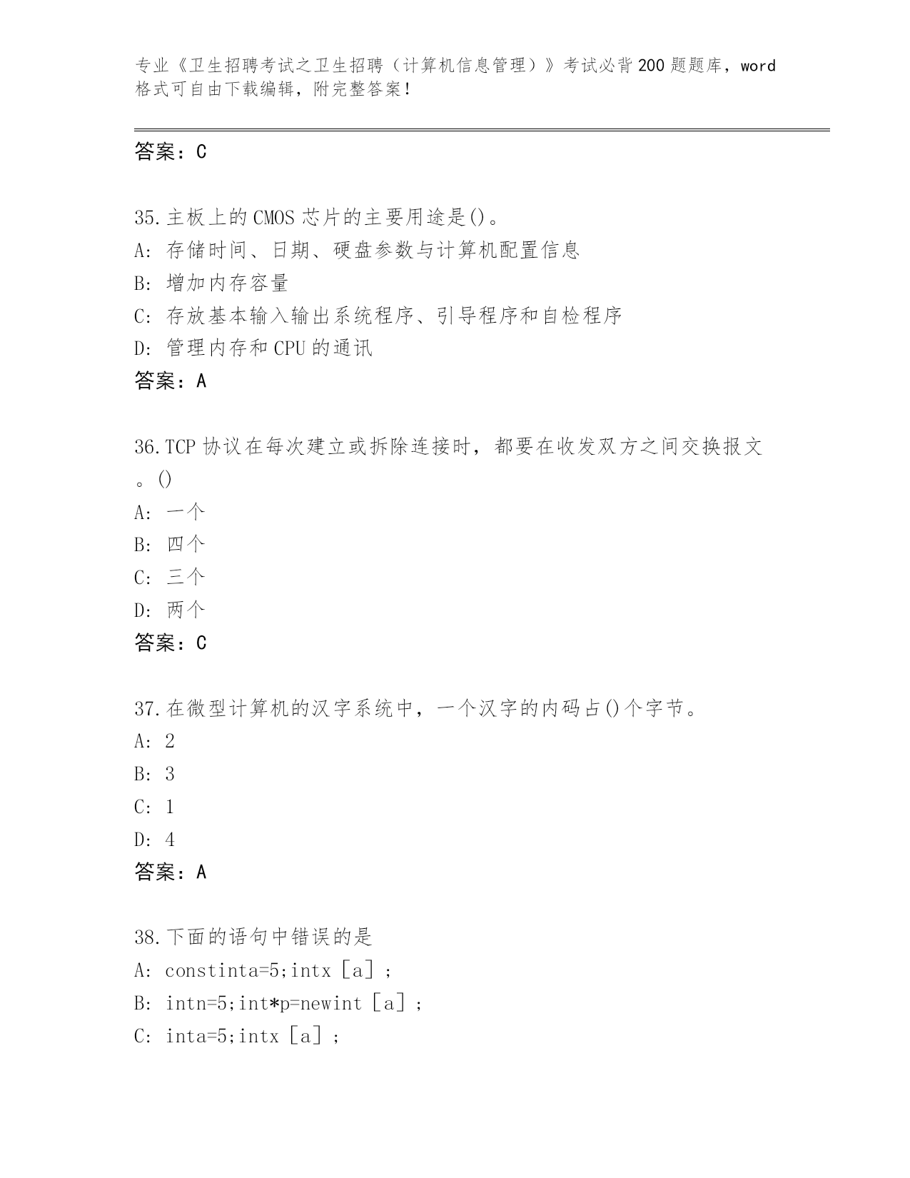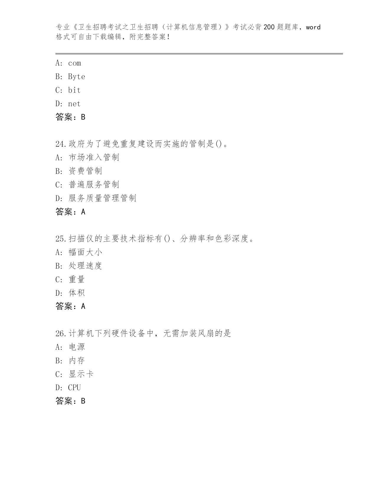 河北省竞秀区2024《卫生招聘考试之卫生招聘(计算机信息管理)》考试必背200题内部题库及参考答案(夺分金卷)