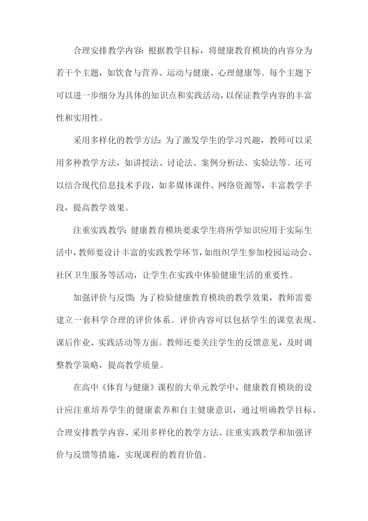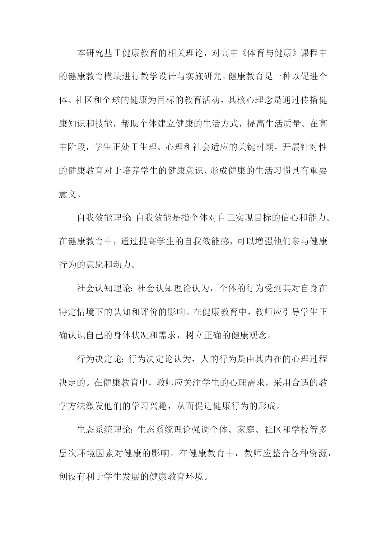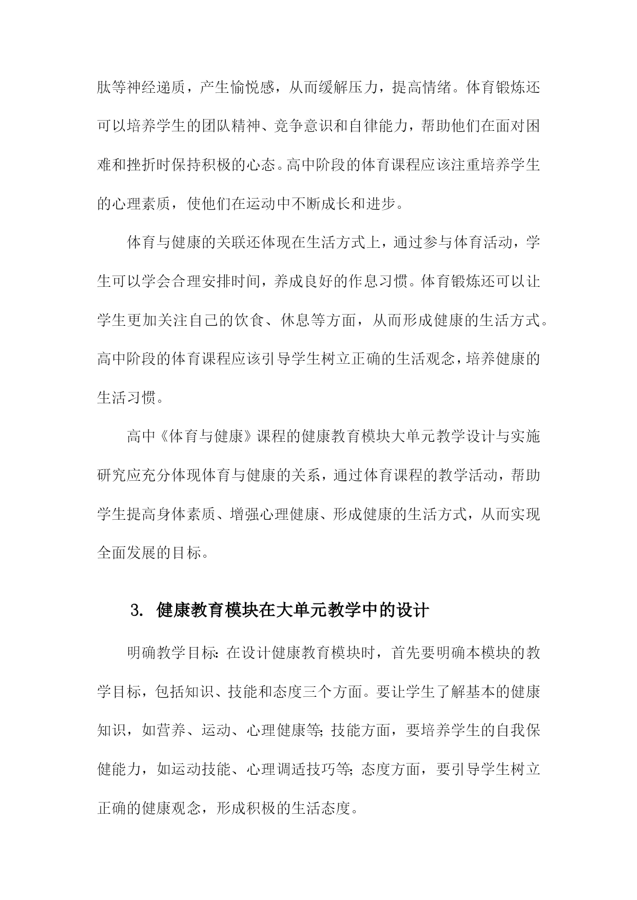 高中《体育与健康》课程健康教育模块大单元教学设计与实施研究