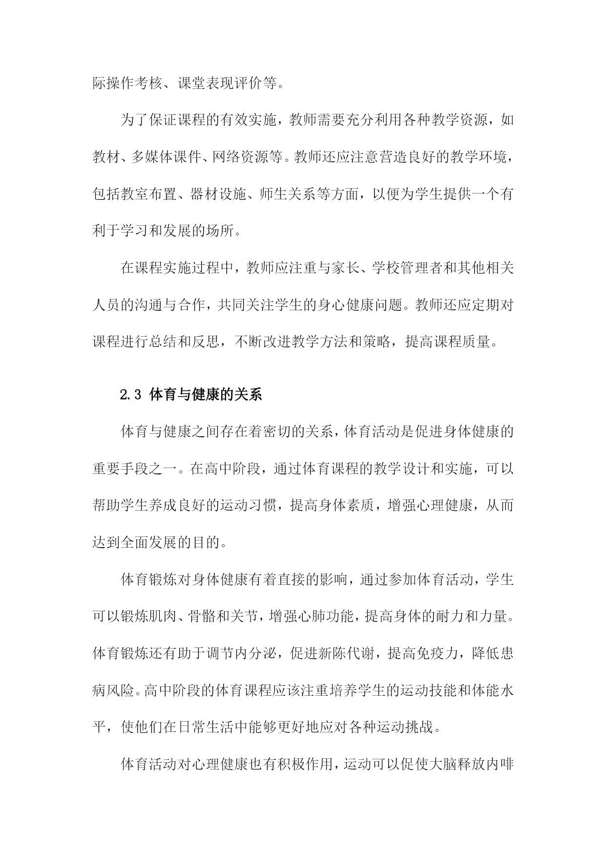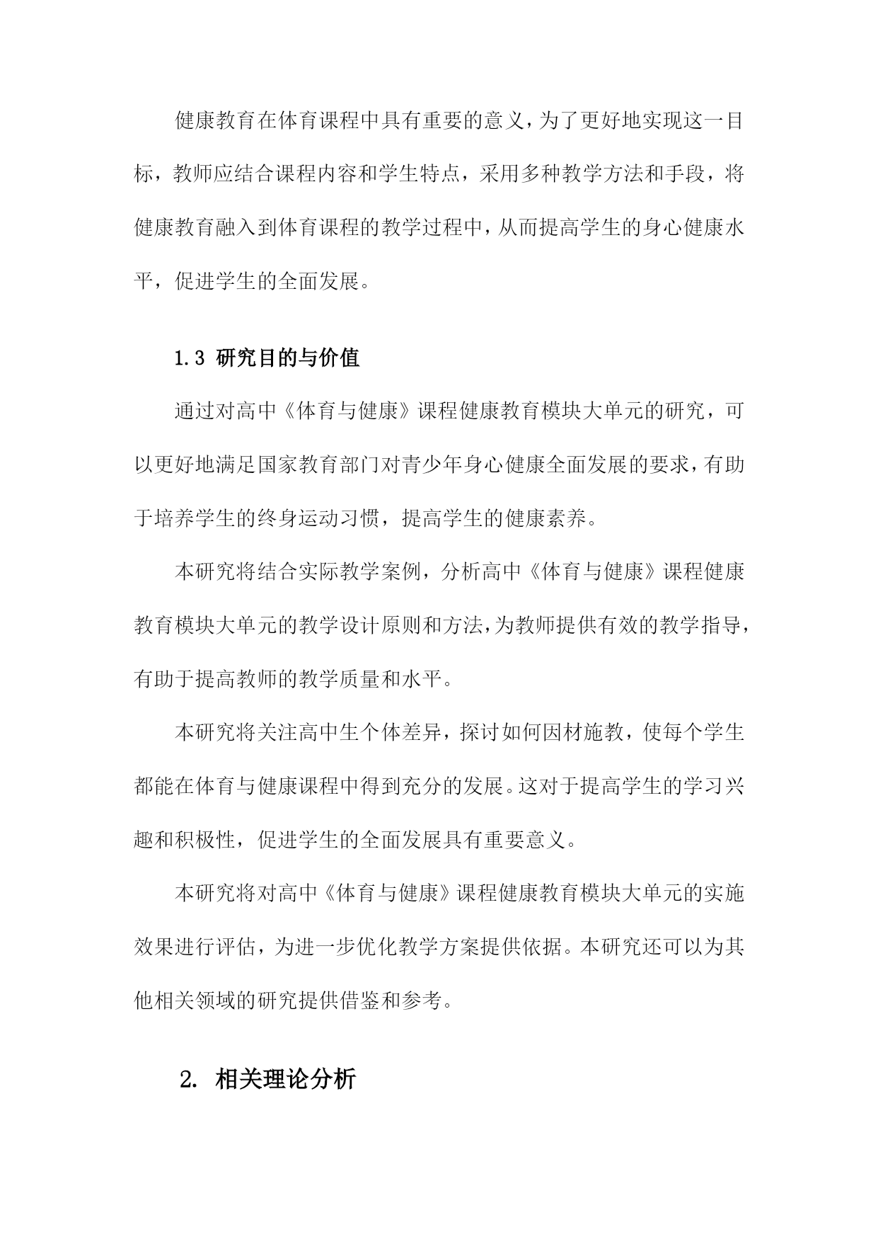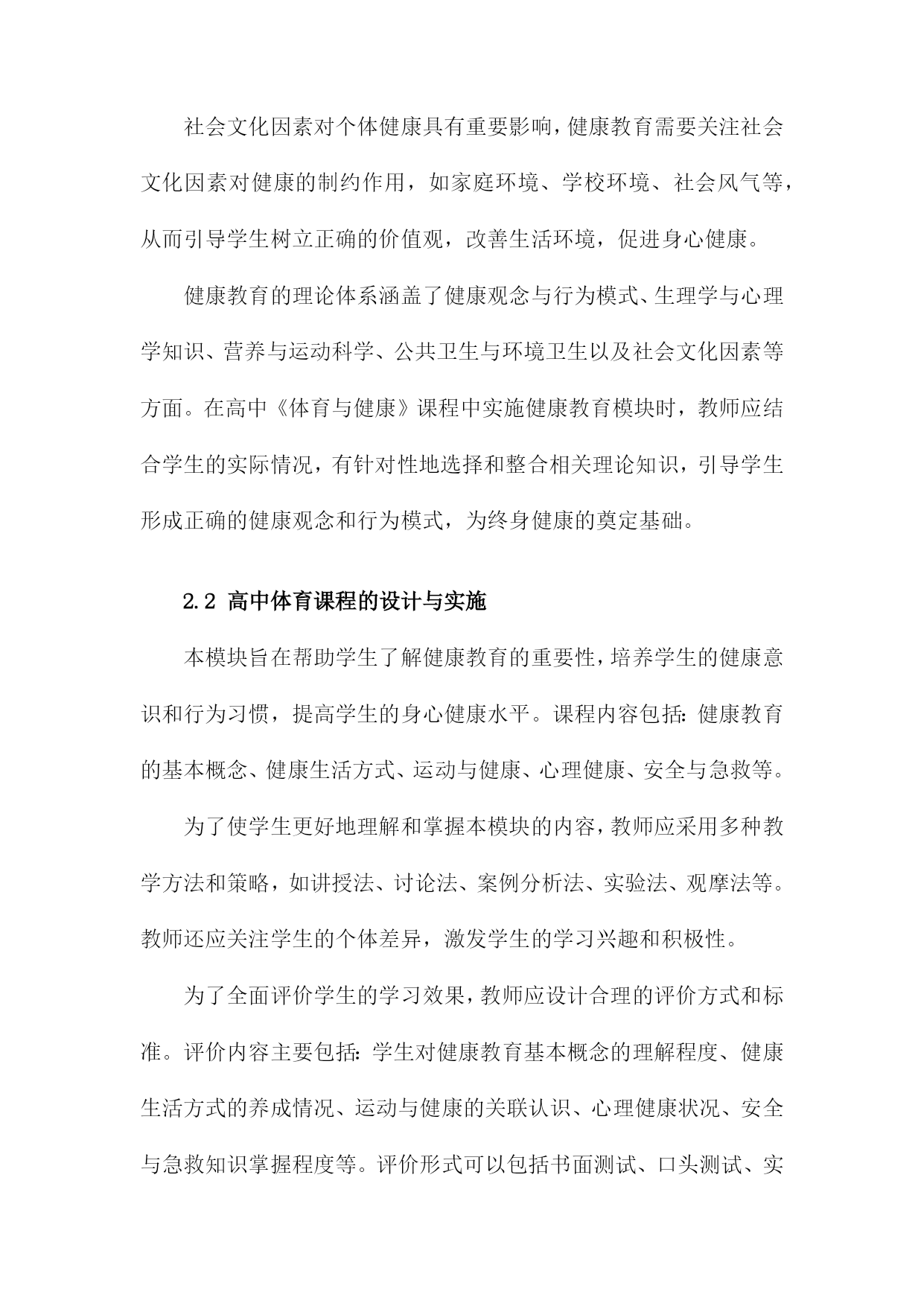 高中《体育与健康》课程健康教育模块大单元教学设计与实施研究