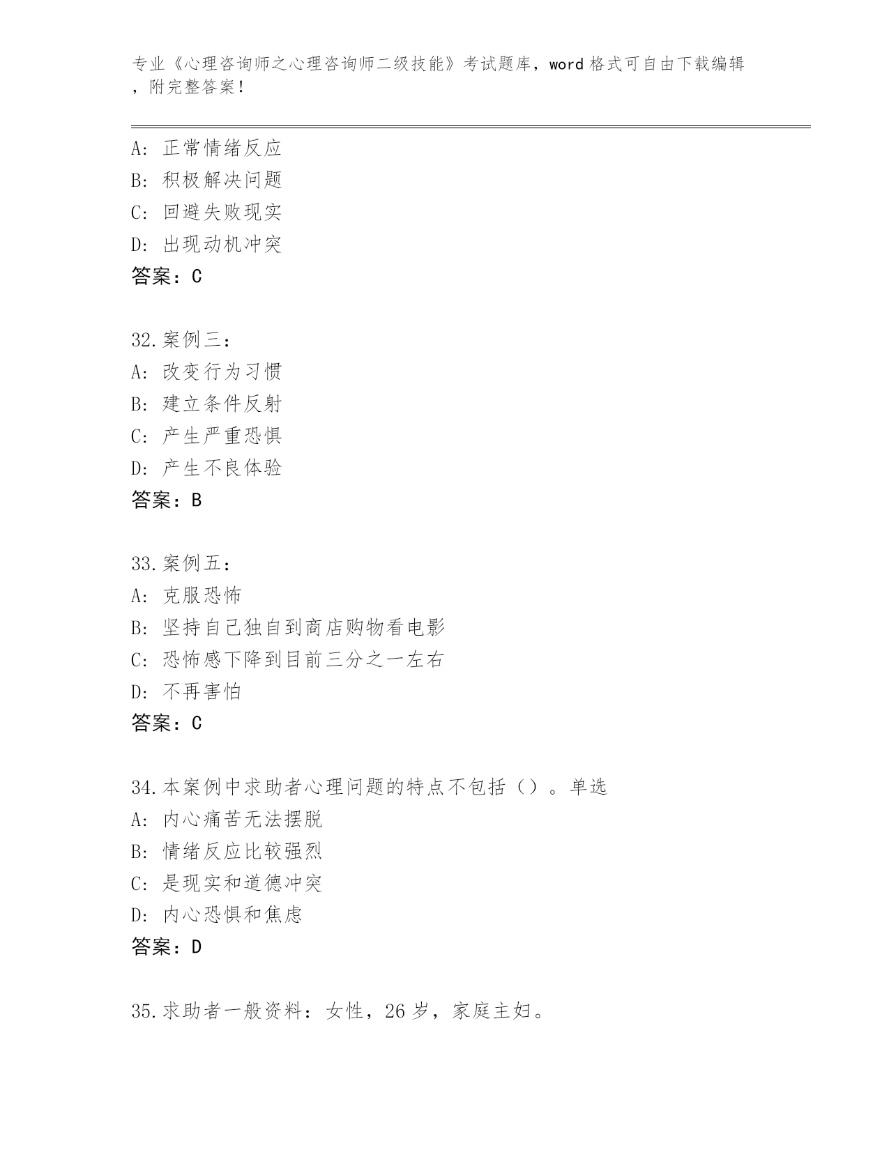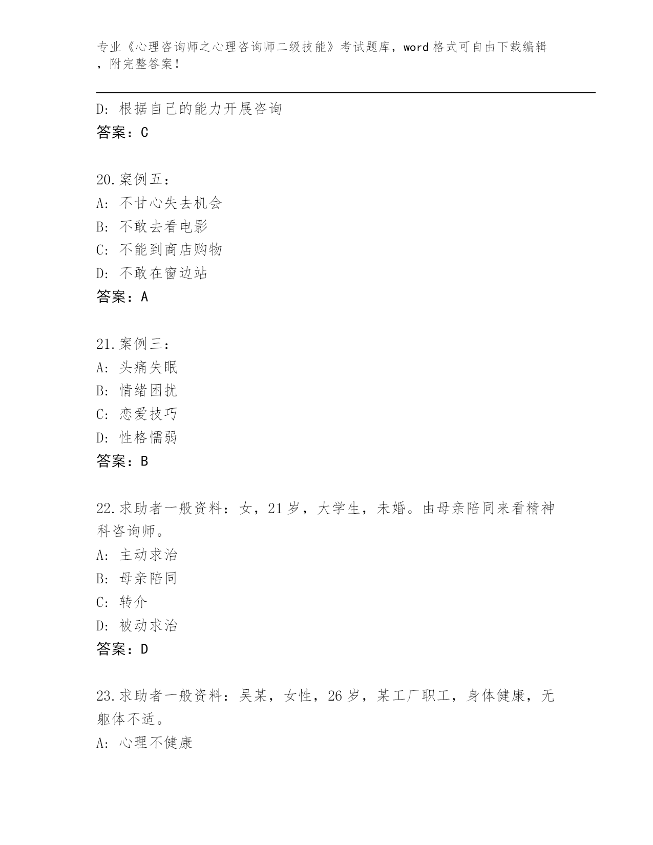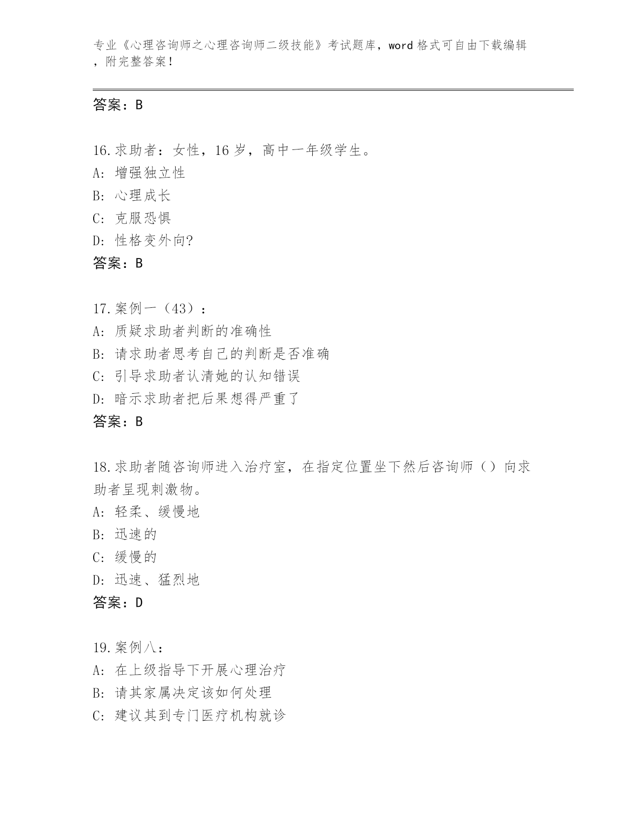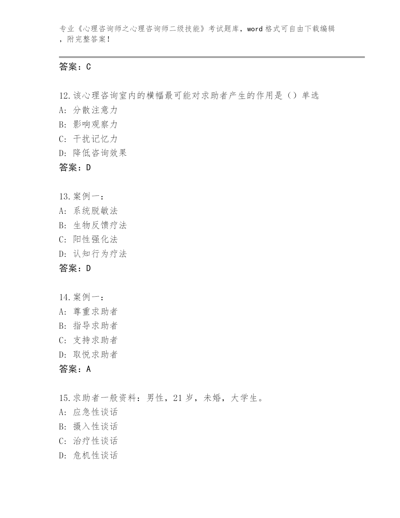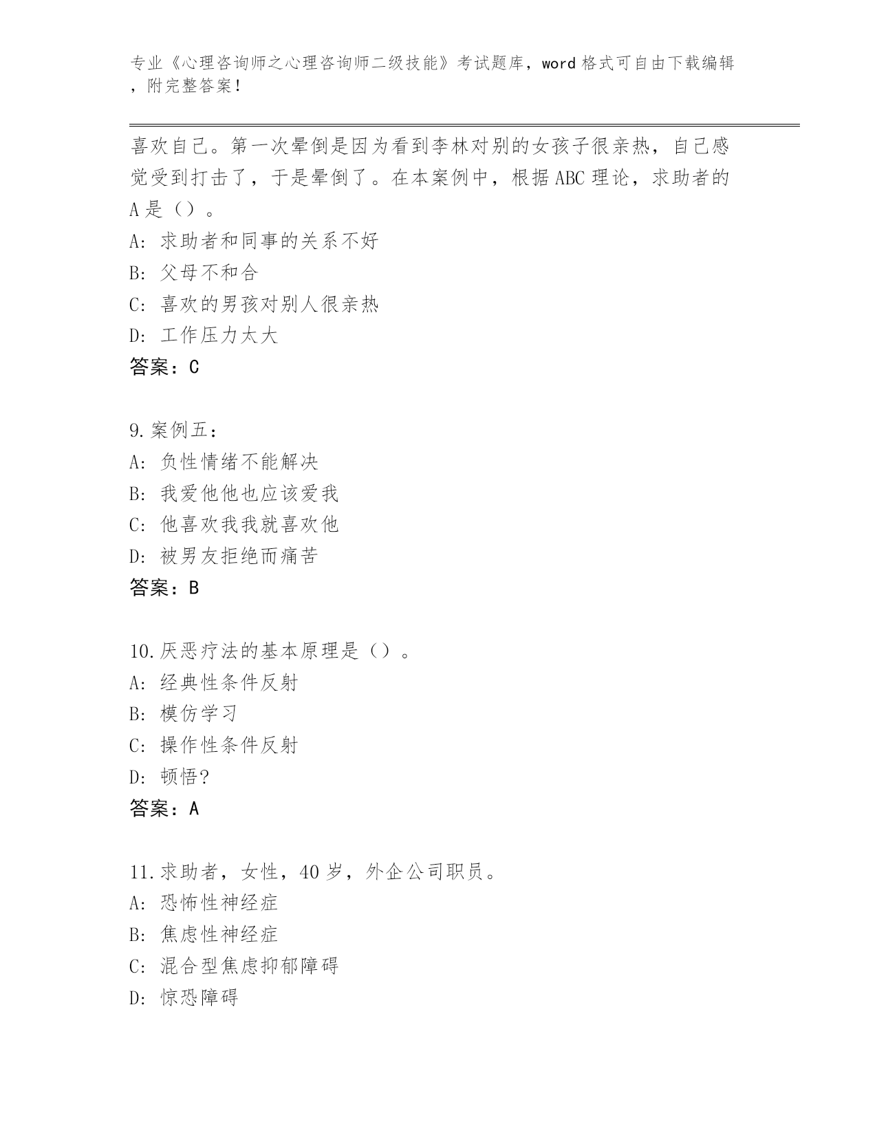 福建省2024年《心理咨询师之心理咨询师二级技能》考试必考200题王牌题库带答案(突破训练)