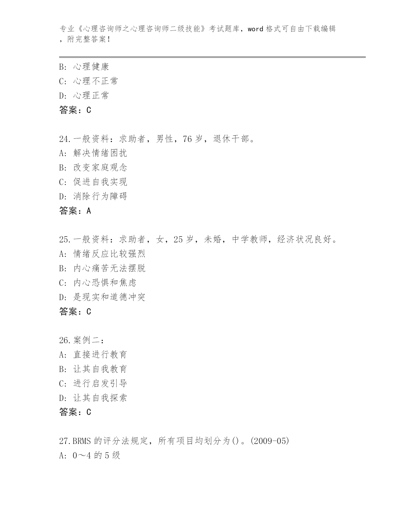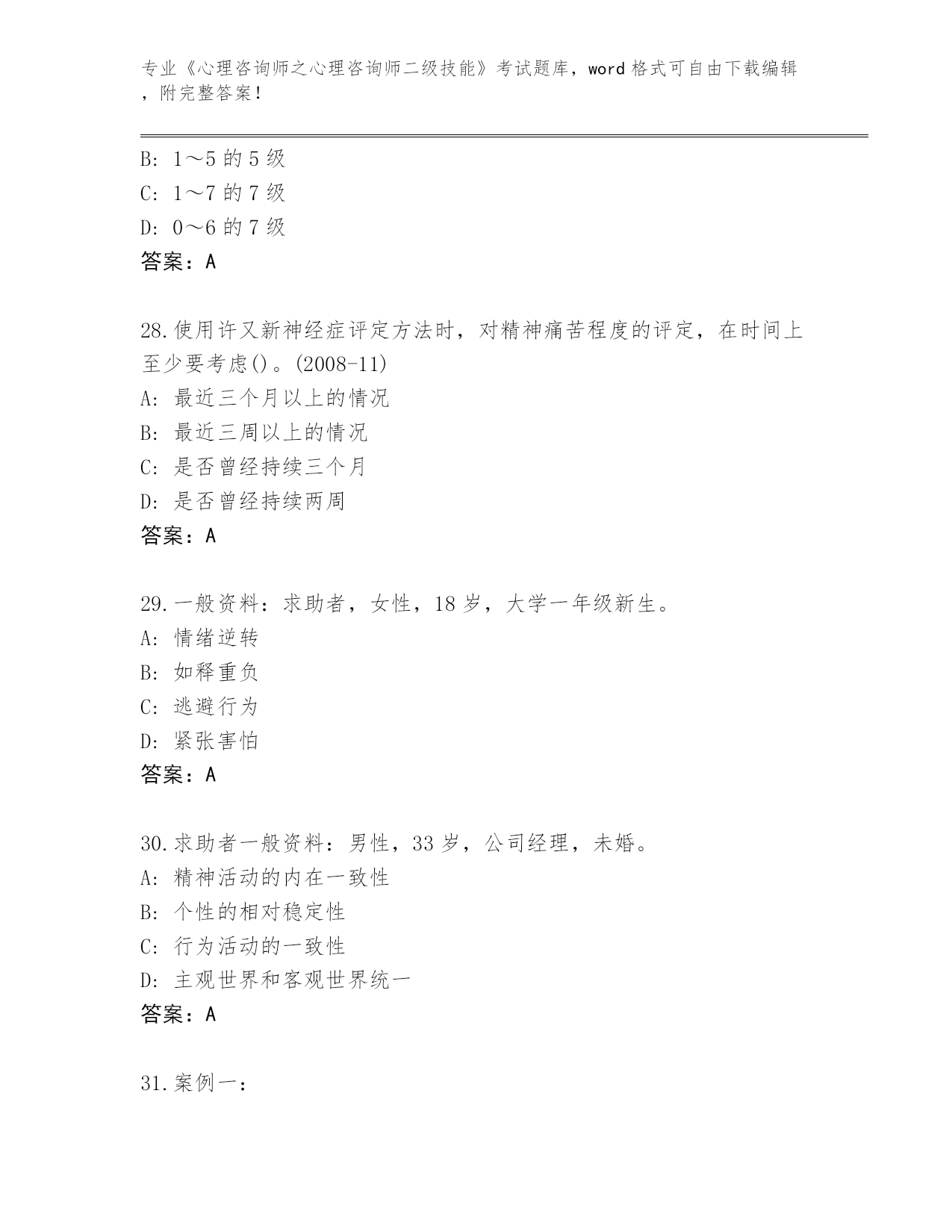 2024安徽省《心理咨询师之心理咨询师二级技能》考试必刷200题题库带答案(突破训练)