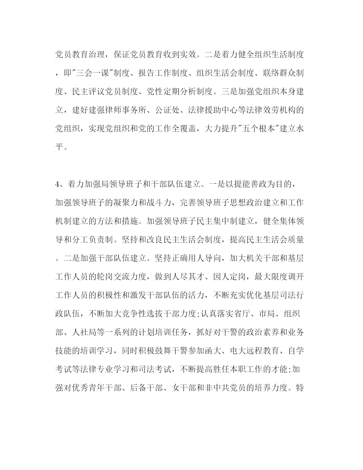 司法局党建工作参考计划范文司法局党建工作计划篇一20xx年,是全面贯彻落实党的十八大精神的开局之年。今年我局党建工作要以"学习贯彻十八大、争创开展新业绩"为主线,以效劳"五个孝昌"建立为主题,牢牢把握效劳中心,建立队伍两大任务,求真务实、开拓创新,发挥优势,积极作为,全面推进党的思想、组织、作风、制度建立,以优良成绩向建县二十周年献礼。一、以学习十八大会议精神为重点提高党员干部理论素养1、认真学习、深化领会、全面贯彻党的十八大会议精神。一是迅速兴起学习宣传贯彻党的十八大的热潮,以作为机关党的建立的严峻政治任务抓紧落实。通过组织专题辅导,参加党的十八大报告和党章知识竞赛,举办专题学习班,引导党员干部紧密结合实际开展学习研讨,把思想和行动统一到十八的精神上来,把智慧和力量凝聚到实现十八确定的宏伟目的和各项任务上来。并结合我局的详细工作,深化研究贯彻落实十八精神的思路和重点,努力创始各项工作的新场面,不断提高党支部建立的整体水平;二是以理想信念教育为重点,接着深化开展政法干警核心价值观学习教育活动。通过政法干警核心价值观的教育实践,使广大司法行政干警不断保持"忠诚"的政治本色,保持"为民"的主旨理念,保持"公正"的价值追求,保持"廉洁"的根本操守;三是坚持把学习贯彻中央、省、市政法会议和全县三级干部大会、司法行政会议精神贯穿不断,引导党员干部把学习理论同研究处理司法行政领域的深层次矛盾、党的建立的突出征询题结合起来,大力推进理论学习成果的转化;四是加强党的知识学习和教育。组织干警认真学习党的历史、党的根本理论和道路方针政策,广泛开展革命传统教育,颂扬革命精神、不断加强党员党性认识、忧患认识、效劳认识和大局认识。2、建立学习理论考核方法和鼓舞机制。一是深化拓展理论业务学习"四审制",中心组成员的学习情况由一把手负责检查,一把手的学习情况交由县工委办检查考核,每季度对本单位党员干部的学习情况检查一次,半年评比一次,年终进展考核总评。二是坚持理论学习制度,建立学习型机关。制定本年度学习计划,创新学习方式,丰富学习内容,强化学习措施,明确学习要求,完善学习考勤制度,建立个人学习档案,实行一人一档,将干警学习情况作为年度公务员考核和评优表模的重要依照,进一步营建"全员抓学习"的浓重气氛。二、以抓队伍建立为重点加强机关党的组织建立3、健全机关党的基层组织。一是落实党支部工作责任,实在加强对党员教育治理,保证党员教育收到实效。二是着力健全组织生活制度,即"三会一课"制度、报告工作制度、组织生活会制度、联络群众制度、民主评议党员制度、党性定期分析制度。三是加强党组织本身建立,建好建强律师事务所、公证处、法律援助中心等法律效劳机构的党组织,实现党组织和党的工作全覆盖,大力提升"五个根本"建立水平。4、着力加强局领导班子和干部队伍建立。一是以提能善政为目的,加强领导班子的凝聚力和战斗力,完善领导班子思想政治建立和工作机制建立的方法和措施。加强领导班子民主集中制建立,健全集体领导和分工负责制。坚持和改良民主生活会制度,提高民主生活会质量。二是加强干部队伍建立。坚持正确用人导向,加大机关干部和基层工作人员的轮岗交流力度,做到人尽其才、因人定岗,最大限度调开工作人员的积极性和激发干部队伍的活力,不断充实优化基层司法行政队伍,不断加大竞争性选拔干部力度;认真落实省厅、市局、组织部、人社局等一系列的计划培训任务,抓好对干警的政治素养和业务技能的培训学习,同时积极鼓舞干警参加函大、电大远程教育、自学考试等法律专业学习和司法考试,不断提高胜任本职工作的才能;加强对优秀青年干部、后备干部、女干部和非中共党员的培养力度。特别是35岁以下,具有大专学历的干部均列为重点培养对象,做到有计划、有步骤地培养和锻炼。5、开展方式多样的组织生活。按照《党章》规定,认真落实"三会一课"制度、民主评议党员制度、党员电教播放制度、民主生活会制度、民主集中制度。一是落实局党组成员讲党课。要求每名党组成员将党章等知识结合工作实际,主讲一次党课;二是经常性地开展党员电化教育,进展先进典型教育和警示教育;三是充分发挥"党员之家"的阵地作用。把党员活动室建立成为党员学习培训的场所、组织党内生活的场所、开展文体活动的场所;四是组织党员开展好"先进基层党组织"、"优秀共产党员"、"优秀党务工作者"的推荐评选活动,通过树立典型、表彰先进,进一步营建局机关发奋向上的良好工作风气;五是组织党员重温入党誓词、重读红色经典、瞻仰革命旧址、走访革命前辈和召开报告会、座谈会等方式,对干警进展生动深化的革命传统和理想信念教育;六是开门见山、广纳贤言,开展好民主评议党员和公务员年度测评会,营建团结协作、真诚相处、同谋开展的良好气氛;七是以支部为单位,以岗位为重点,签订完成好党员目的治理责任