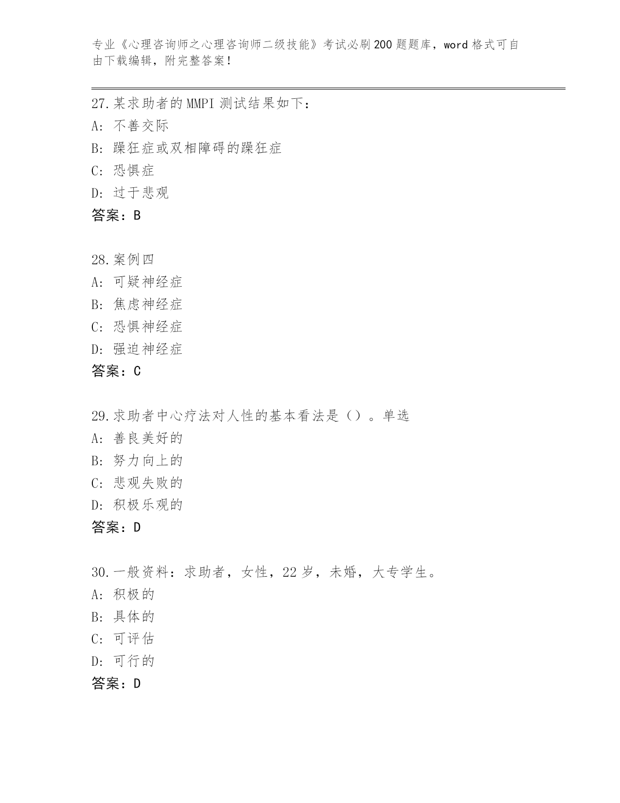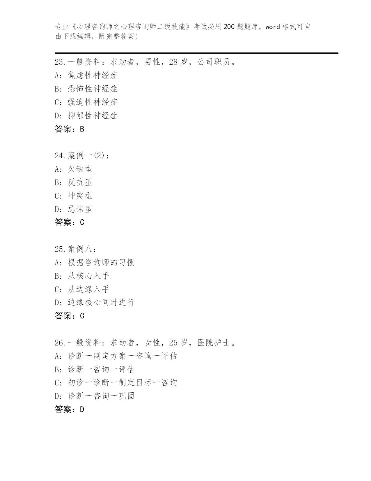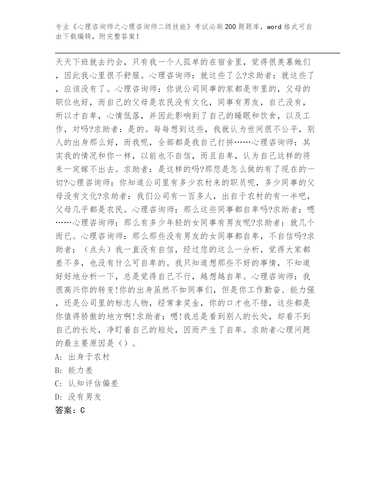 2024年黑龙江省青冈县《心理咨询师之心理咨询师二级技能》资格考试必刷200题题库及答案解析