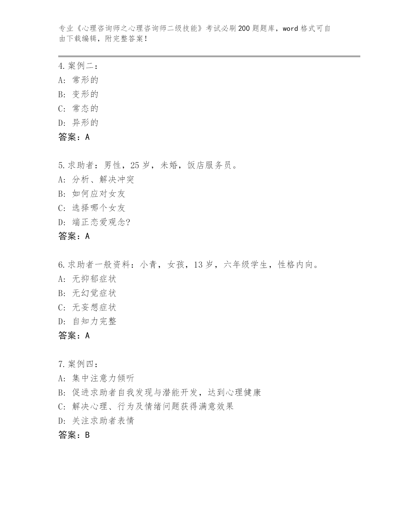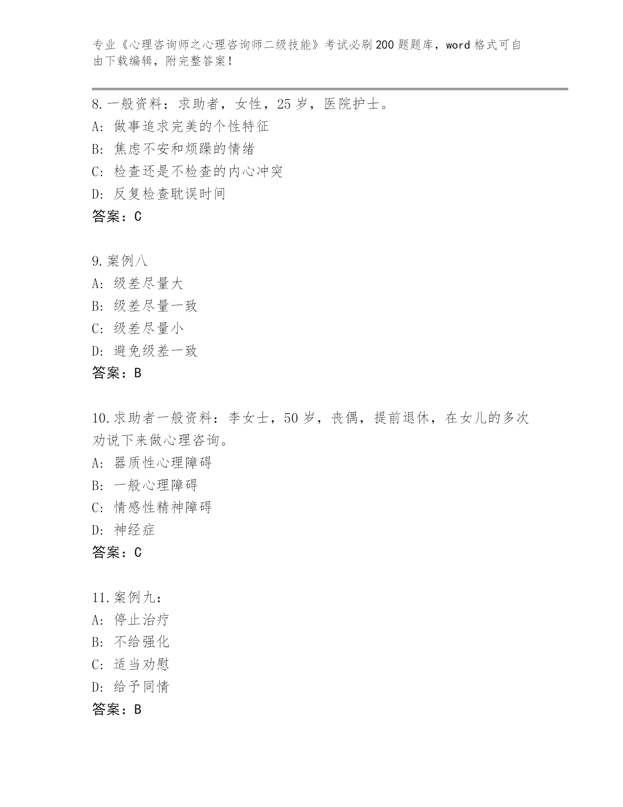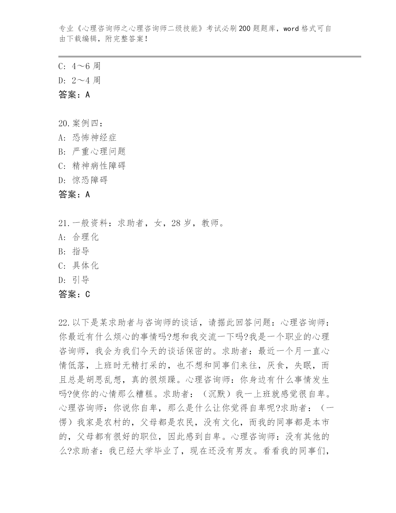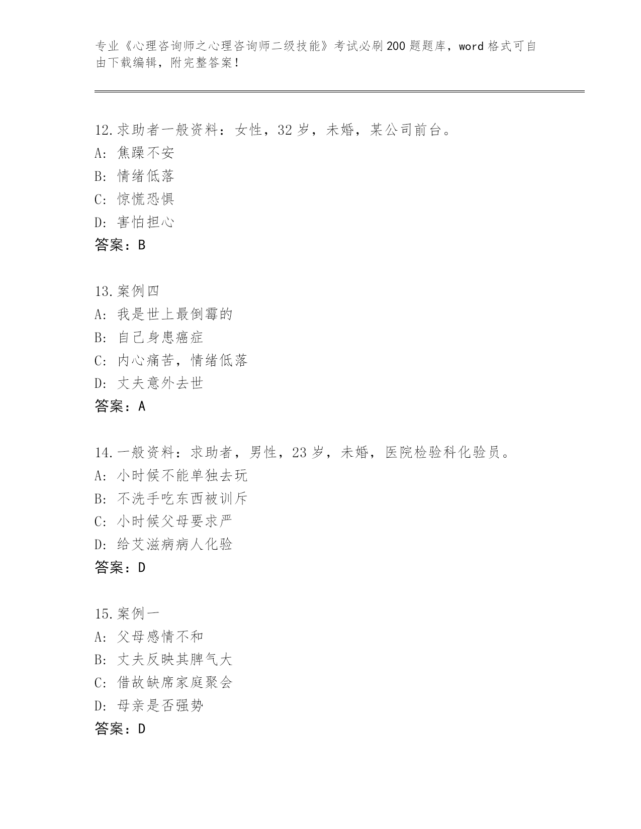 2024年黑龙江省青冈县《心理咨询师之心理咨询师二级技能》资格考试必刷200题题库及答案解析