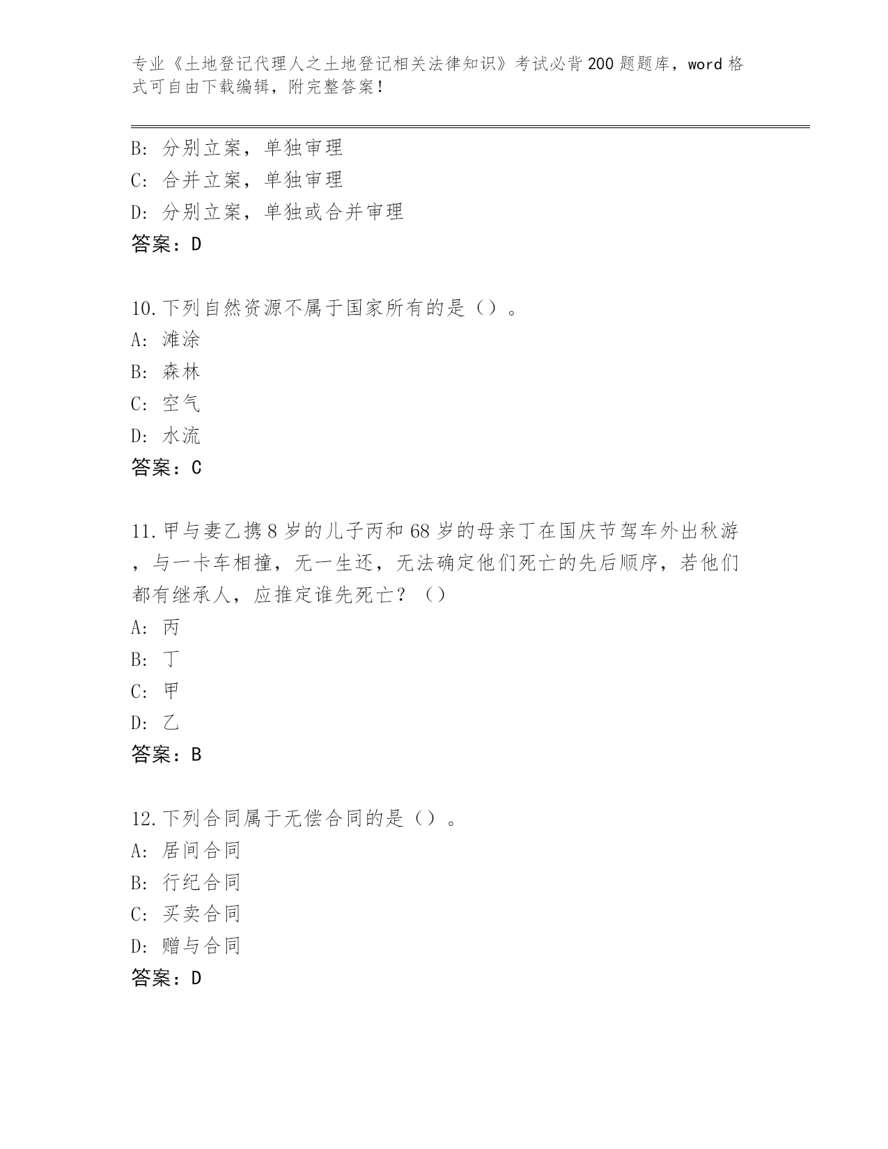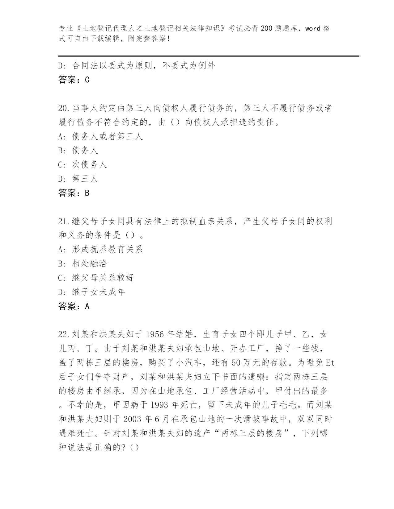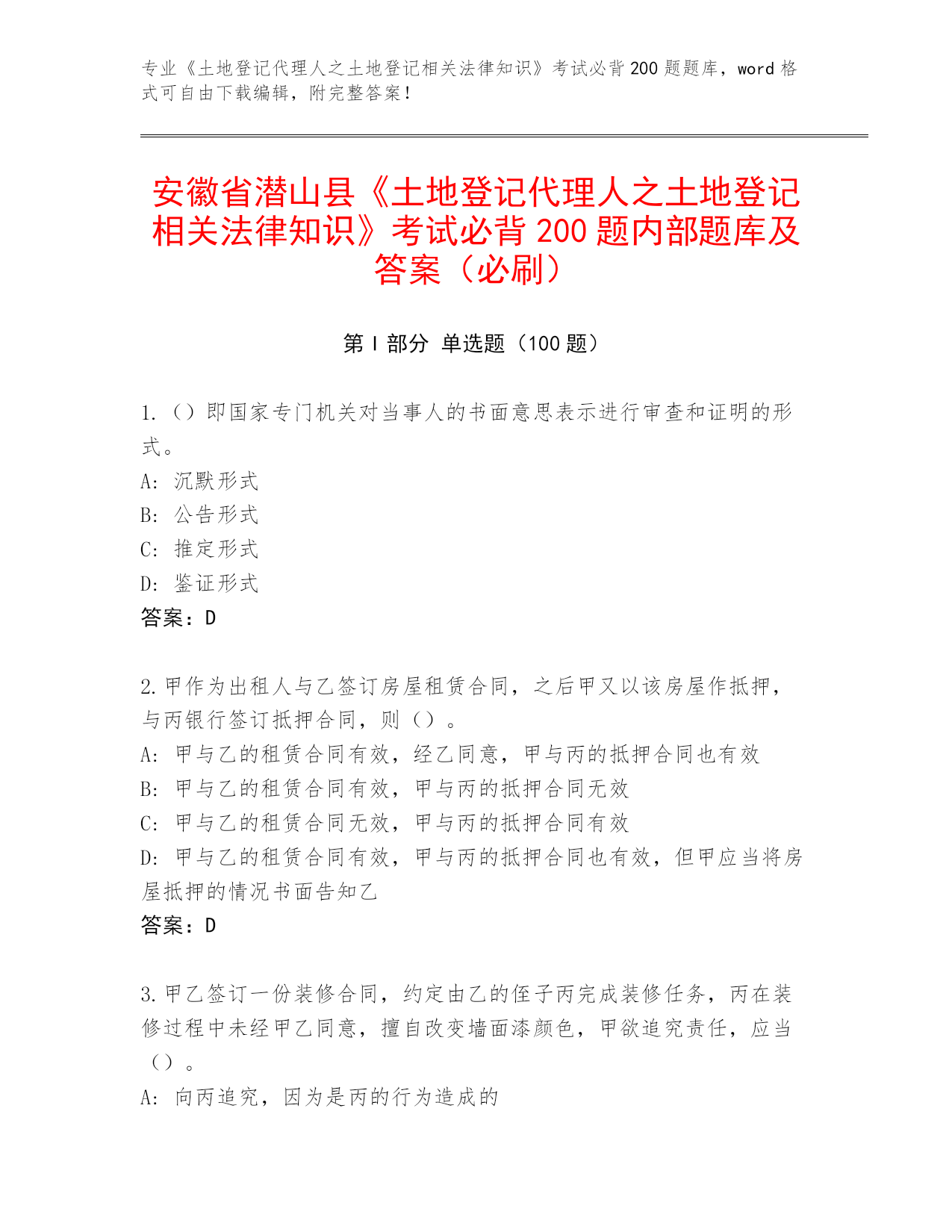 安徽省潜山县《土地登记代理人之土地登记相关法律知识》考试必背200题内部题库及答案(必刷).docx