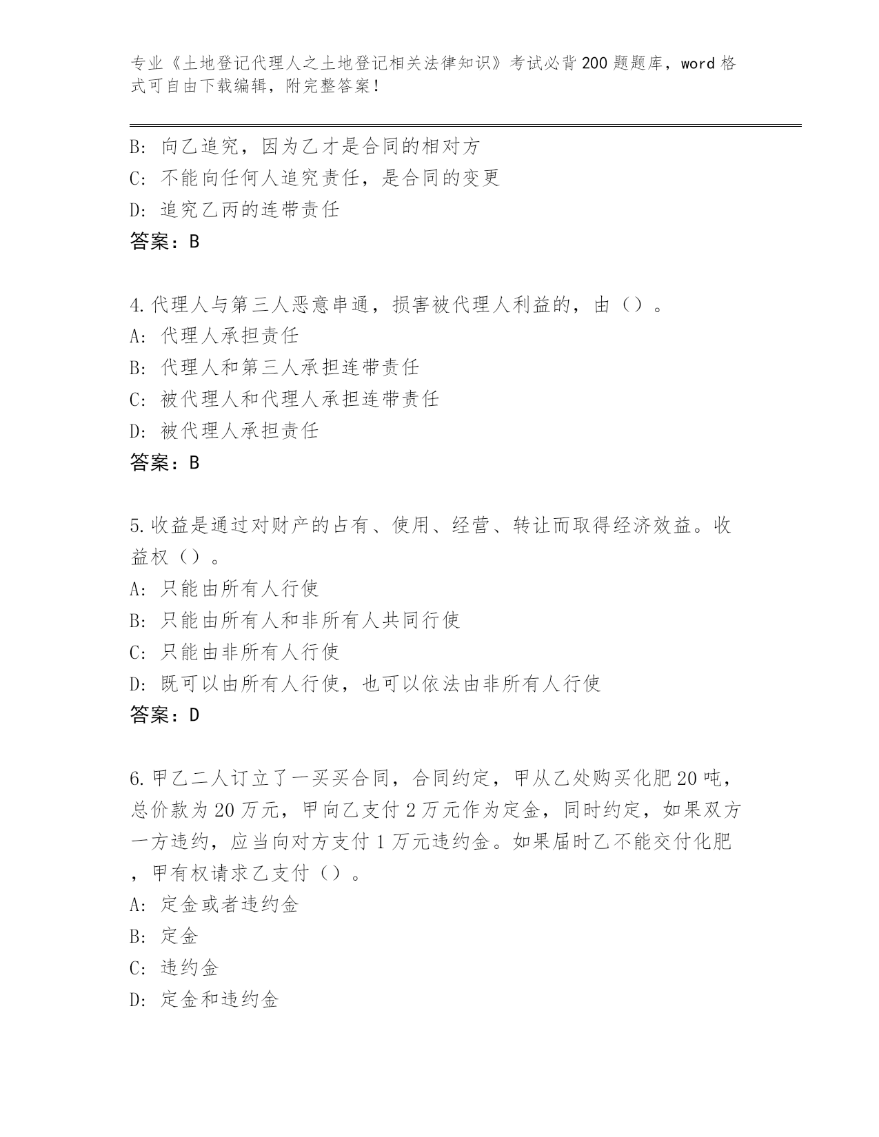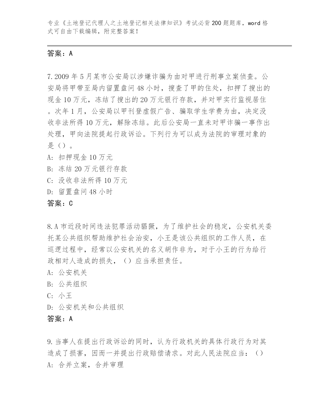 2024黑龙江省泰来县《土地登记代理人之土地登记相关法律知识》资格考试必刷200题真题(网校专用)