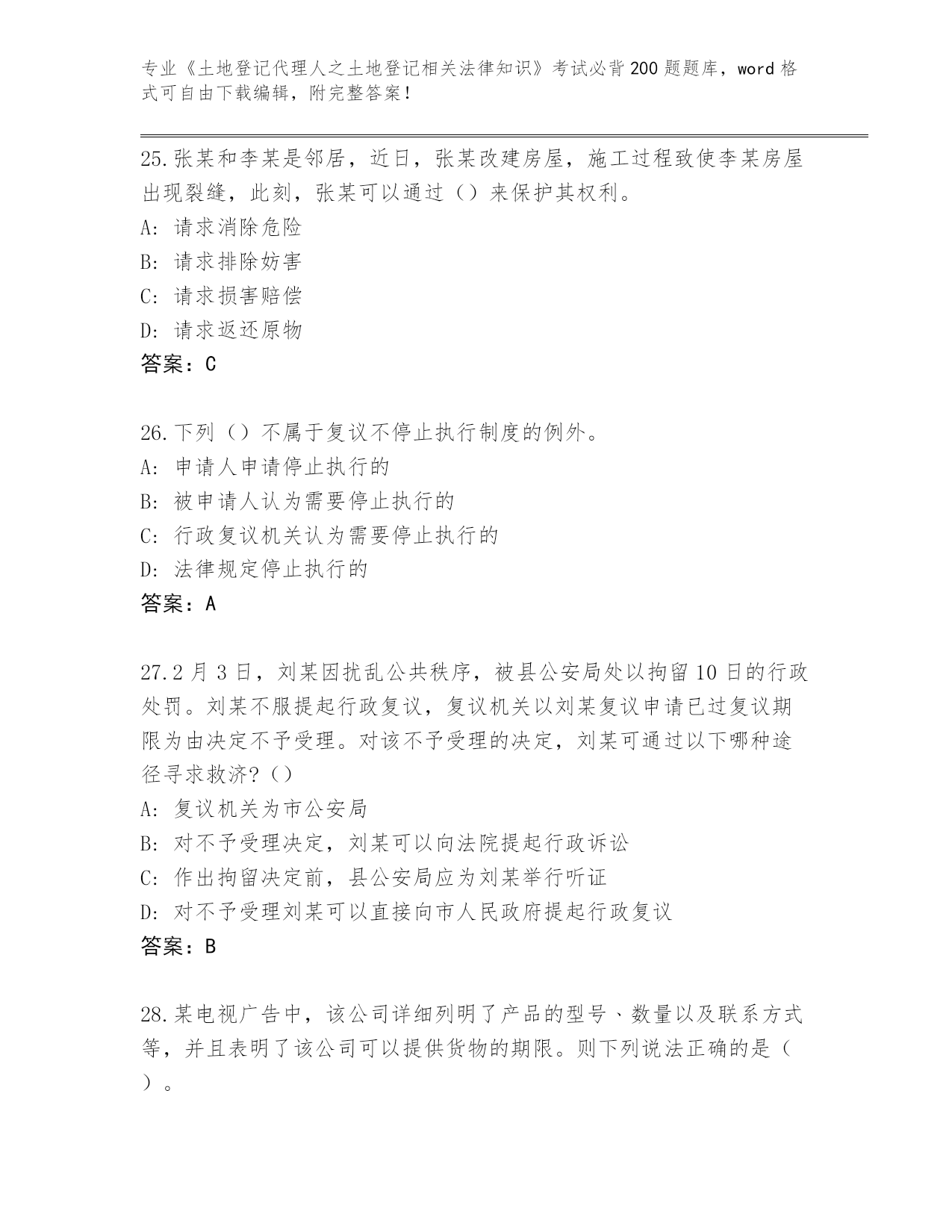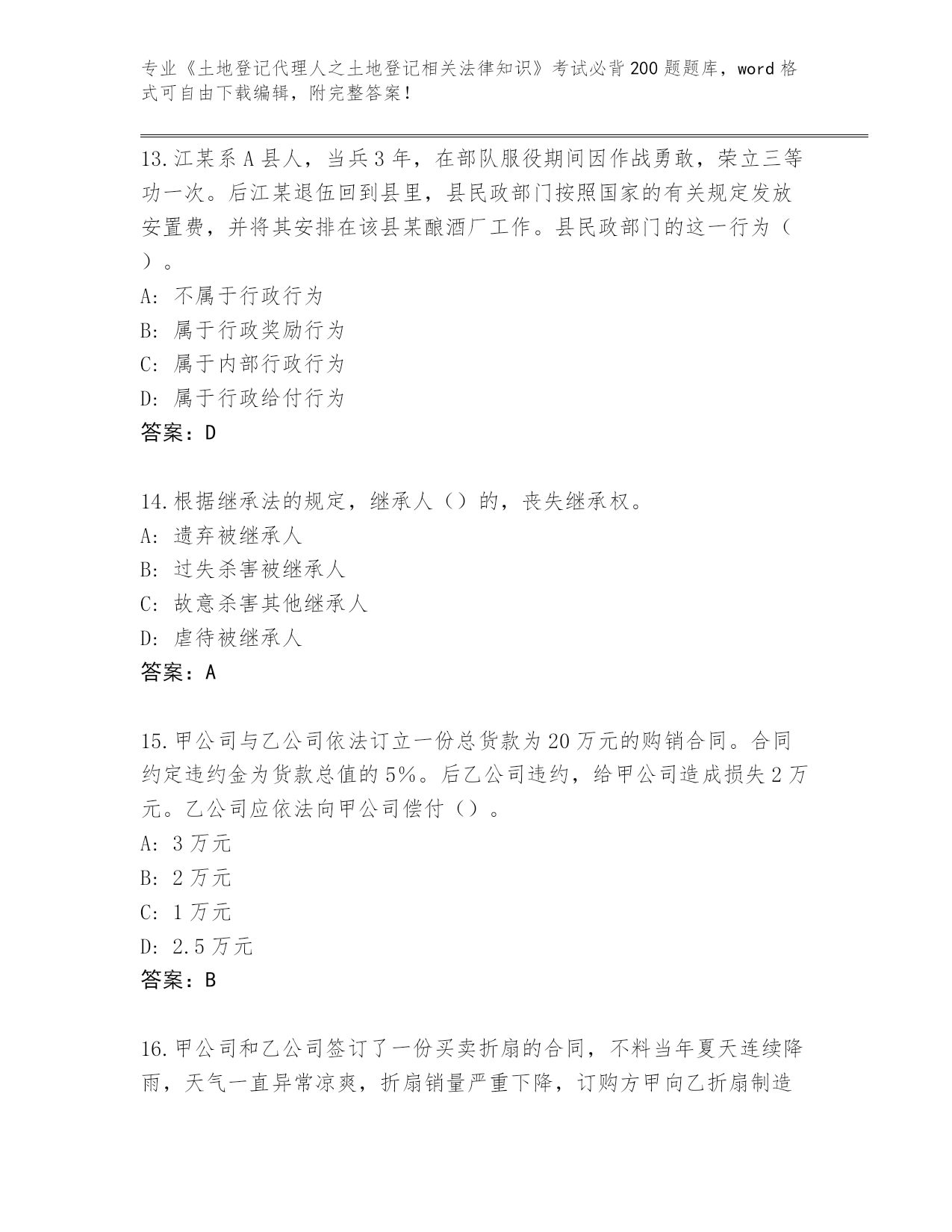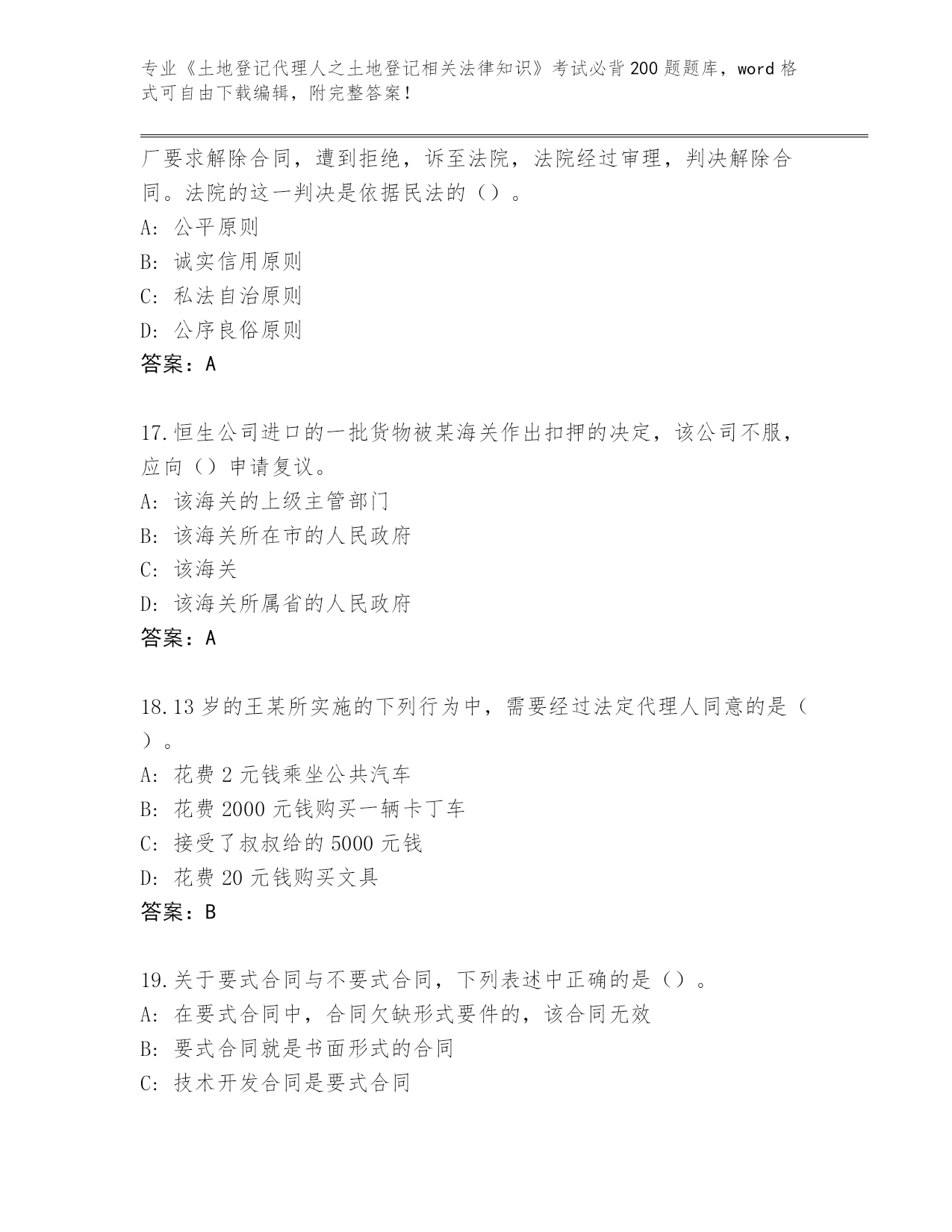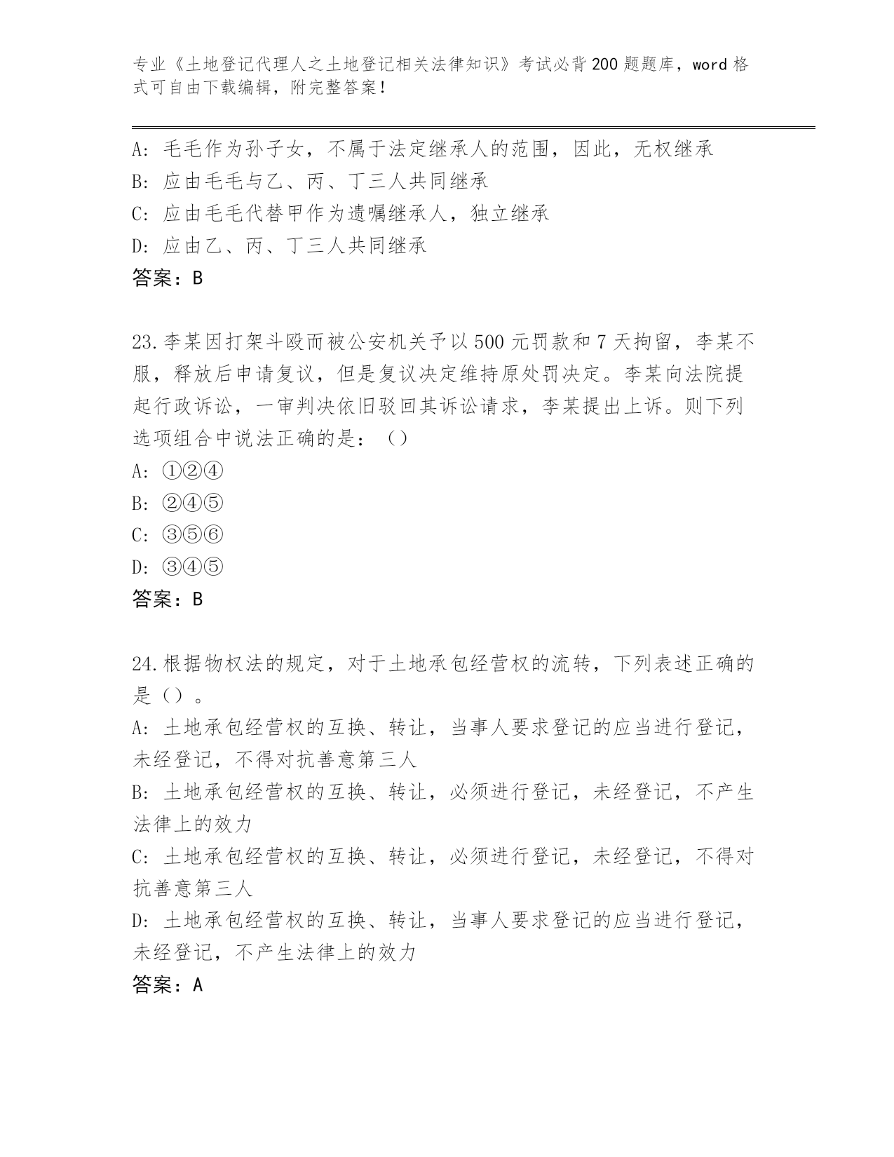2024年江西省新干县《土地登记代理人之土地登记相关法律知识》资格考试必刷200题题库(突破训练)
