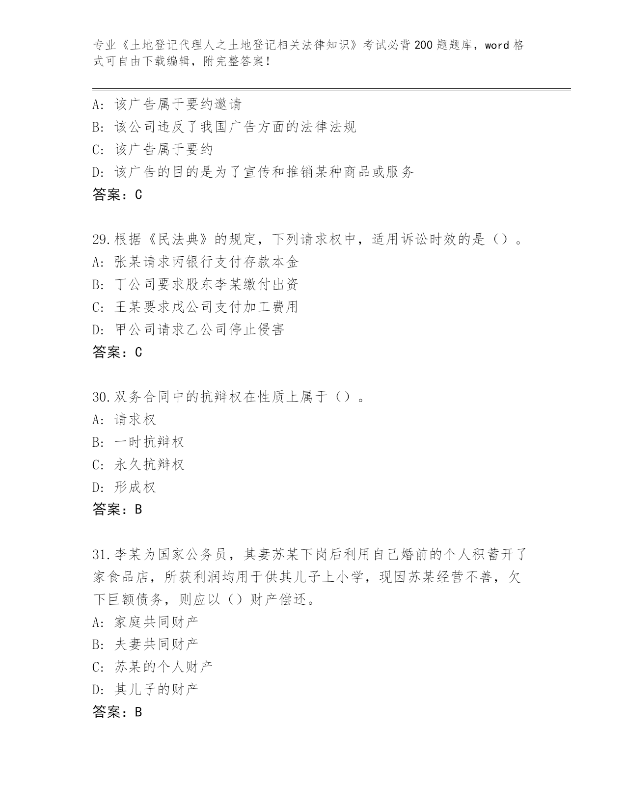 陕西省商州区2024年《土地登记代理人之土地登记相关法律知识》考试必背200题题库及答案(真题汇编)
