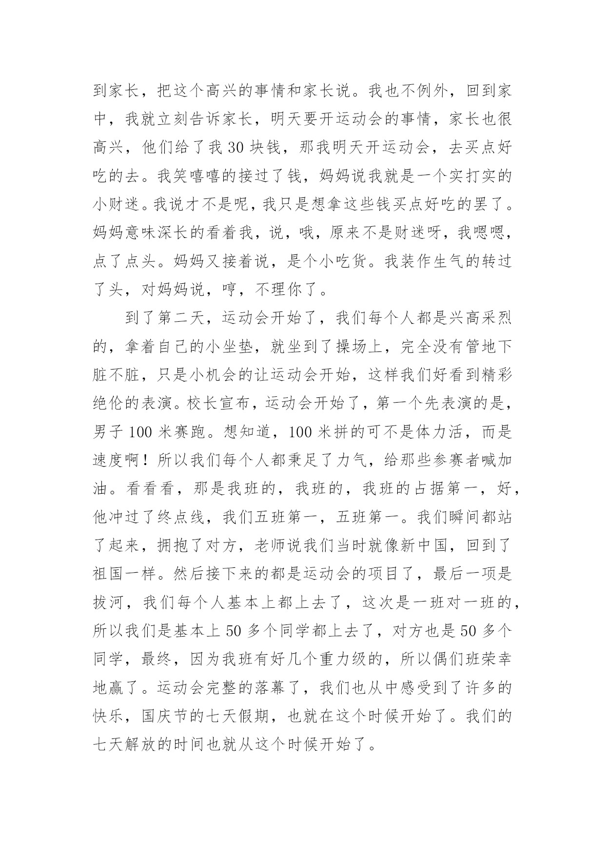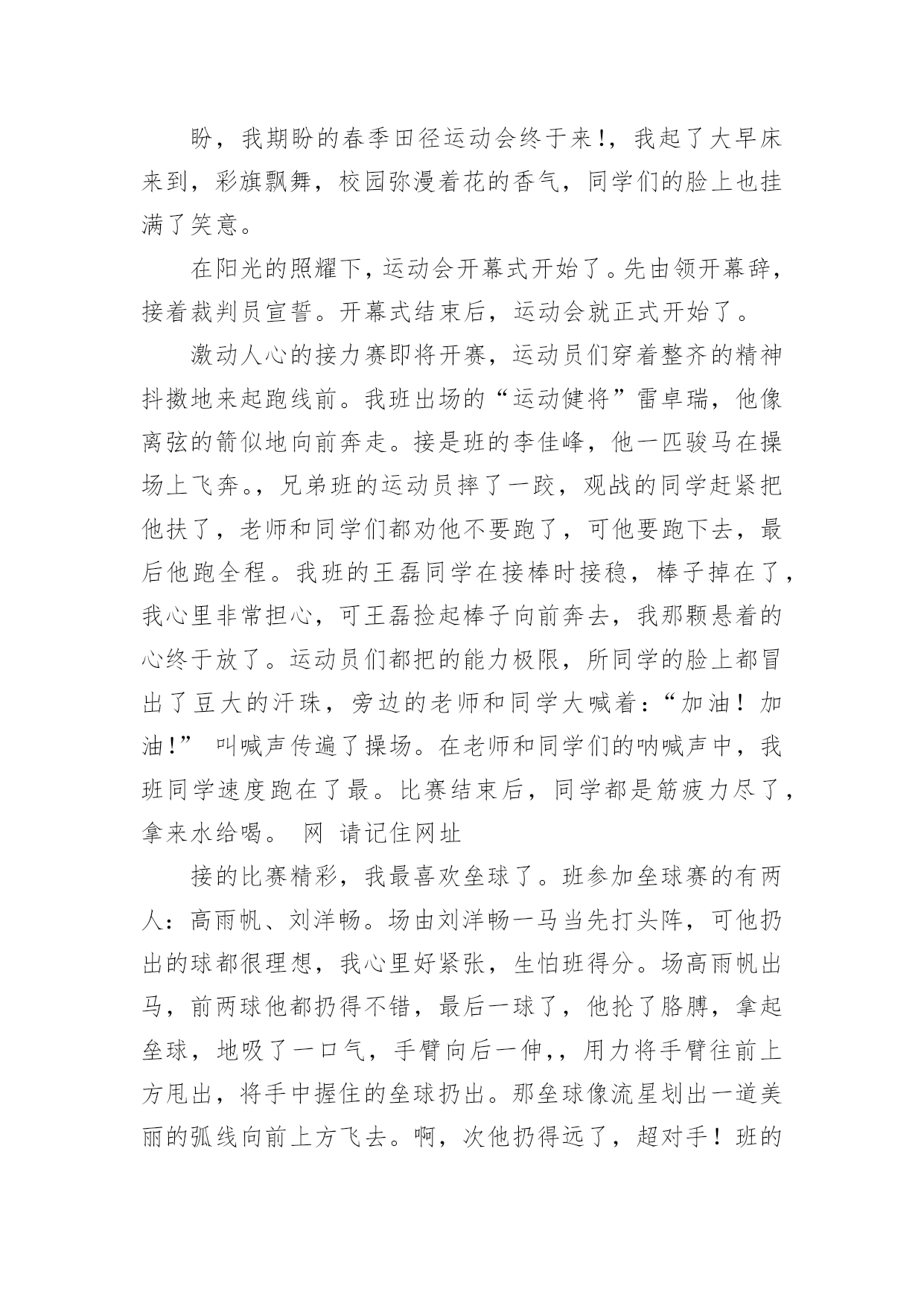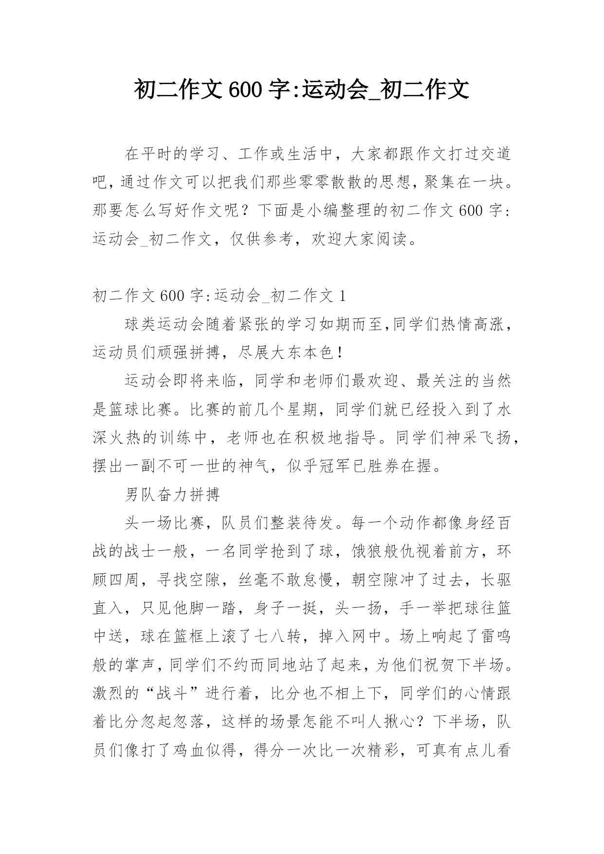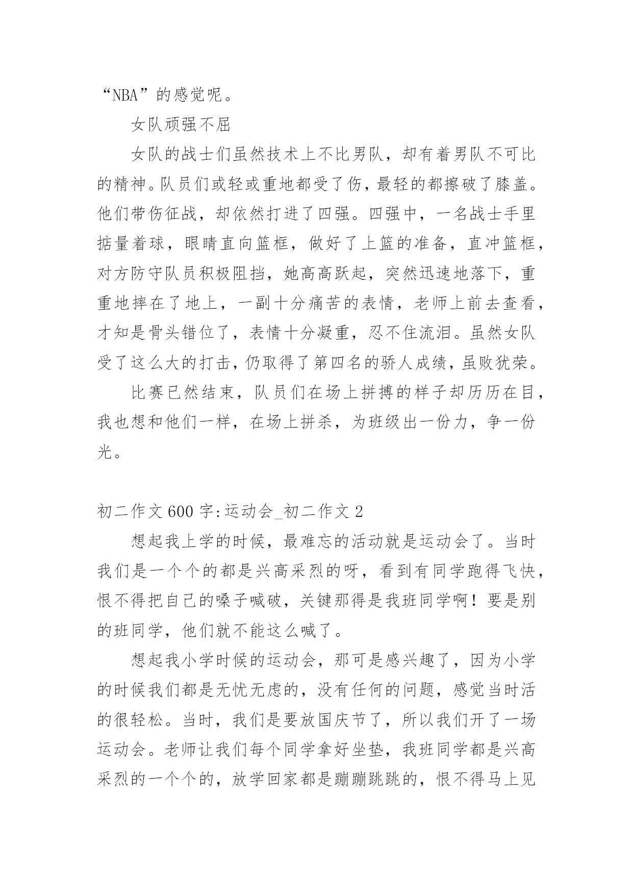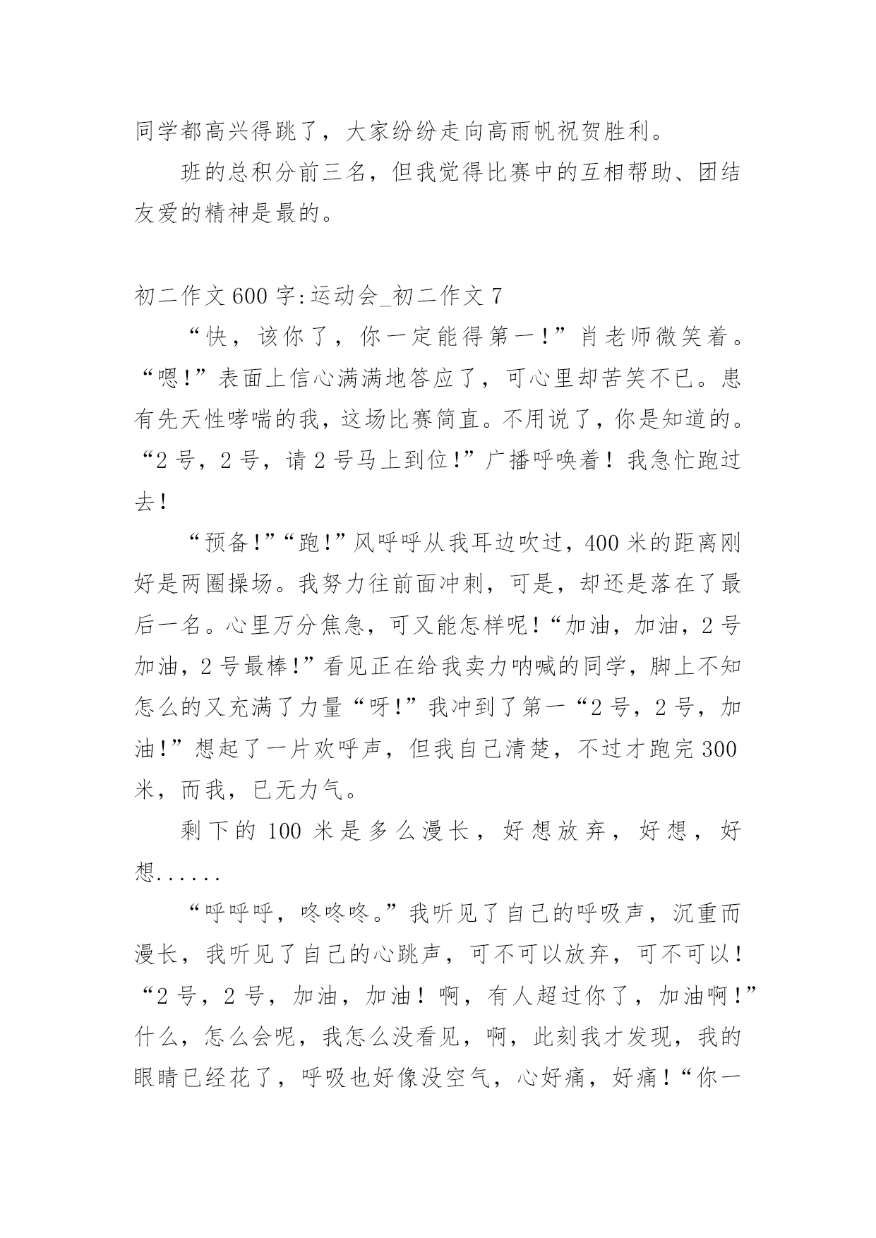 初二作文600字:运动会_初二作文在平时的学习、工作或生活中,大家都跟作文打过交道吧,通过作文可以把我们那些零零散散的思想,聚集在一块。那要怎么写好作文呢?下面是小编整理的初二作文600字:运动会_初二作文,仅供参考,欢迎大家阅读。初二作文600字:运动会_初二作文1球类运动会随着紧张的学习如期而至,同学们热情高涨,运动员们顽强拼搏,尽展大东本色!运动会即将来临,同学和老师们最欢迎、最关注的当然是篮球比赛。比赛的前几个星期,同学们就已经投入到了水深火热的训练中,老师也在积极地指导。同学们神采飞扬,摆出一副不可一世的神气,似乎冠军已胜券在握。男队奋力拼搏头一场比赛,队员们整装待发。每一个动作都像身经百战的战士一般,一名同学抢到了球,饿狼般仇视着前方,环顾四周,寻找空隙,丝毫不敢怠慢,朝空隙冲了过去,长驱直入,只见他脚一踏,身子一挺,头一扬,手一举把球往篮中送,球在篮框上滚了七八转,掉入网中。场上响起了雷鸣般的掌声,同学们不约而同地站了起来,为他们祝贺下半场。激烈的“战斗”进行着,比分也不相上下,同学们的心情跟着比分忽起忽落,这样的场景怎能不叫人揪心?下半场,队员们像打了鸡血似得,得分一次比一次精彩,可真有点儿看“NBA”的感觉呢。女队顽强不屈女队的战士们虽然技术上不比男队,却有着男队不可比的精神。队员们或轻或重地都受了伤,最轻的都擦破了膝盖。他们带伤征战,却依然打进了四强。四强中,一名战士手里掂量着球,眼睛直向篮框,做好了上篮的准备,直冲篮框,对方防守队员积极阻挡,她高高跃起,突然迅速地落下,重重地摔在了地上,一副十分痛苦的表情,老师上前去查看,才知是骨头错位了,表情十分凝重,忍不住流泪。虽然女队受了这么大的打击,仍取得了第四名的骄人成绩,虽败犹荣。比赛已然结束,队员们在场上拼搏的样子却历历在目,我也想和他们一样,在场上拼杀,为班级出一份力,争一份光。初二作文600字:运动会_初二作文2想起我上学的时候,最难忘的活动就是运动会了。当时我们是一个个的都是兴高采烈的呀,看到有同学跑得飞快,恨不得把自己的嗓子喊破,关键那得是我班同学啊!要是别的班同学,他们就不能这么喊了。想起我小学时候的运动会,那可是感兴趣了,因为小学的时候我们都是无忧无虑的,没有任何的问题,感觉当时活的很轻松。当时,我们是要放国庆节了,所以我们开了一场运动会。老师让我们每个同学拿好坐垫,我班同学都是兴高采烈的一个个的,放学回家都是蹦蹦跳跳的,恨不得马上见到家长,把这个高兴的事情和家长说。我也不例外,回到家中,我就立刻告诉家长,明天要开运动会的事情,家长也很高兴,他们给了我30块钱,那我明天开运动会,去买点好吃的去。我笑嘻嘻的接过了钱,妈妈说我就是一个实打实的小财迷。我说才不是呢,我只是想拿这些钱买点好吃的罢了。妈妈意味深长的看着我,说,哦,原来不是财迷呀,我嗯嗯,点了点头。妈妈又接着说,是个小吃货。我装作生气的转过了头,对妈妈说,哼,不理你了。到了第二天,运动会开始了,我们每个人都是兴高采烈的,拿着自己的小坐垫,就坐到了操场上,完全没有管地下脏不脏,只是小机会的让运动会开始,这样我们好看到精彩绝伦的表演。校长宣布,运动会开始了,第一个先表演的是,男子100米赛跑。想知道,100米拼的可不是体力活,而是速度啊!所以我们每个人都秉足了力气,给那些参赛者喊加油。看看看,那是我班的,我班的,我班的占据第一,好,他冲过了终点线,我们五班第一,五班第一。我们瞬间都站了起来,拥抱了对方,老师说我们当时就像新中国,回到了祖国一样。然后接下来的都是运动会的项目了,最后一项是拔河,我们每个人基本上都上去了,这次是一班对一班的,所以我们是基本上50多个同学都上去了,对方也是50多个同学,最终,因为我班有好几个重力级的,所以偶们班荣幸地赢了。运动会完整的落幕了,我们也从中感受到了许多的快乐,国庆节的七天假期,也就在这个时候开始了。我们的七天解放的时间也就从这个时候开始了。精彩绝伦的运动会啊!什么时候我还能再目睹一下你的风采?我现在上了初中,开运动会的时间越来越少了,因为要好好学习了,学校对我们管的很严很严,所以我们开运动会基本上都不是一个学期开一次了。运动会啊!我好想回到小学的时候,再重新目睹一下你的风采。初二作文600字:运动会_初二作文3金秋十月,丹桂飘香,我们又迎来了一年一度的校运动会,操场上彩旗飘扬,天空万里无云。随着宣布运动会正式开始,各队伍依次入场。此时进行曲骤然响起,国旗队、鼓号队、会徽队、花环队、彩旗队、运动员代表队……他们个个衣着鲜艳,面带笑容,昂首阔步,展示出少年儿童特有的朝气与活力。当大会宣布运动比赛正式开始,整个赛场顿时沸腾起来。第一项比赛就是60米预赛,我的心里又兴奋,又紧张,我将代表班级参加这次比赛,在第四跑道上我认真地做着准备活动。此时,我的心里就像吊着十