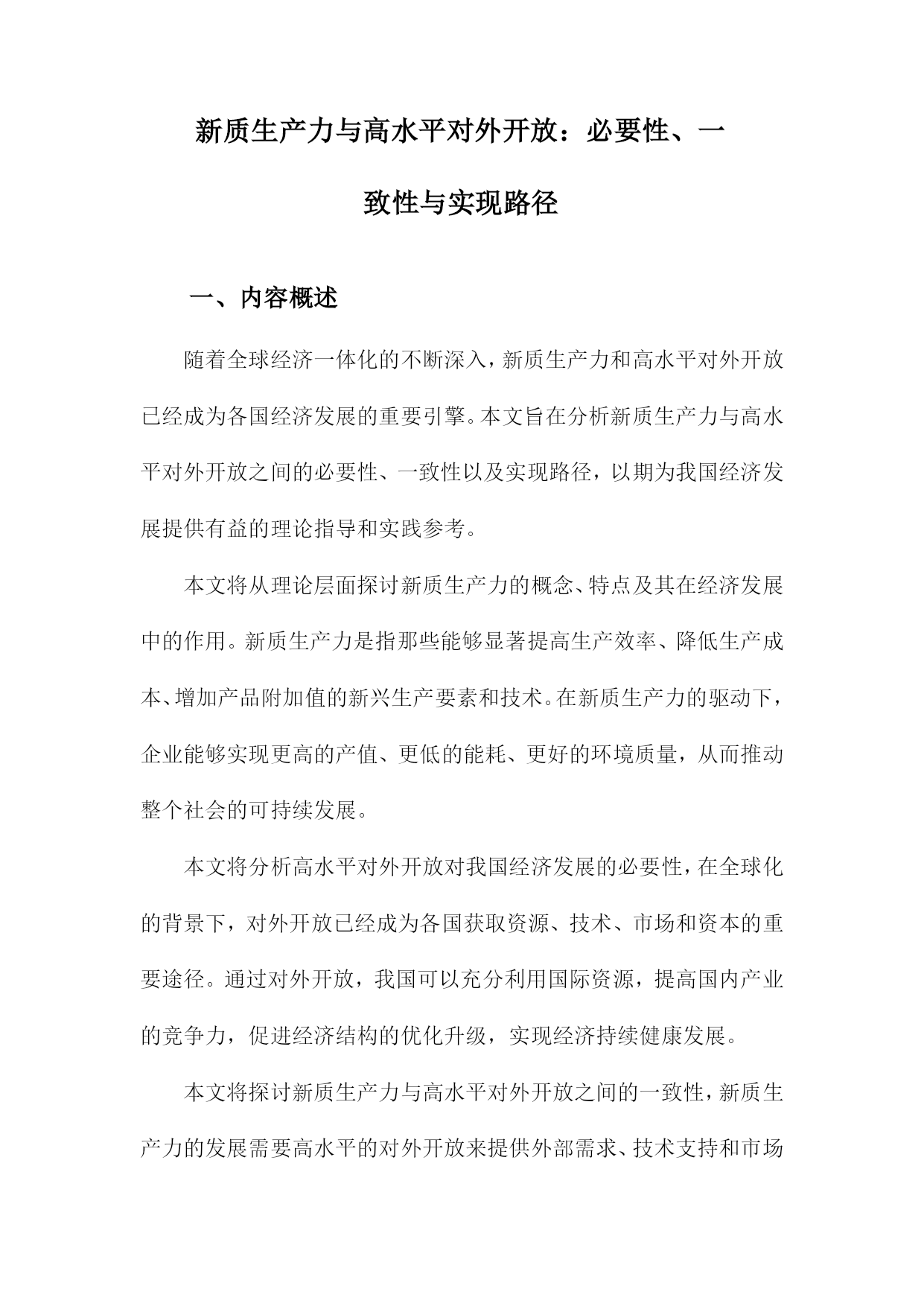 新质生产力与高水平对外开放:必要性、一致性与实现路径.docx