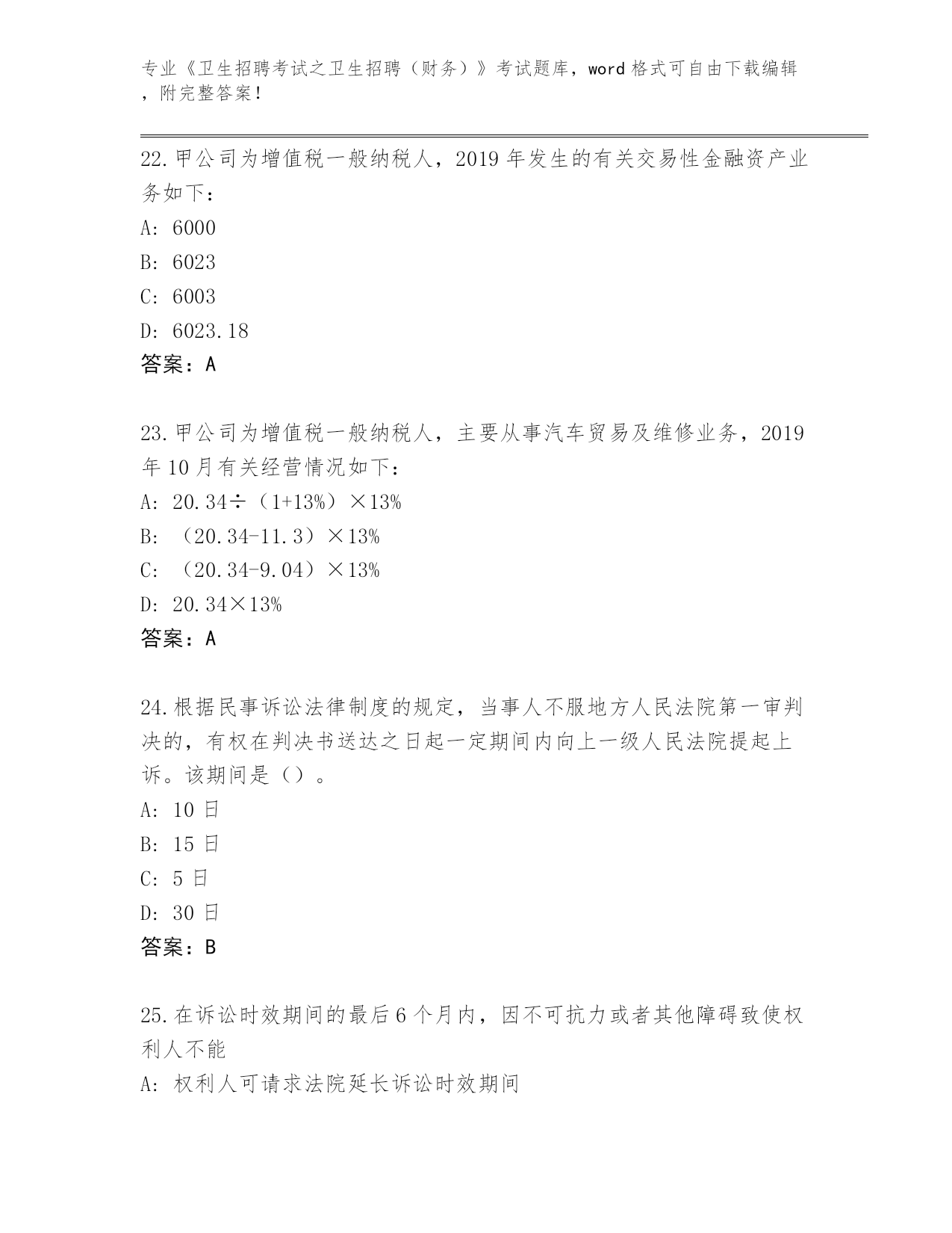 2024江苏省姑苏区《卫生招聘考试之卫生招聘(财务)》考试必刷200题题库及答案(全国通用)