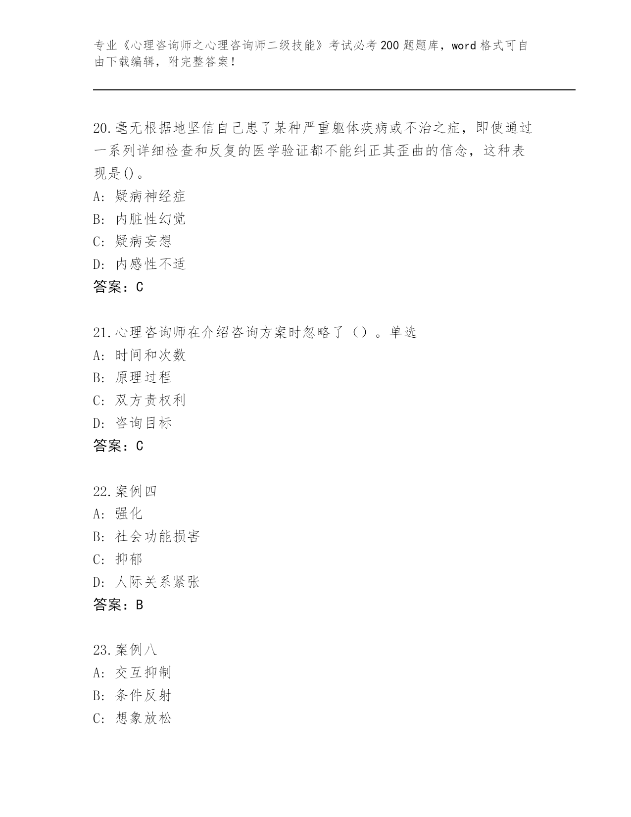 河南省淇县《心理咨询师之心理咨询师二级技能》考试必考200题(基础题)