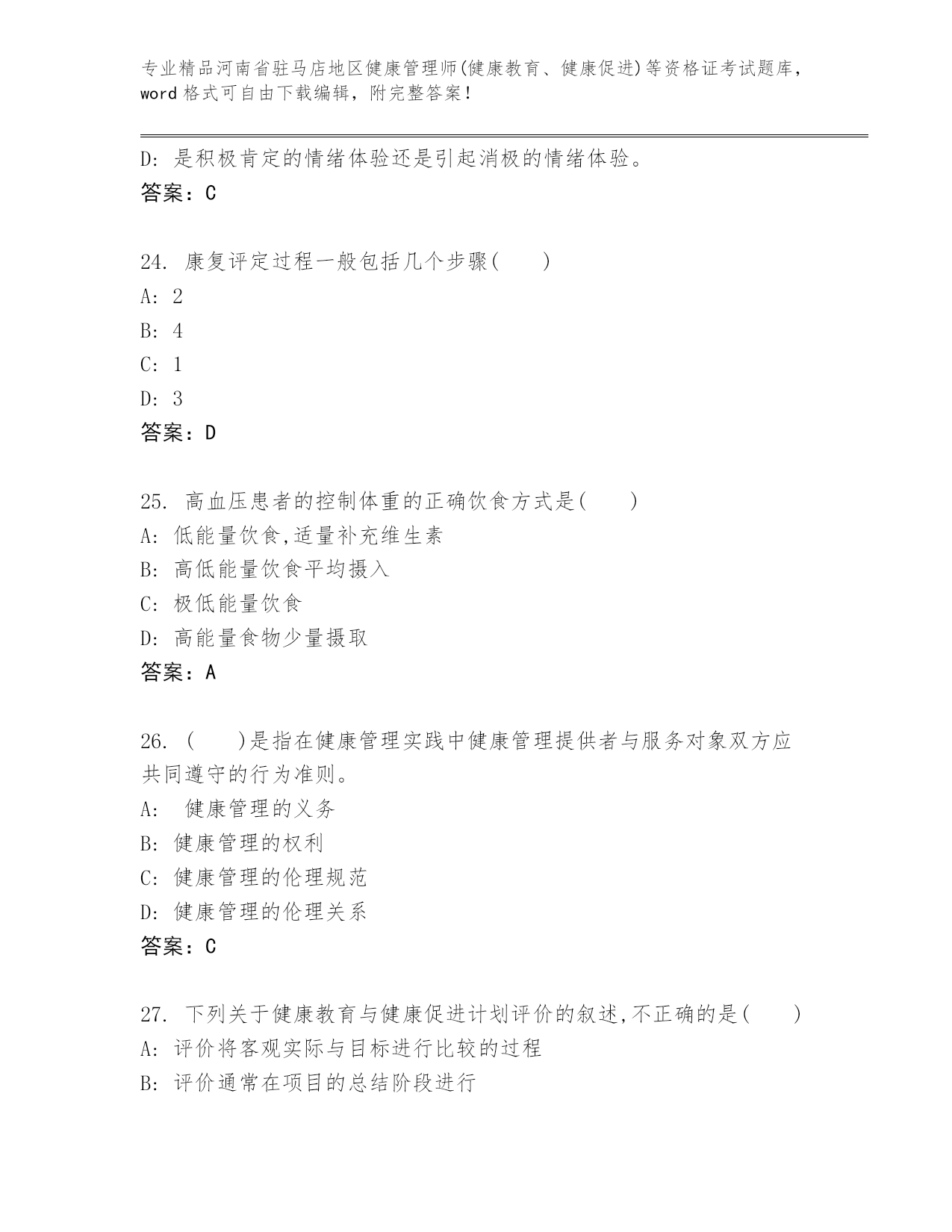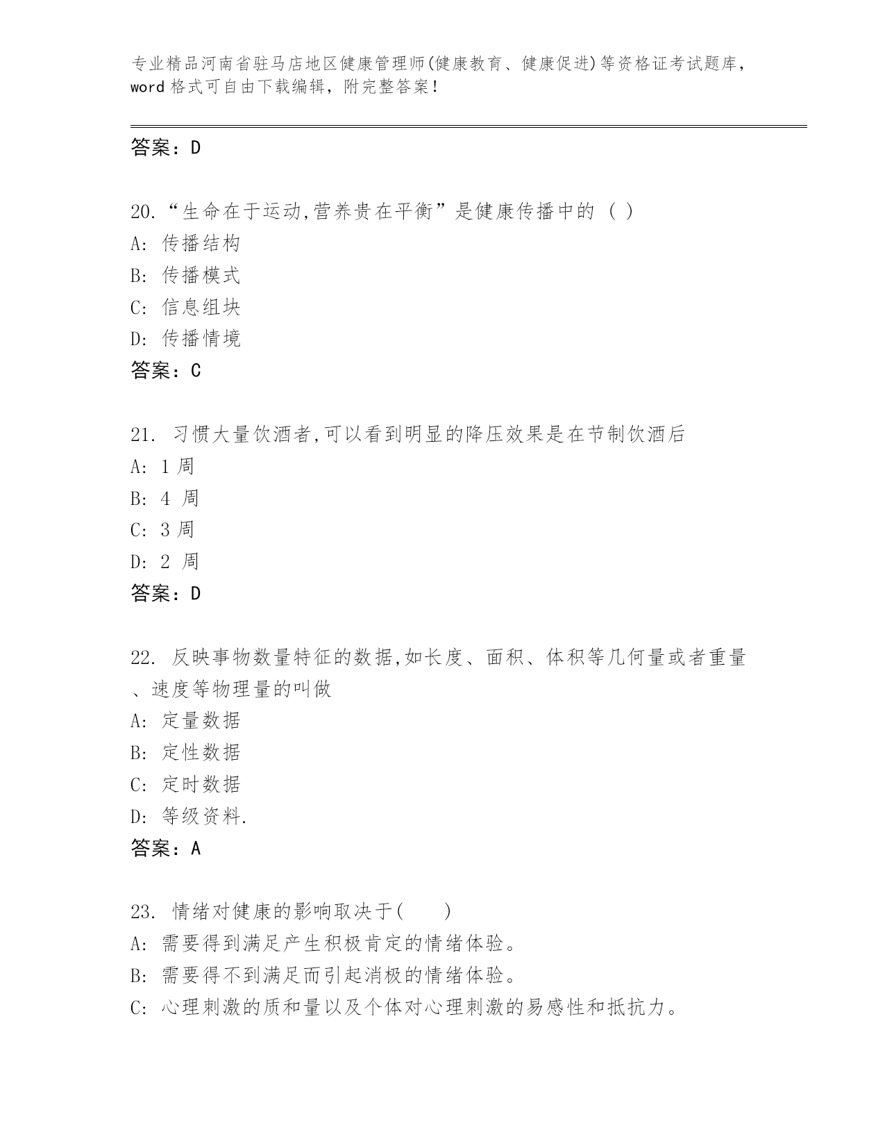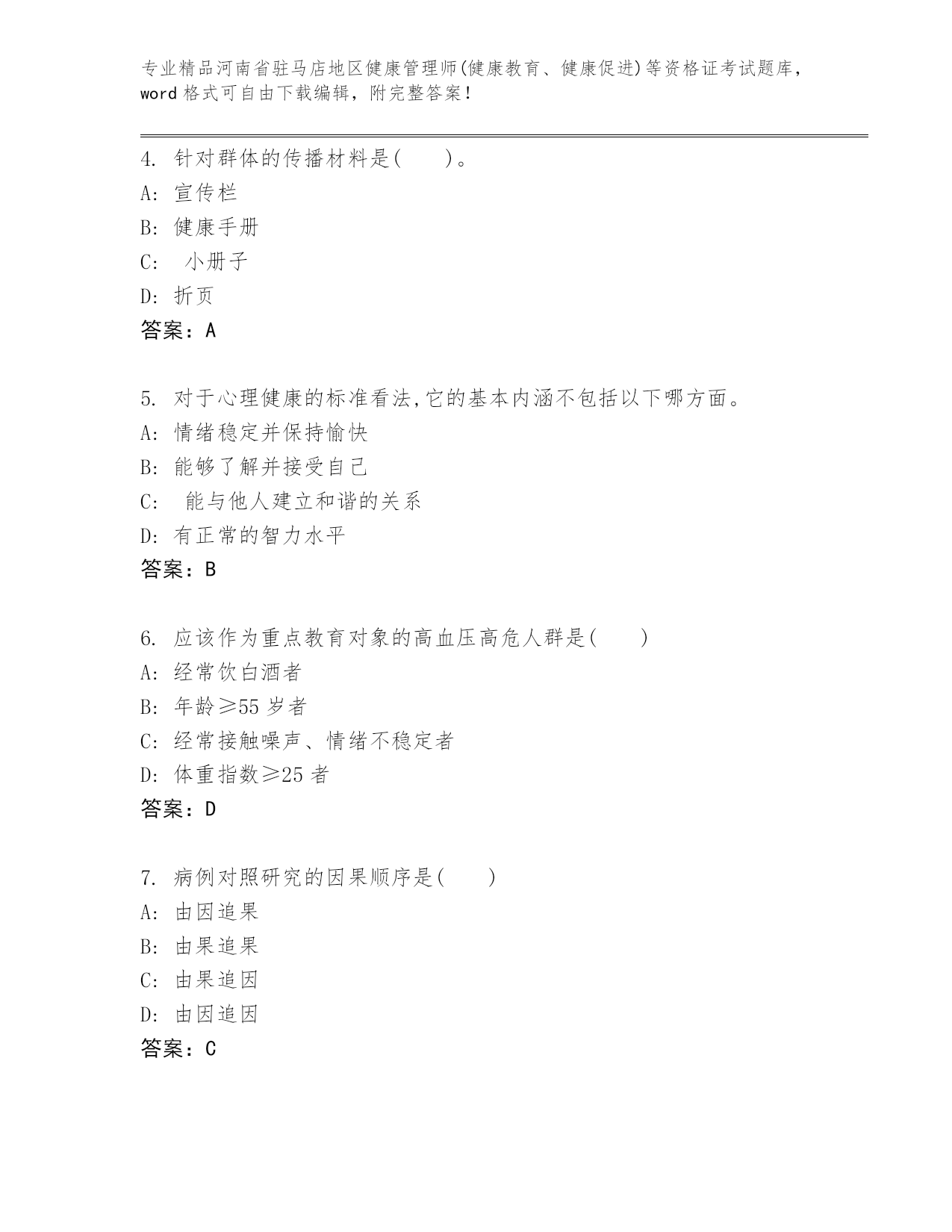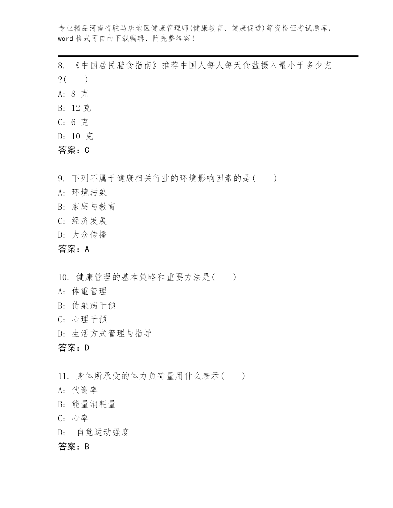 优选河南省驻马店地区健康管理师(健康教育、健康促进)等资格证考试大全【培优B卷】
