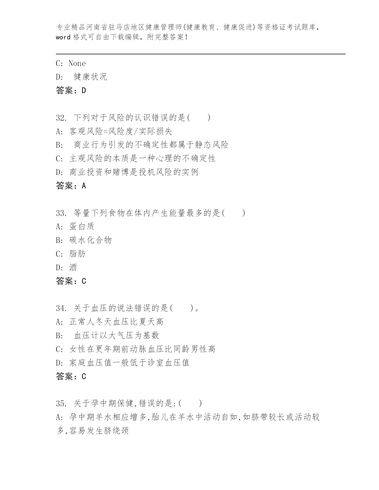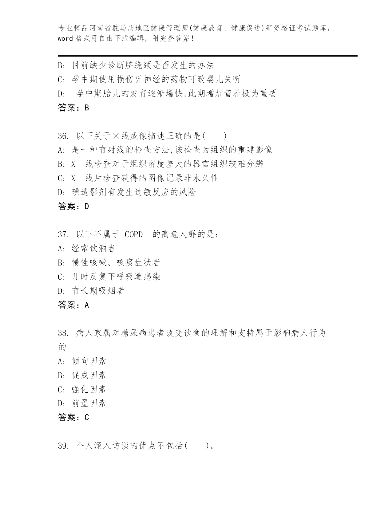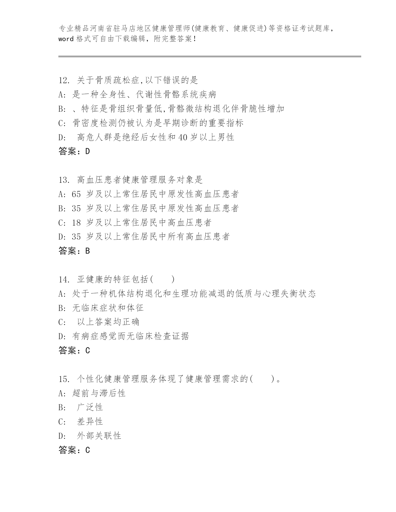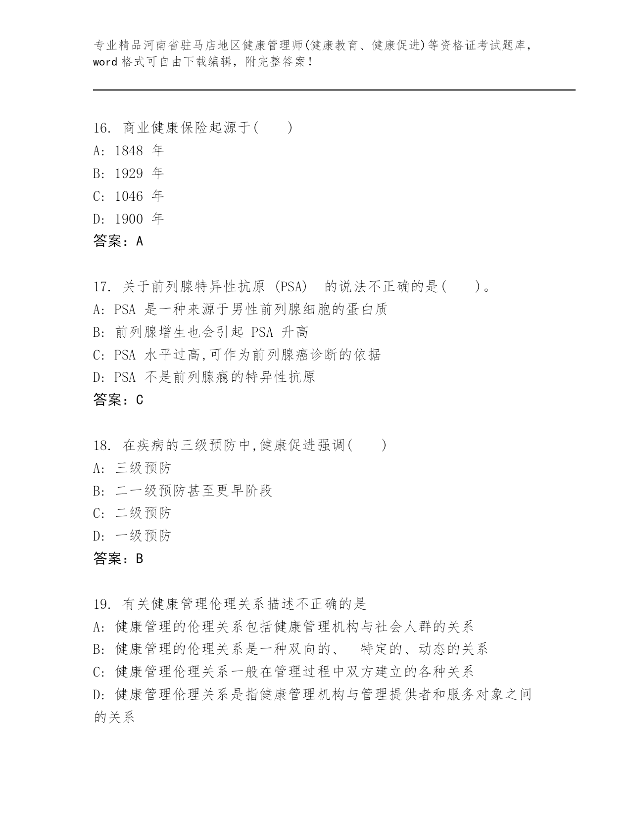优选河南省驻马店地区健康管理师(健康教育、健康促进)等资格证考试大全【培优B卷】