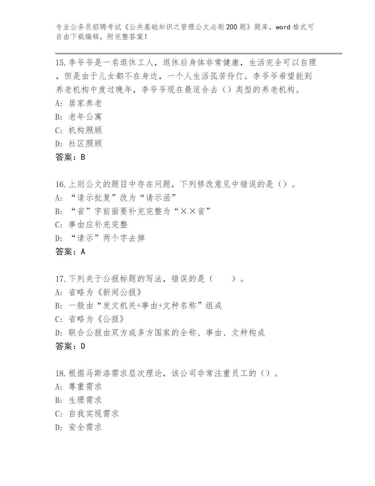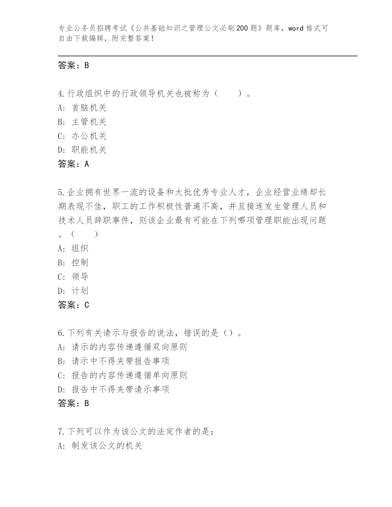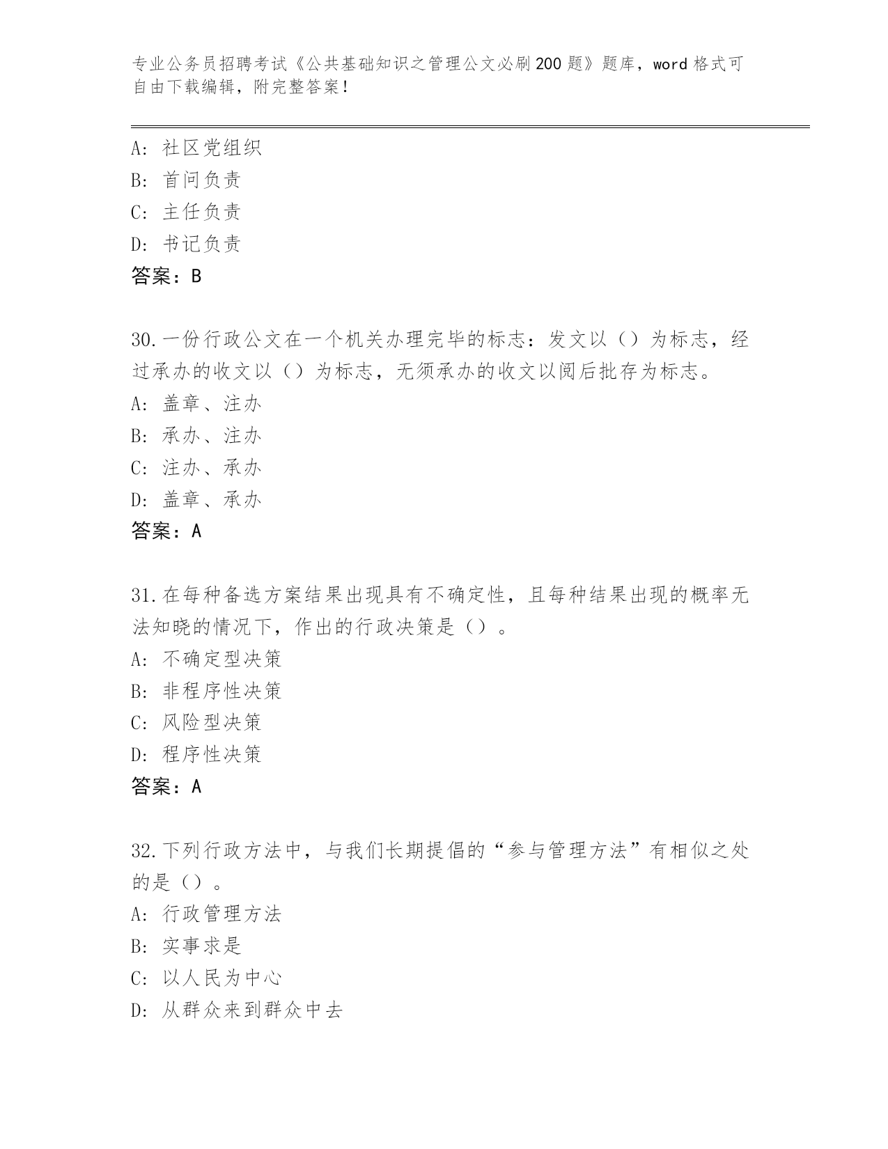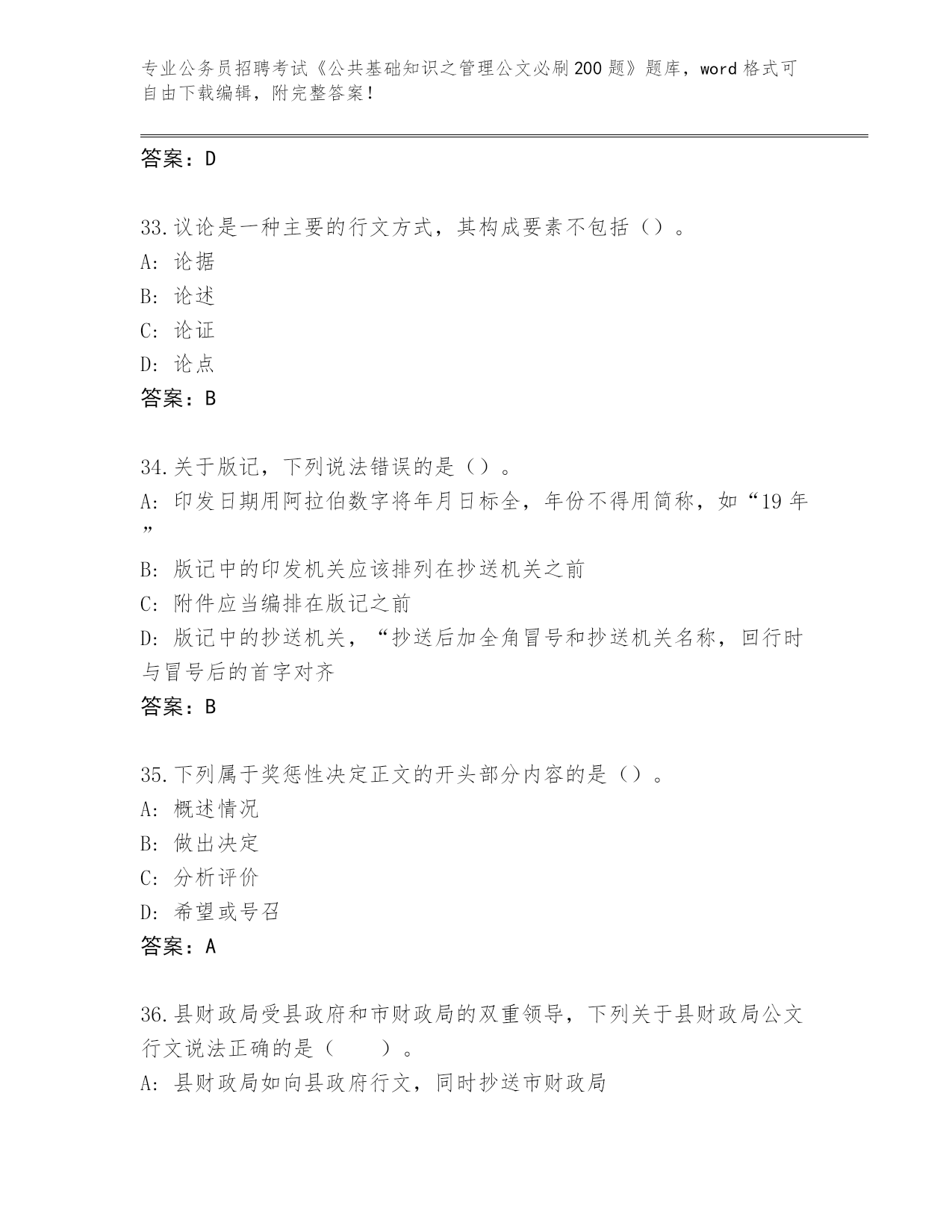云南省牟定县2024年公务员招聘考试《公共基础知识之管理公文必刷200题》大全【典优】.docx