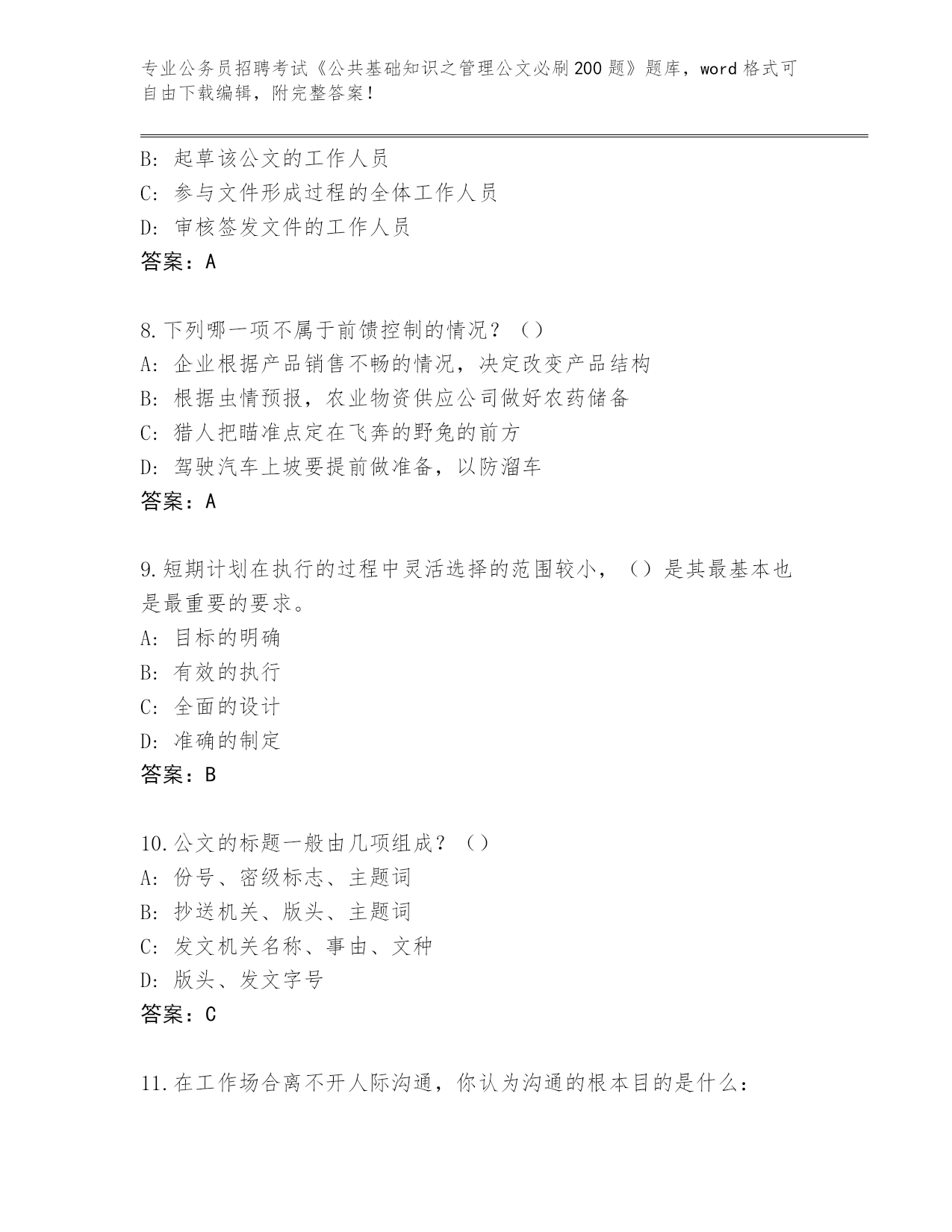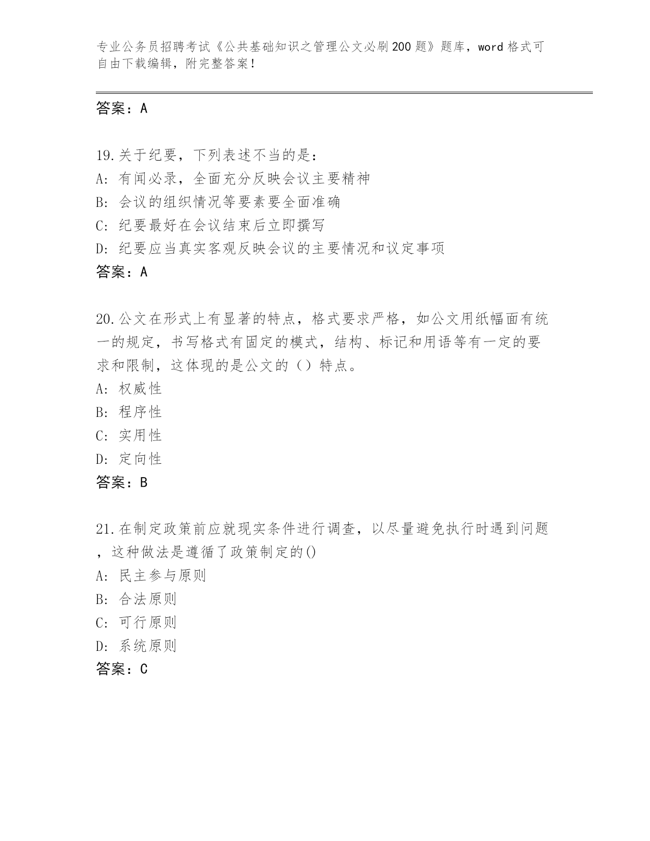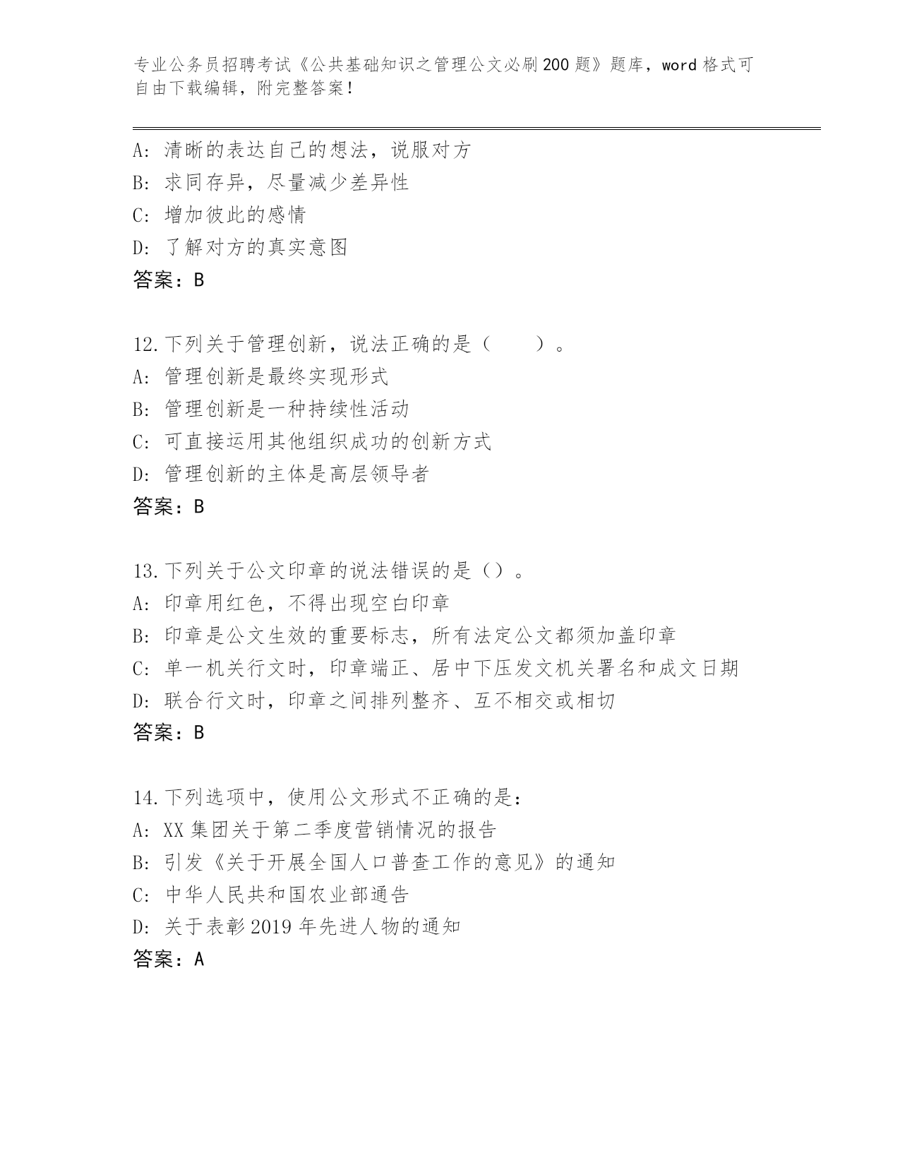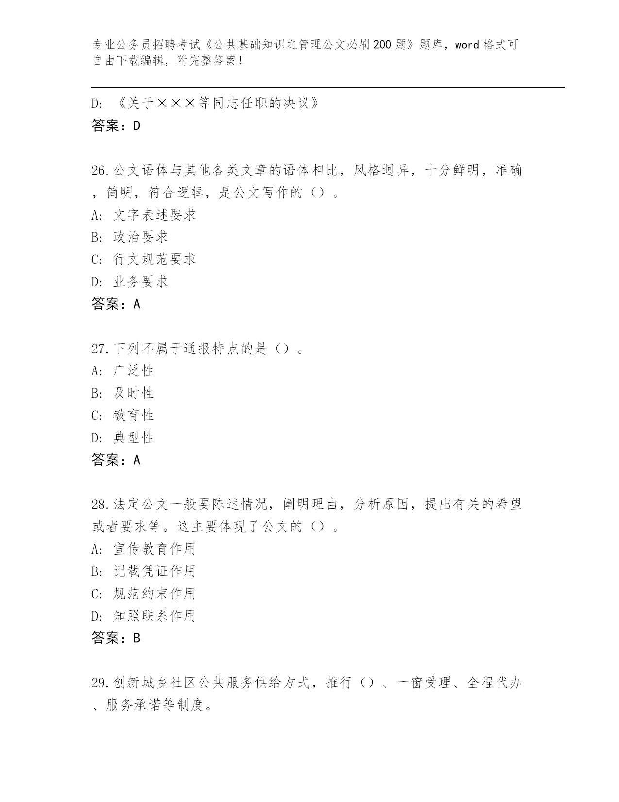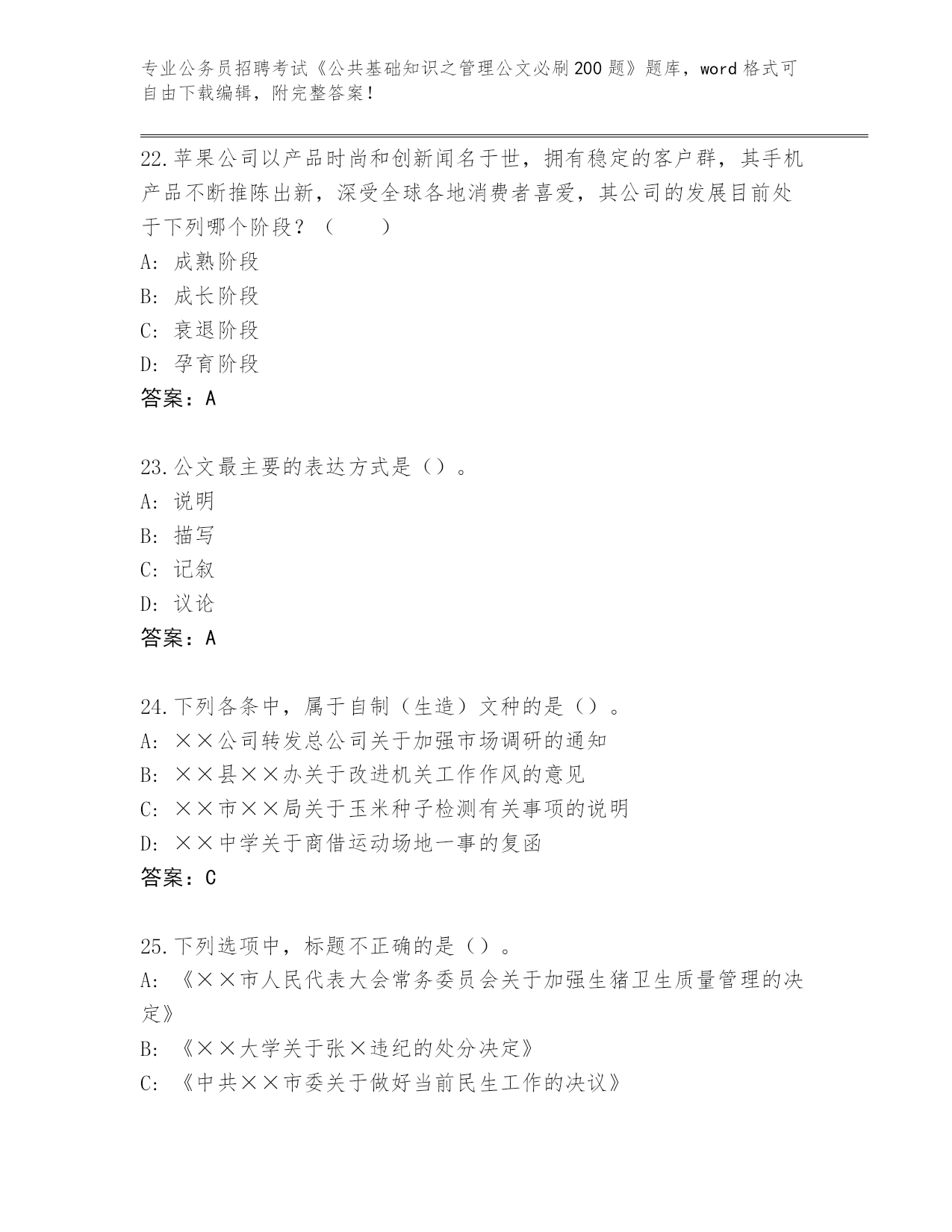 云南省牟定县2024年公务员招聘考试《公共基础知识之管理公文必刷200题》大全【典优】