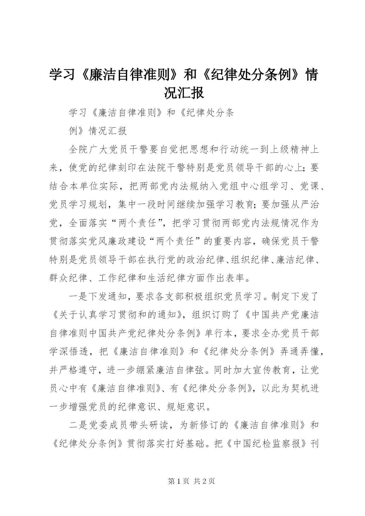 学习《廉洁自律准则》和《纪律处分条例》情况汇报_1.docx