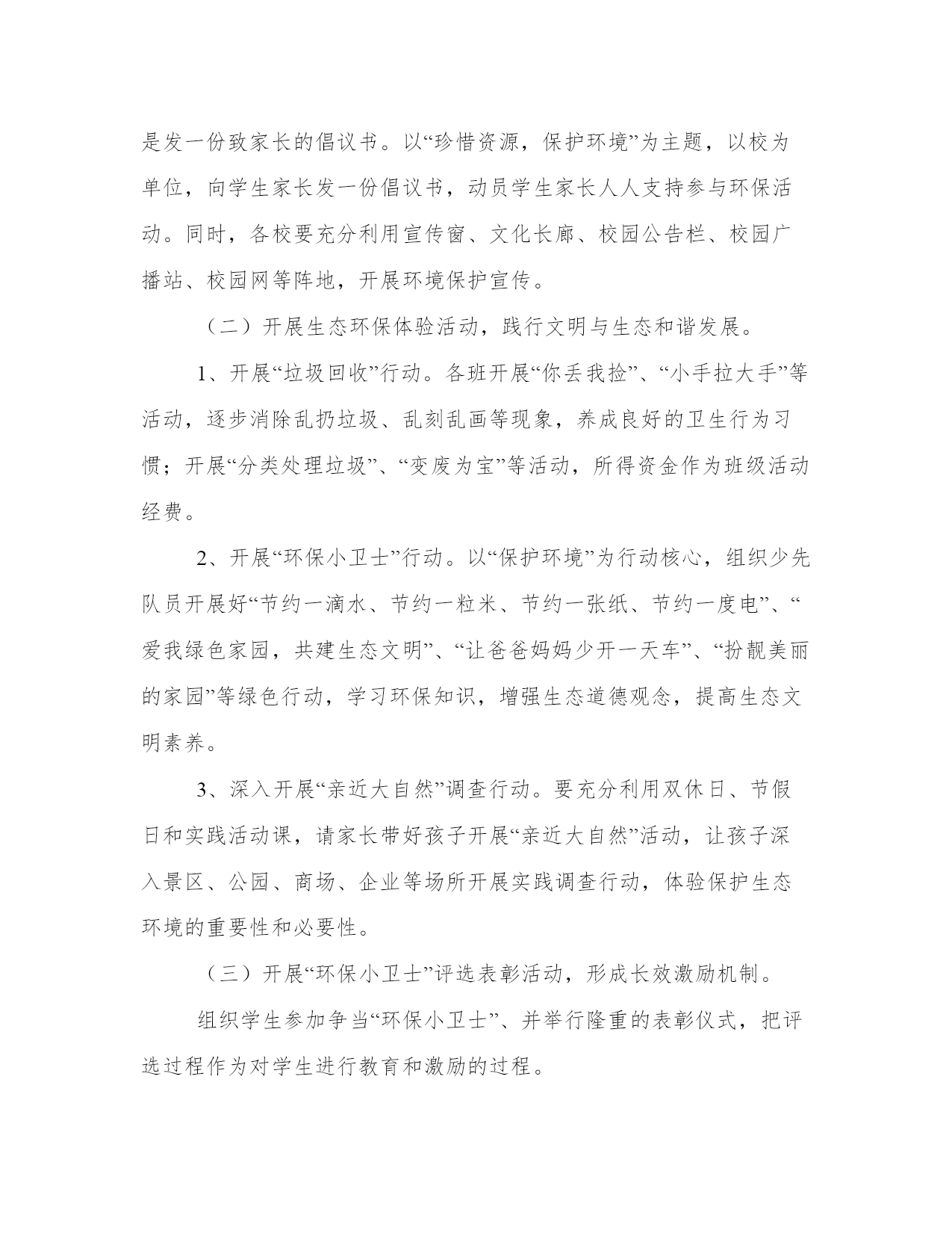小学环保教育活动范文(19篇)持久是指能够长时间保持高效的工作状态或坚持不懈地追求目标。总结应该具备逻辑性和条理性,使人一目了然。下面是一些总结的写作技巧和要点,希望能对大家有所启发。小学环保教育活动篇一一、成立“环保特色队”的目的:大绿色环保是21世纪最时尚、最潮流的一个世界话题,是把环保理念提到了一个高度。环境教育,人人有责,环保已成为一个全球性的热点。搞绿色环保教育,既是针对现实的,又是面向未来的。绿色教育使我们的课程建设有了新的特色,绿色教育也使我校的德育工作更显得具体化、生动化,富有时代和现实的气息,使学校的德育工作内涵更加充实,外延得以拓展。我校以创建“xx绿色学校”为契机,以德育处、少先队为组织机构开展各类绿色环保活动。最终使学生进一步树立保护环境、服务社会的道德感和责任感,形成正确的环境价值观、和谐的人际交往观,良好的学习态度和习惯。二、指导(领导)机构:xx区环保分局、xx区少工委。三、“环保特色队”组织架构:环保特色队。环保小卫队。环保体验实践队。垃圾处理小分队。栽花种树小分队。水土保护小分队。保护益、虫鸟小分队。各年级小卫队。少先队大队小卫队。四、各特色分队主要宗旨:1、“环保小卫队”:志愿少先队员组成,负责对学生们的环保行为进行监察和督促和评比。2、“垃圾处理小分队”:由志愿亲子义工组成,经深入学校、到街道和社区清理垃圾,开展宣传,共同开展学校周边环境治理,为学校营造良好的周边环境。3、“栽花种树小分队”:由志愿亲子义工组成,建设好亲子同耕园的同时,经常协助老师为校园里的花草修枝剪叶,组织同学为校园里的花草施肥拔草,指导同学进行一些简单的盆花栽种技术。4、“水土保护小分队”:由志愿少先队员组成,主要是经常性组织维护学校饮水、土壤的清洁。5、“保护益鸟、虫小分队”:由志愿少先队员组成,开展爱鸟,保护益虫的宣传及实践活动。五、组建过程安排:1、第十一周充分利用在国旗下讲话、广播电台开展宣传。2、发放有关倡议书,学生、家长上报名给班主任,由班主任上交级组长,由级组长统计后上交学校德育处和少先队。3、第十二周,举行成立仪式,全体师生及志愿亲子义工家长参与,指导领导机构代表出席。六、具体工作措施:1、各分队要在xx区环保分局、xx区少工委的指导下,在学校德育处、少先队的引领下去务实开展工作。2、各分队每学期要制定切实可行的详细计划,并按计划去开展工作。每次活动要做到有宣传、有计划、有总结。小学环保教育活动篇二一、指导思想:依据xx市中小学德育工作意见和我校本学期的工作计划,围绕“珍惜资源,保护环境”,开展环境教育,目的是提高我校学生的现代文明素养和环境意识,普及环境科学知识和环境法律知识,大力推进素质教育和社会主义精神文明建设。二、活动主题:珍惜资源,保护环境。三、活动时间:20xx年6月1日至6月20日。四、总体要求:提高学生环境意识;培养学生良好的环保习惯;规范学生的环保行为。如校内外不吸烟、不乱丢、不乱倒、不乱吐、不乱写乱画,不高声喧哗,不损坏树木花草,自觉节约资源等。五、活动内容:(一)开展生态环保宣传活动,营造人人参与的良好氛围。环境保护是造福全人类的伟大事业,与每个人息息相关,需要每个人积极参与。青少年是祖国的未来,青少年的环境意识和环境道德决定着我国环境保护的前途,决定着中华民族的兴衰。我校环保主题教育月活动,就是促进学生们从自己日常学习、生活中具体的小事入手,身体力行地参加环保行动,培养良好环境意识、环境情感、环境道德和环境习惯。1、举行隆重的启动仪式。利用国旗下讲话举行以“珍惜资源,保护环境”为主题的国旗下讲话。(6月3日完成)。2、发好倡议。由德育处向全校师生发出倡议,动员和鼓励师生积极参与以“珍惜资源,保护环境”为主题的生态环保宣传教育活动。3、开展“四个一”宣传教育活动。一是开好一堂主题班队会。以“绿色、生态、文明”为主题,以班级为单位,组织学生上好一堂生态课,传授生态环保知识,对学生进行一次直接的生态环保教育和科普宣传。二是开展一次黑板报比赛。以“弘扬生态文明,共建绿色家园”为主题,以学校为单位,组织一次黑板报比赛。三是在一至五年级学生中开展一次“我的心愿”环保宣传语评比。优秀作品布置在校园里。四是发一份致家长的倡议书。以“珍惜资源,保护环境”为主题,以校为单位,向学生家长发一份倡议书,动员学生家长人人支持参与环保活动。同时,各校要充分利用宣传窗、文化长廊、校园公告栏、校园广播站、校园网等阵地,开展环境保护宣传。(二)开展生态环保体验活动,践行文明与生态和谐发展。1、开展“垃圾回收”行动。各班开展“你丢我捡”、“小手拉大手”等活动,逐步消除乱扔垃圾、乱刻乱画等现象,养成良好的卫生行为习惯;开展“