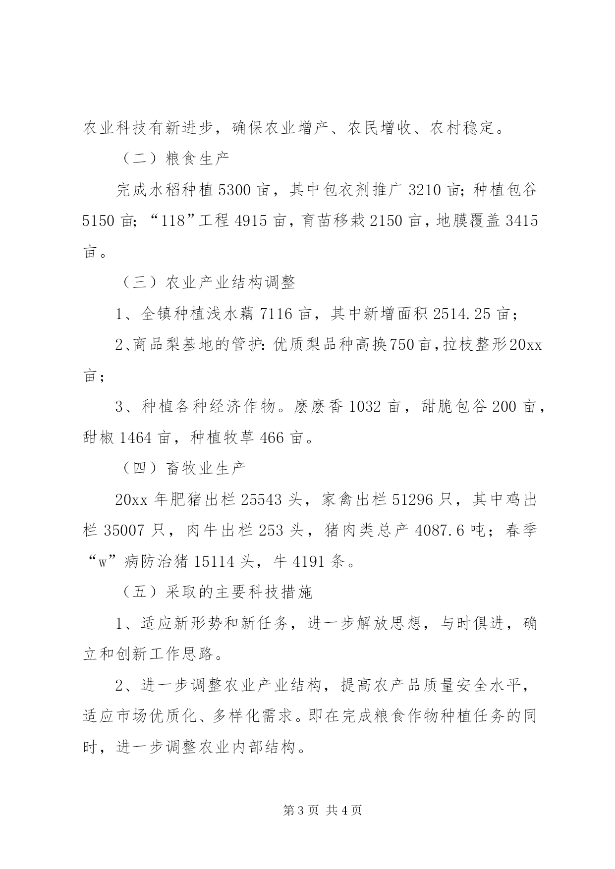 第PAGE\*Arabic\*MERGEFORMAT4页共NUMPAGES\*MERGEFORMAT4页乡镇农业技术综合服务站工作总结文章标题:乡镇农业技术综合服务站20xx年工作总结乡镇农业技术综合服务站20xx年工作总结一、冬季农业生产工作冬季农业生产工作是农业生产上的延伸和拓展,是农业发展进入新阶段的必然产物,是传统农业以粮食为主向粮、经、饲及畜牧业发展的转变,是提高农业整体效益,增加农民收入,最终实现向现代农业转变的需要。(一)指导思想以邓小平理论和江泽民“三个代表”重要思想为指导,认真贯彻落实各级农村工作会议精神,解放思想,树立大农业的观念,坚持粮经并重,突出农民增收,以市场为导向、效益为中心、增收为目标、科技为动力、资源为依托、突出特色、优化结构、区域布局,大力调整农业产业结构,发展农业产业化经营,全面提高冬季农业生产质量和效益,实现“稳粮调结构、提质增效益、增收保稳定”的目标。(二)完成的工作全镇种植小麦20xx亩,大麦2500亩,蚕豆4000亩,油菜1200亩,早秋豌豆200亩,萝卜4700亩。洋蓟预计1619.2亩,目前已种500亩,确保栽种1500亩。(三)采取的主要科技措施1、解放思想,提高对冬季农业开发重要性的认识;2、面向市场,因地制宜,调整和优化作物结构;3、抓好作物区域布局,解决好大小春作物茬口矛盾;4、加大科技推广应用力度,全面提高农业生产科技含量;5、切实加强对畜牧业生产的领导,促进畜牧业健康稳定发展;6、优化浅水藕品种结构,提高蔬菜生产效益;7、加强果园冬季管护,做好优质梨的高换工作;8、加强对冬季农业开发的社会化服务工作。二、大春生产工作(一)指导思想认真贯彻党的十六大和各级农村工作会议精神,与时俱进,开拓创新,适应全面建设小康社会和加入世贸组织新形势的需要,继续把农业结构战略化调整引向深入,千方百计增加农民收入。按照“围绕增收调结构、突出特色闯市场、依靠科技增效益”的思路,着力调整种养植业结构,优化农产品区域布局,建设特色农产品基地,提高种植业经济效益。大力发展畜牧业,推进畜牧业的集约化、产业化经营,加快畜牧业现代化进程。牢固树立扶持产业化就是扶持农业,扶持龙头企业就是扶持农业的思想,通过产业化经营,给农民带来更大更多的实惠。力求农村改革有新突破,农业和农村经济调整有新进展,农业产业化经营有新提高,农业科技有新进步,确保农业增产、农民增收、农村稳定。(二)粮食生产完成水稻种植5300亩,其中包衣剂推广3210亩;种植包谷5150亩;“118”工程4915亩,育苗移栽2150亩,地膜覆盖3415亩。(三)农业产业结构调整1、全镇种植浅水藕7116亩,其中新增面积2514.25亩;2、商品梨基地的管护:优质梨品种高换750亩,拉枝整形20xx亩;3、种植各种经济作物。麽麽香1032亩,甜脆包谷200亩,甜椒1464亩,种植牧草466亩。(四)畜牧业生产20xx年肥猪出栏25543头,家禽出栏51296只,其中鸡出栏35007只,肉牛出栏253头,猪肉类总产4087.6吨;春季“w”病防治猪15114头,牛4191条。(五)采取的主要科技措施1、适应新形势和新任务,进一步解放思想,与时俱进,确立和创新工作思路。2、进一步调整农业产业结构,提高农产品质量安全水平,适应市场优质化、多样化需求。即在完成粮食作物种植任务的同时,进一步调整农业内部结构。3、乡镇农业技术综合服务站工作总结把畜牧业生产作为农业经济发展的新的增长点,加快全镇畜牧业发展的步伐。4、以优质梨高换为重点,抓好商品梨基地的建设。5、按照无公害生产的要求做好技术指导和服务工作,促进水生蔬菜的发展向规模化、产业化的方向发展。6、进一步调整粮食生产品质结构,提高粮食生产的质量和效益。7、进一步加强技术上的综合服务,确保各项农业工作的顺利开展。《乡镇农业技术综合服务站20xx年工作总结》来源于文秘114网,欢迎阅读乡镇农业技术综合服务站20xx年工作总结。