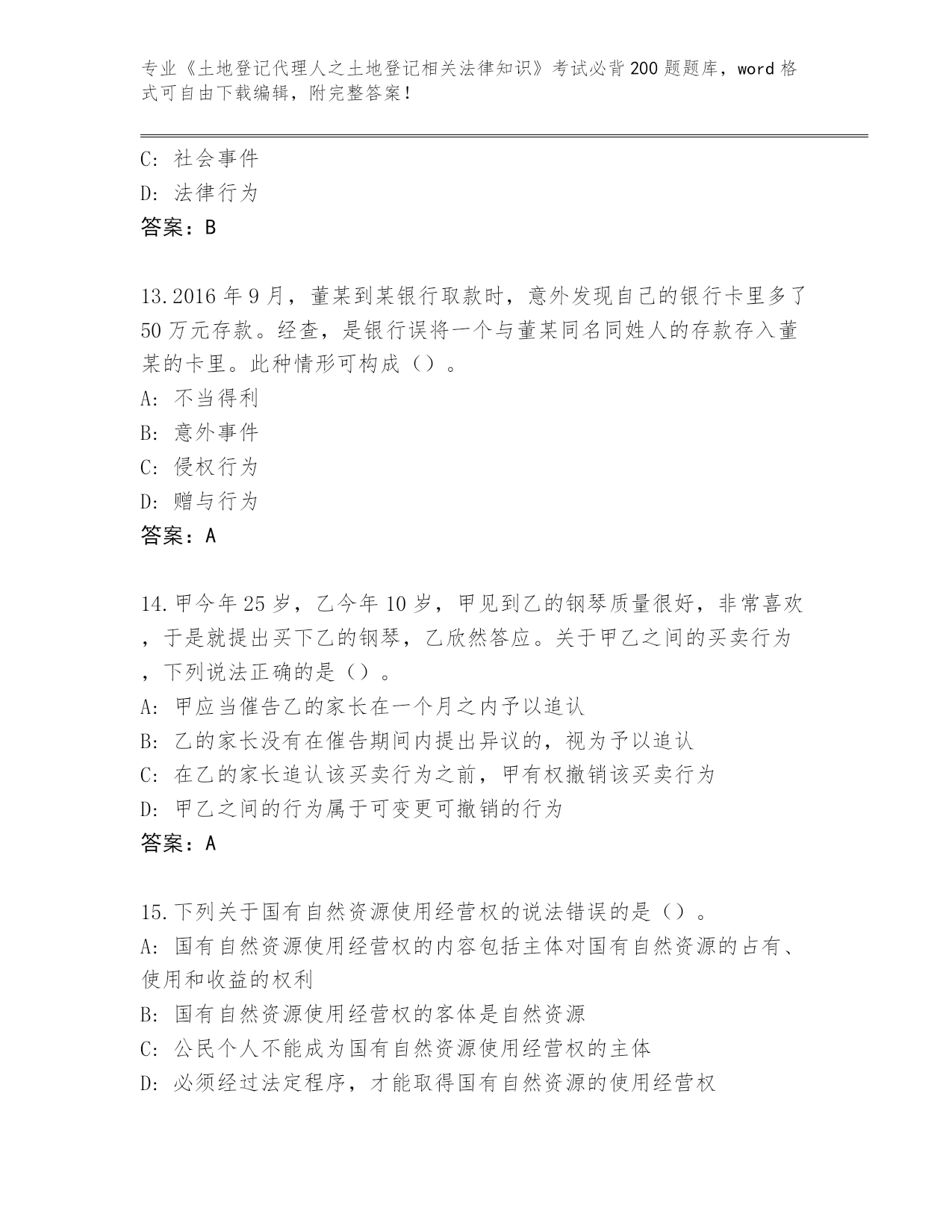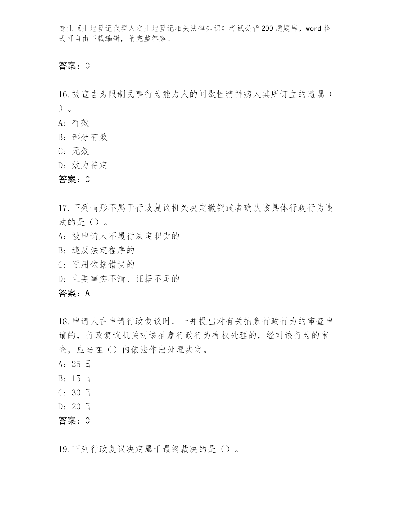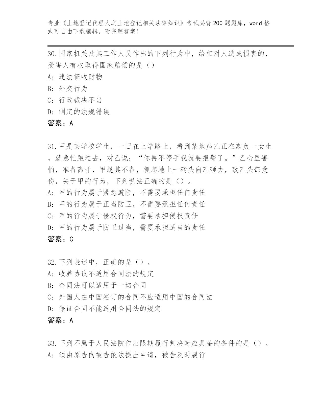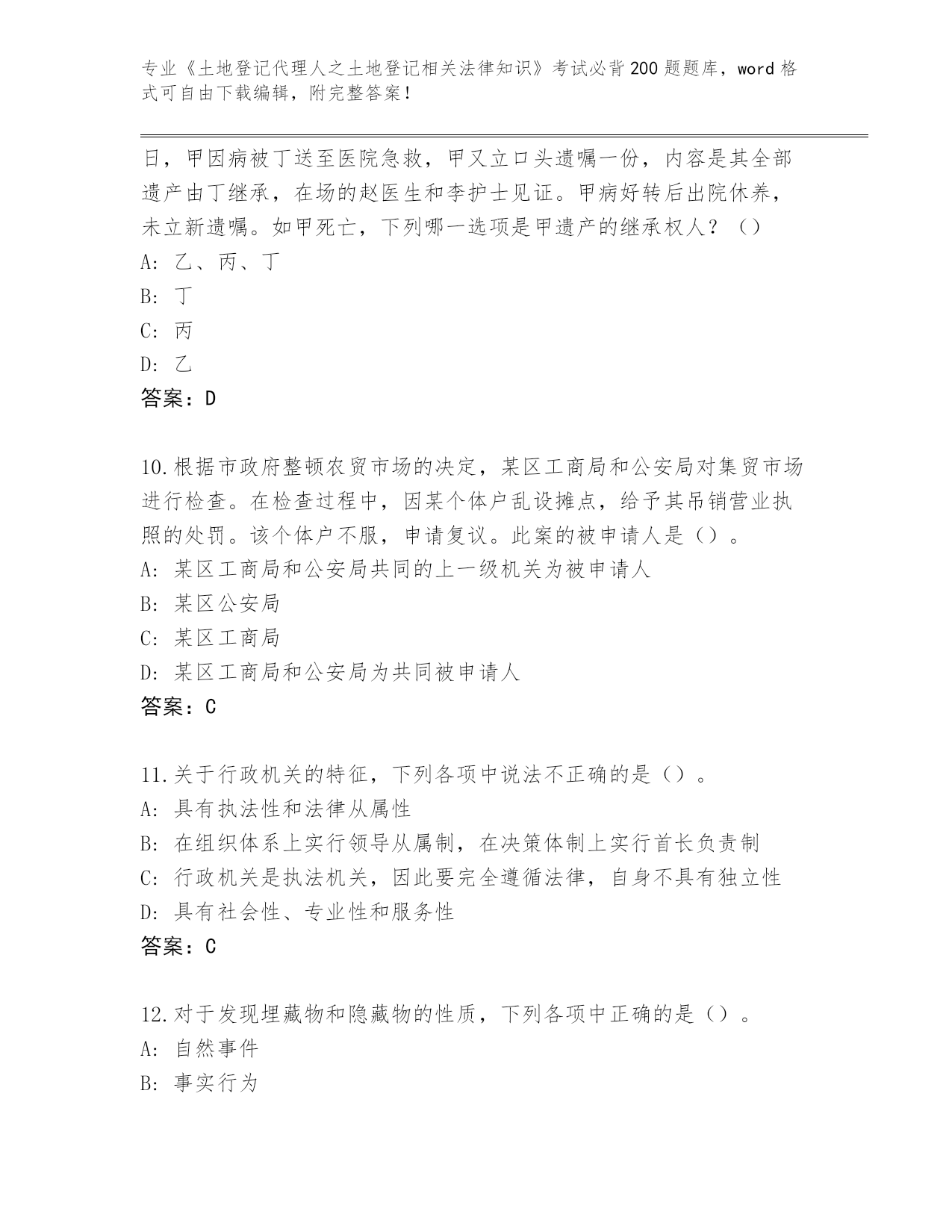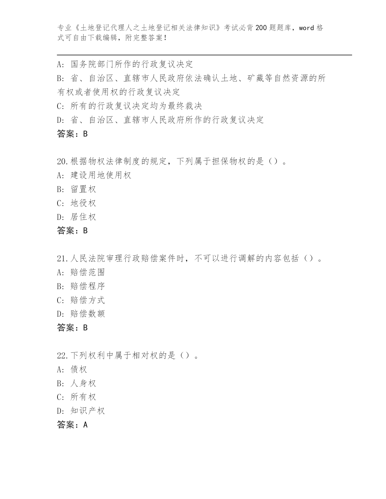 内部使用安徽省《土地登记代理人之土地登记相关法律知识》考试必背200题题库大全及答案(夺冠系列)
