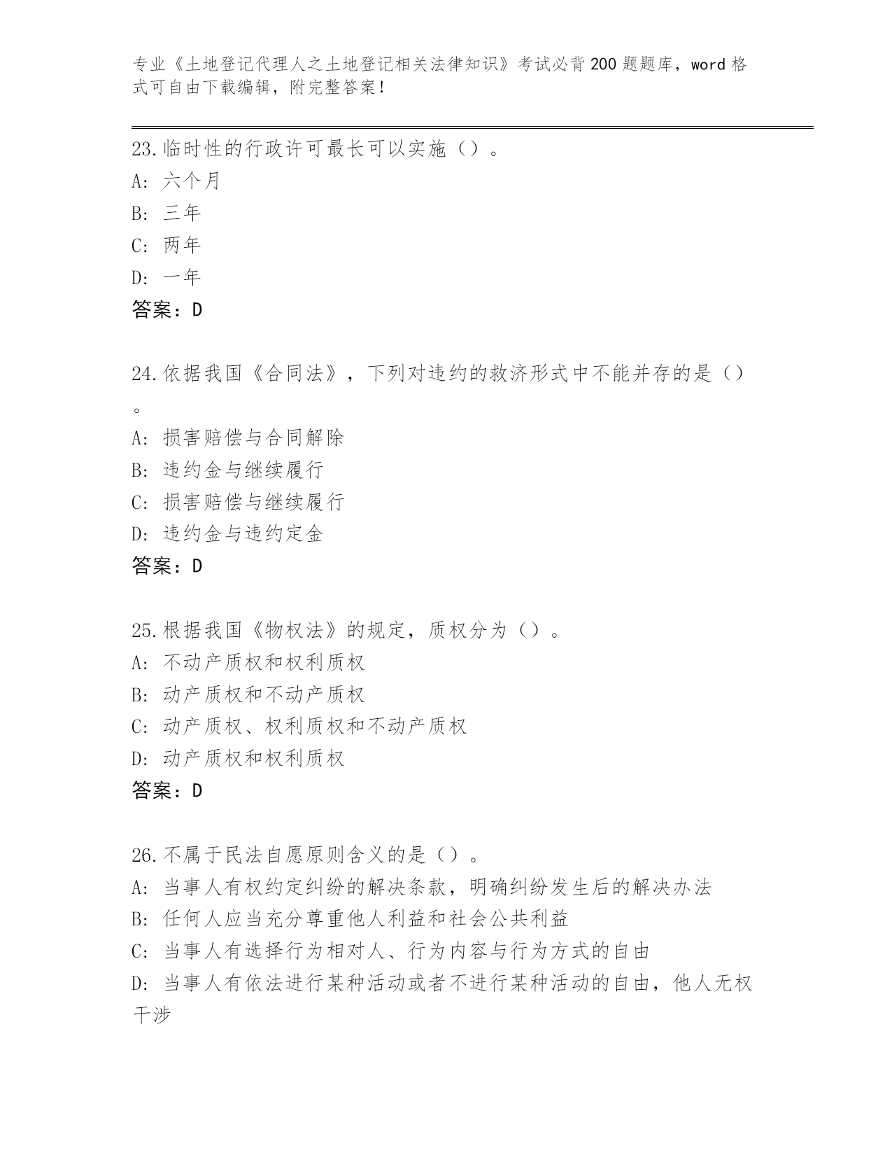 陕西省商州区2024年《土地登记代理人之土地登记相关法律知识》考试必背200题题库及答案(真题汇编)