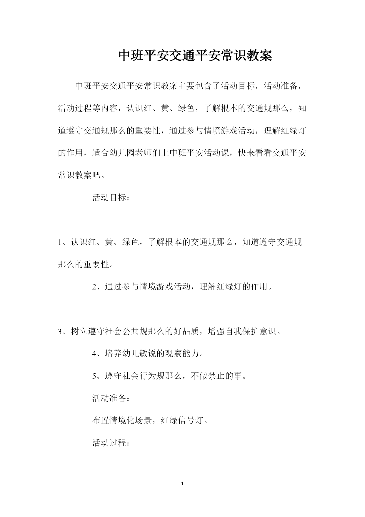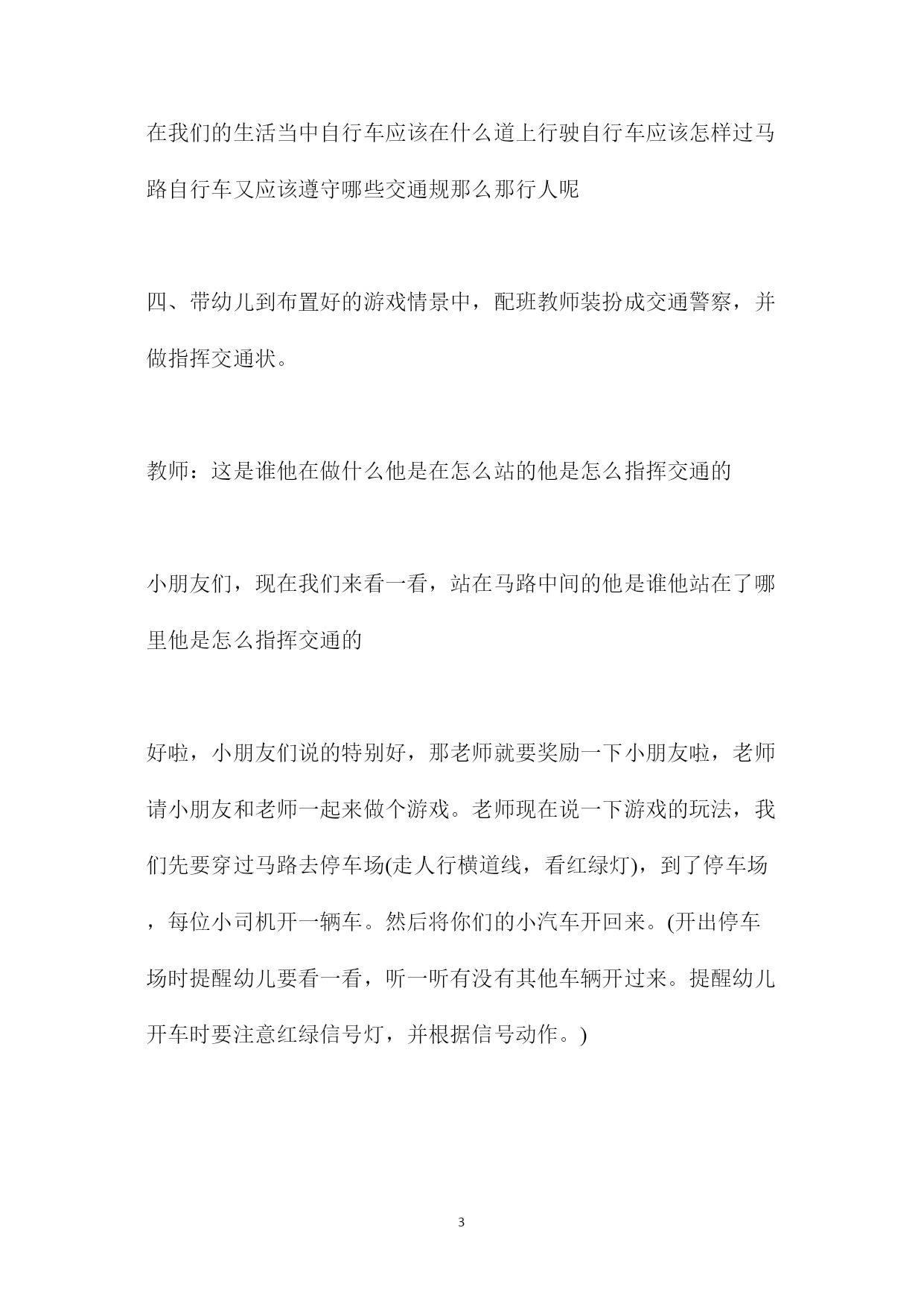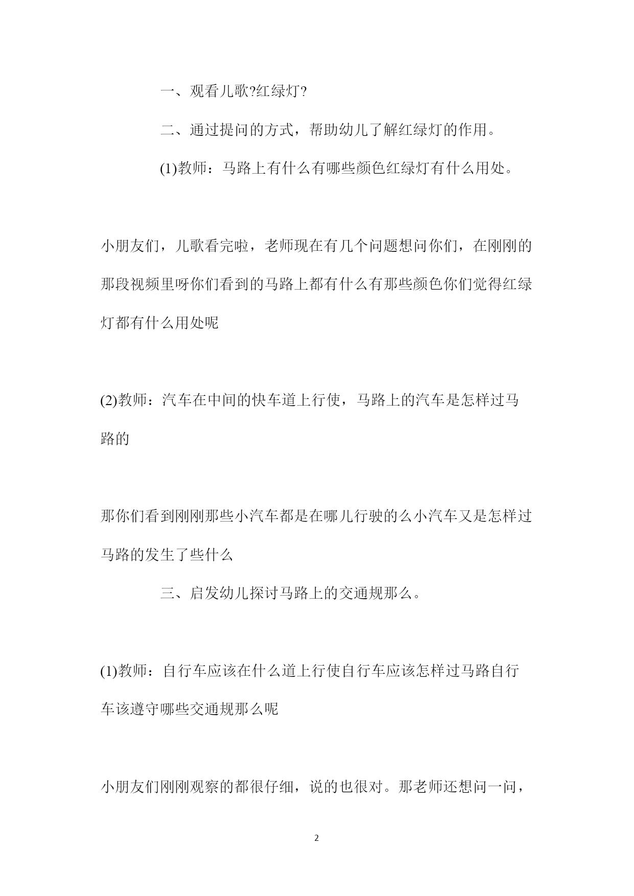 PAGEPAGE4中班平安交通平安常识教案中班平安交通平安常识教案主要包含了活动目标,活动准备,活动过程等内容,认识红、黄、绿色,了解根本的交通规那么,知道遵守交通规那么的重要性,通过参与情境游戏活动,理解红绿灯的作用,适合幼儿园老师们上中班平安活动课,快来看看交通平安常识教案吧。活动目标:1、认识红、黄、绿色,了解根本的交通规那么,知道遵守交通规那么的重要性。2、通过参与情境游戏活动,理解红绿灯的作用。3、树立遵守社会公共规那么的好品质,增强自我保护意识。4、培养幼儿敏锐的观察能力。5、遵守社会行为规那么,不做禁止的事。活动准备:布置情境化场景,红绿信号灯。活动过程:一、观看儿歌?红绿灯?二、通过提问的方式,帮助幼儿了解红绿灯的作用。(1)教师:马路上有什么有哪些颜色红绿灯有什么用处。小朋友们,儿歌看完啦,老师现在有几个问题想问你们,在刚刚的那段视频里呀你们看到的马路上都有什么有那些颜色你们觉得红绿灯都有什么用处呢(2)教师:汽车在中间的快车道上行使,马路上的汽车是怎样过马路的那你们看到刚刚那些小汽车都是在哪儿行驶的么小汽车又是怎样过马路的发生了些什么三、启发幼儿探讨马路上的交通规那么。(1)教师:自行车应该在什么道上行使自行车应该怎样过马路自行车该遵守哪些交通规那么呢小朋友们刚刚观察的都很仔细,说的也很对。那老师还想问一问,在我们的生活当中自行车应该在什么道上行驶自行车应该怎样过马路自行车又应该遵守哪些交通规那么那行人呢四、带幼儿到布置好的游戏情景中,配班教师装扮成交通警察,并做指挥交通状。教师:这是谁他在做什么他是在怎么站的他是怎么指挥交通的小朋友们,现在我们来看一看,站在马路中间的他是谁他站在了哪里他是怎么指挥交通的好啦,小朋友们说的特别好,那老师就要奖励一下小朋友啦,老师请小朋友和老师一起来做个游戏。老师现在说一下游戏的玩法,我们先要穿过马路去停车场(走人行横道线,看红绿灯),到了停车场,每位小司机开一辆车。然后将你们的小汽车开回来。(开出停车场时提醒幼儿要看一看,听一听有没有其他车辆开过来。提醒幼儿开车时要注意红绿信号灯,并根据信号动作。)内容总结〔1〕中班平安交通平安常识教案中班平安交通平安常识教案主要包含了活动目标,活动准备,活动过程等内容,认识红、黄、绿色,了解根本的交通规那么,知道遵守交通规那么的重要性,通过参与情境游戏活动,理解红绿灯的作用,适合幼儿园老师们上中班平安活动课,快来看看交通平安常识教案吧〔2〕活动准备:布置情境化场景,红绿信号灯〔3〕活动过程:一、观看儿歌?红绿灯?二、通过提问的方式,帮助幼儿了解红绿灯的作用