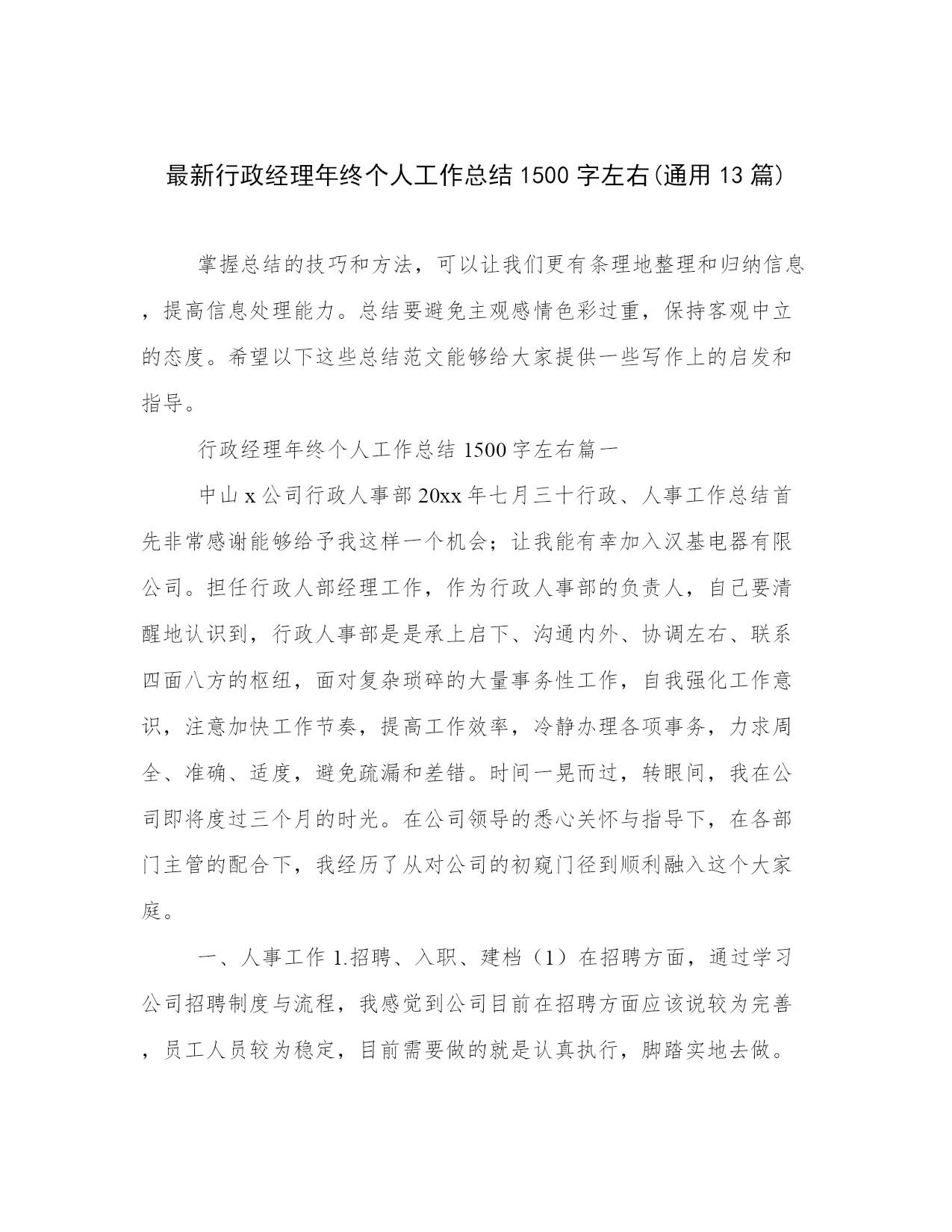 最新行政经理年终个人工作总结1500字左右(通用13篇).docx