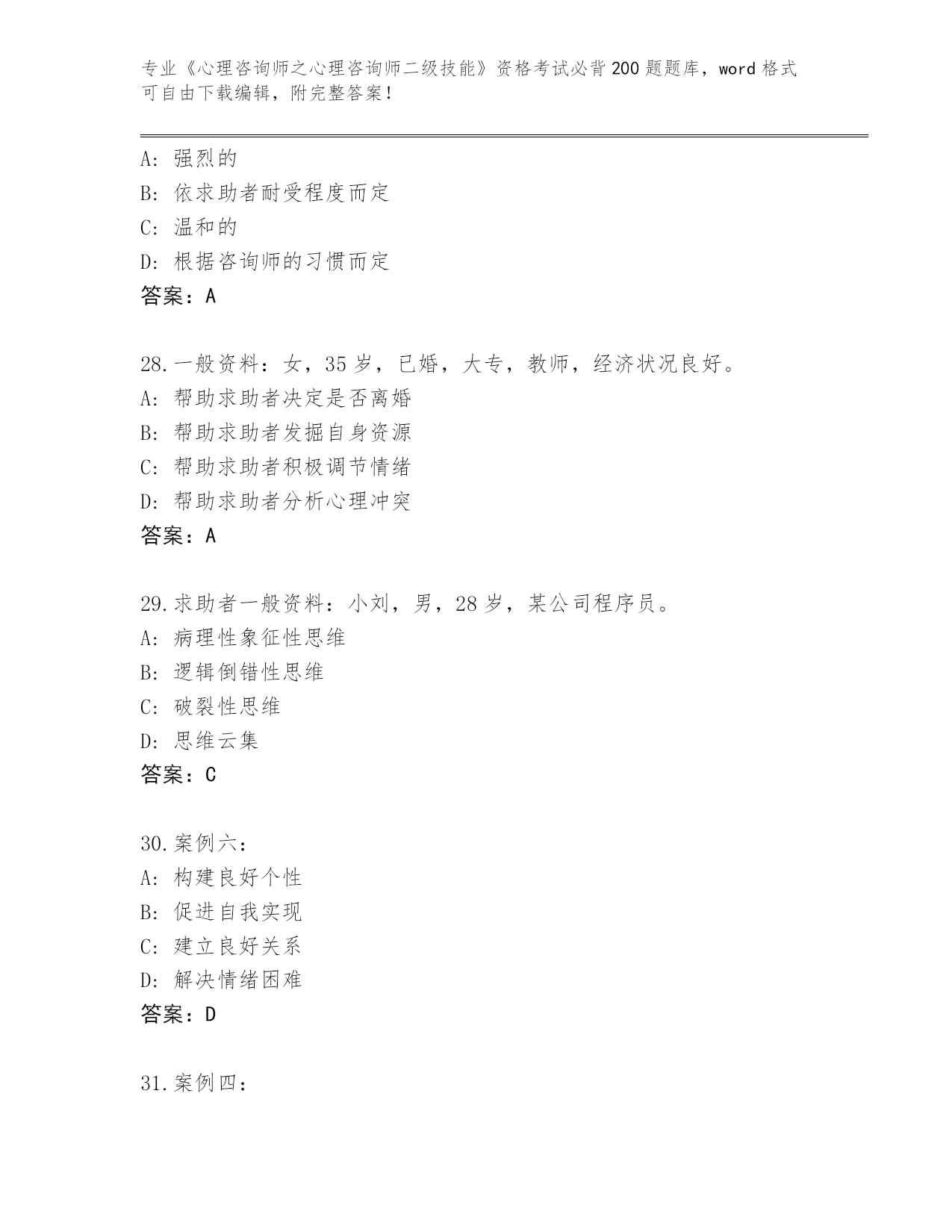 河北省新华区完整版《心理咨询师之心理咨询师二级技能》资格考试必背200题真题题库附参考答案(综合卷)