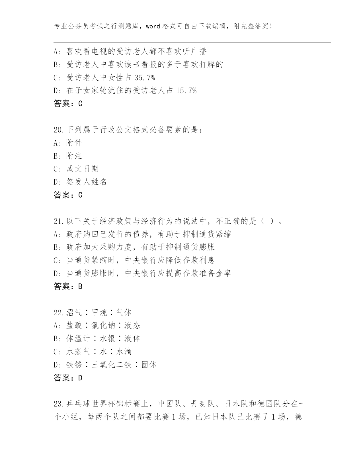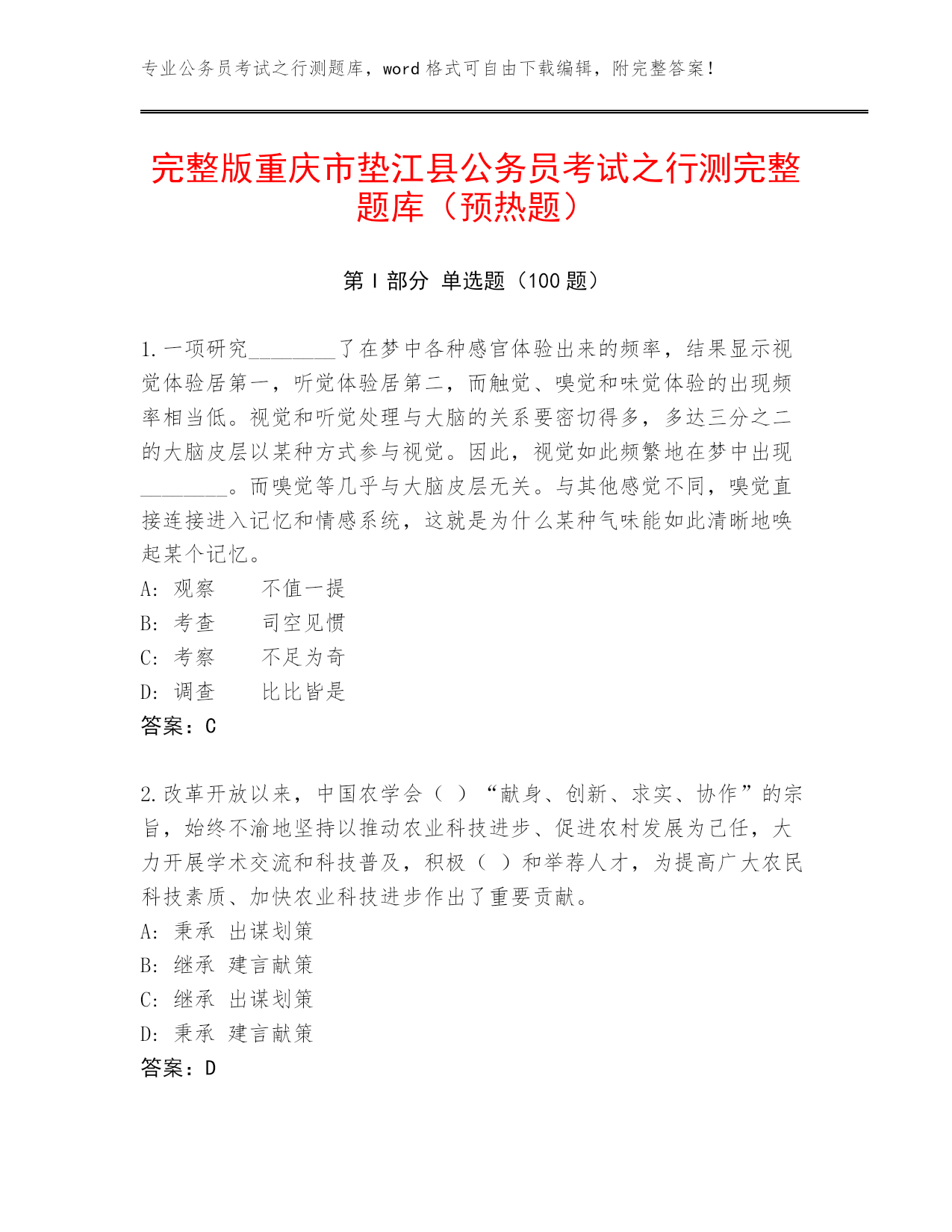 完整版重庆市垫江县公务员考试之行测完整题库(预热题).docx