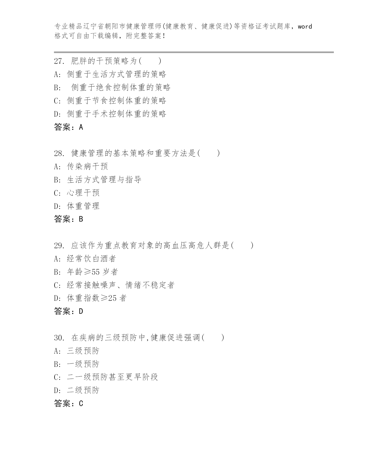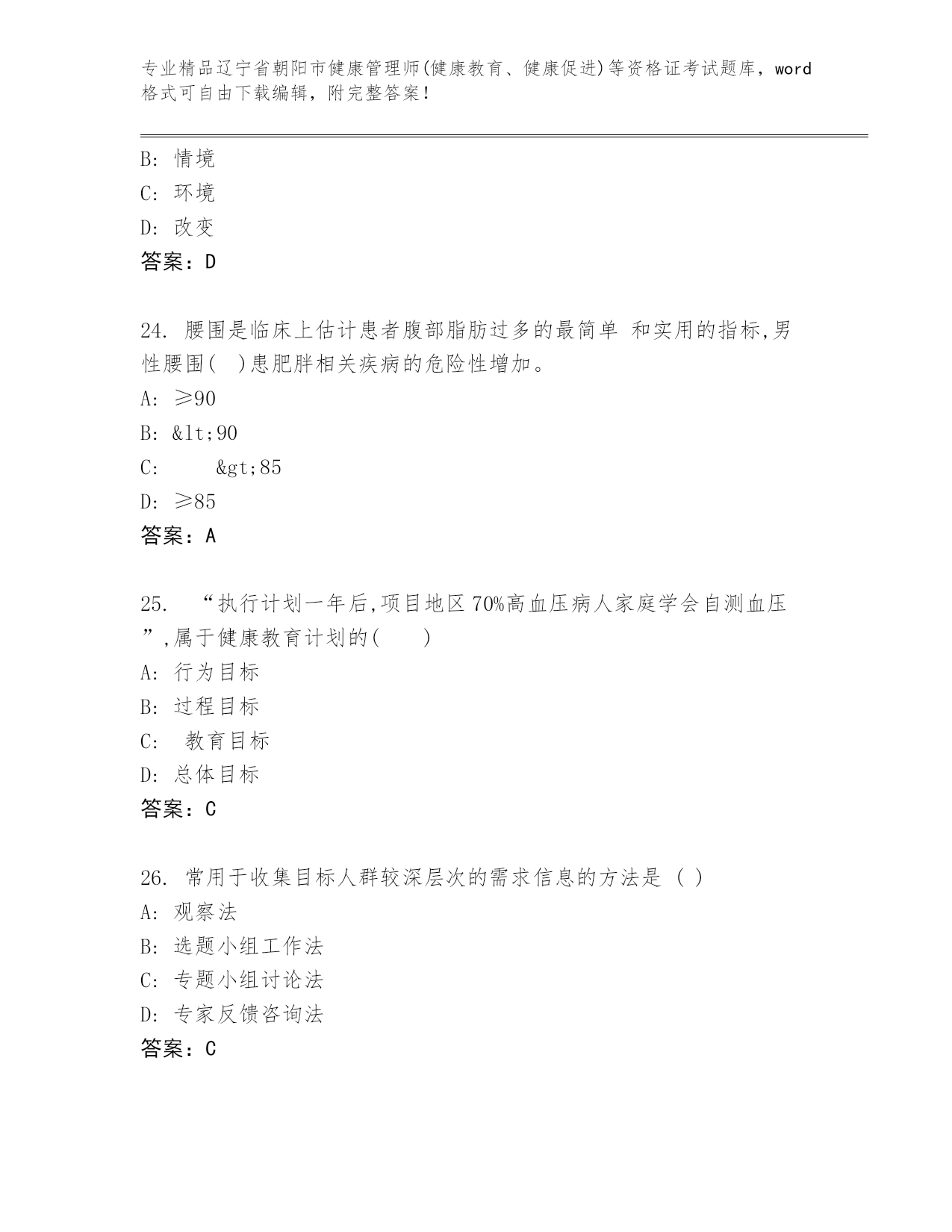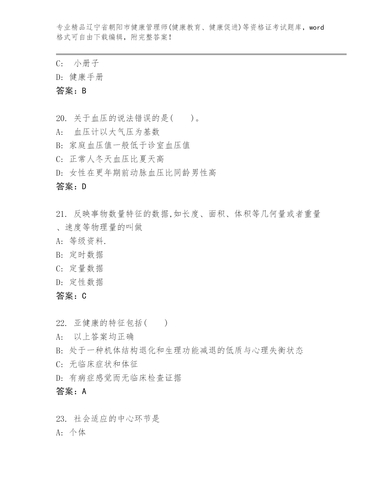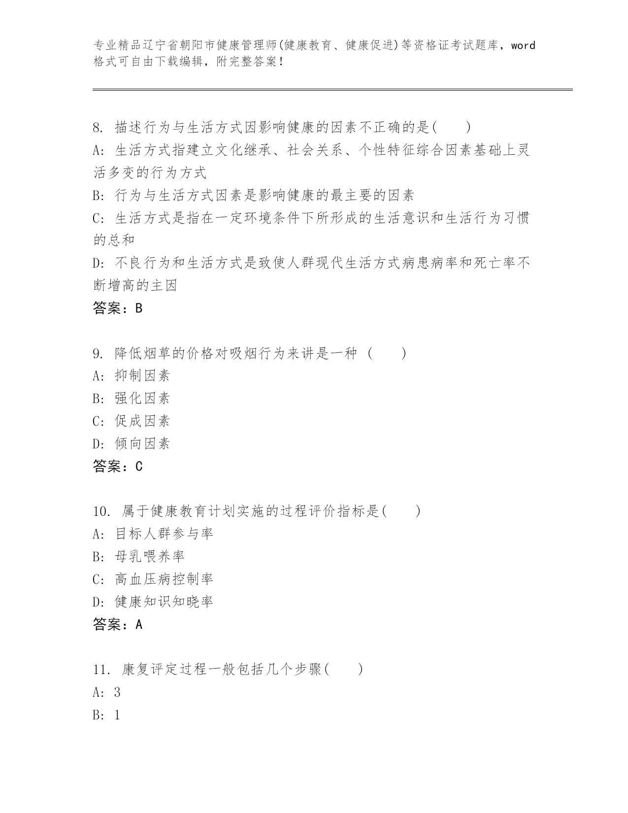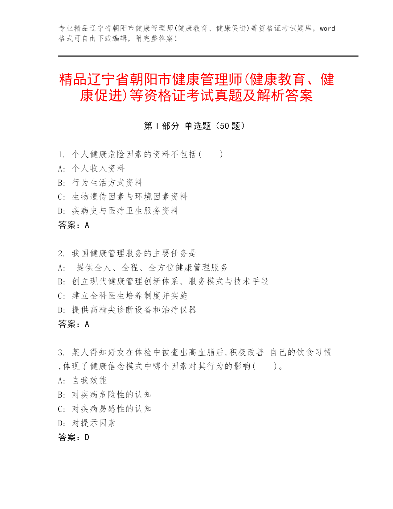 精品辽宁省朝阳市健康管理师(健康教育、健康促进)等资格证考试真题及解析答案