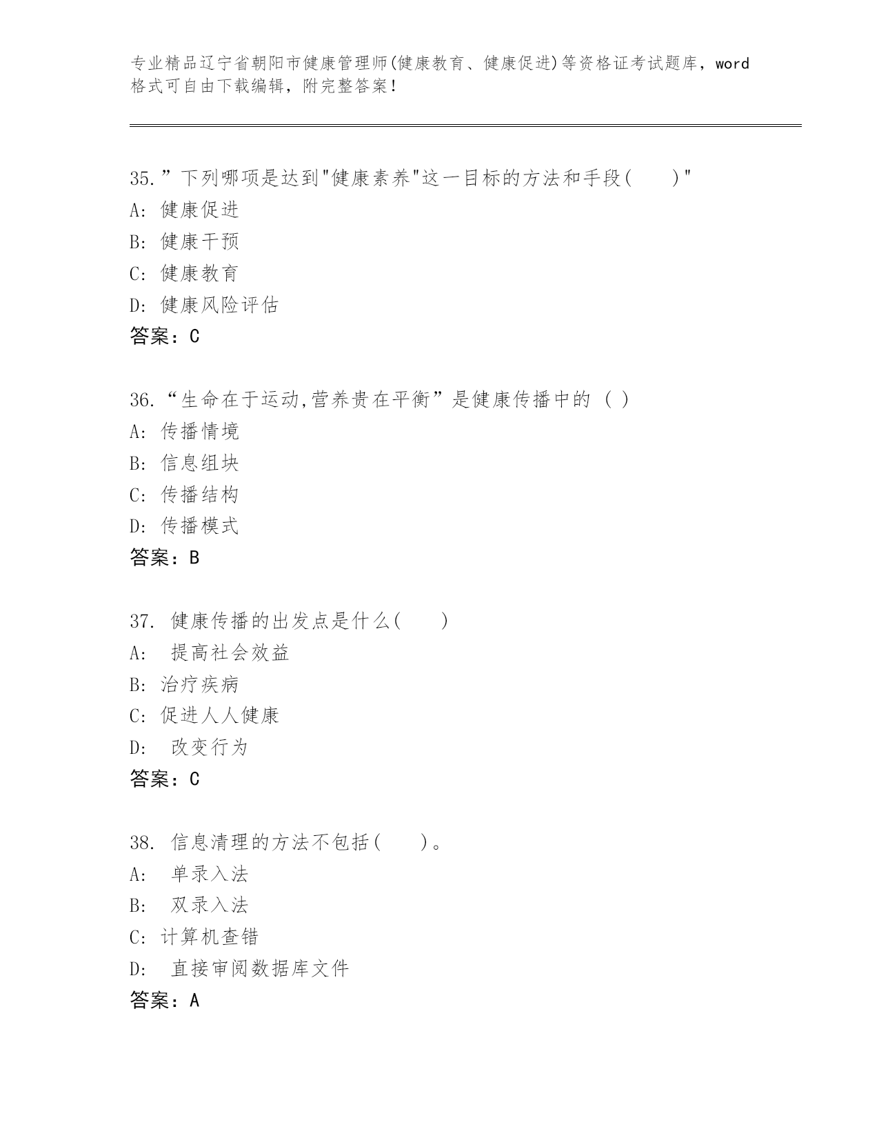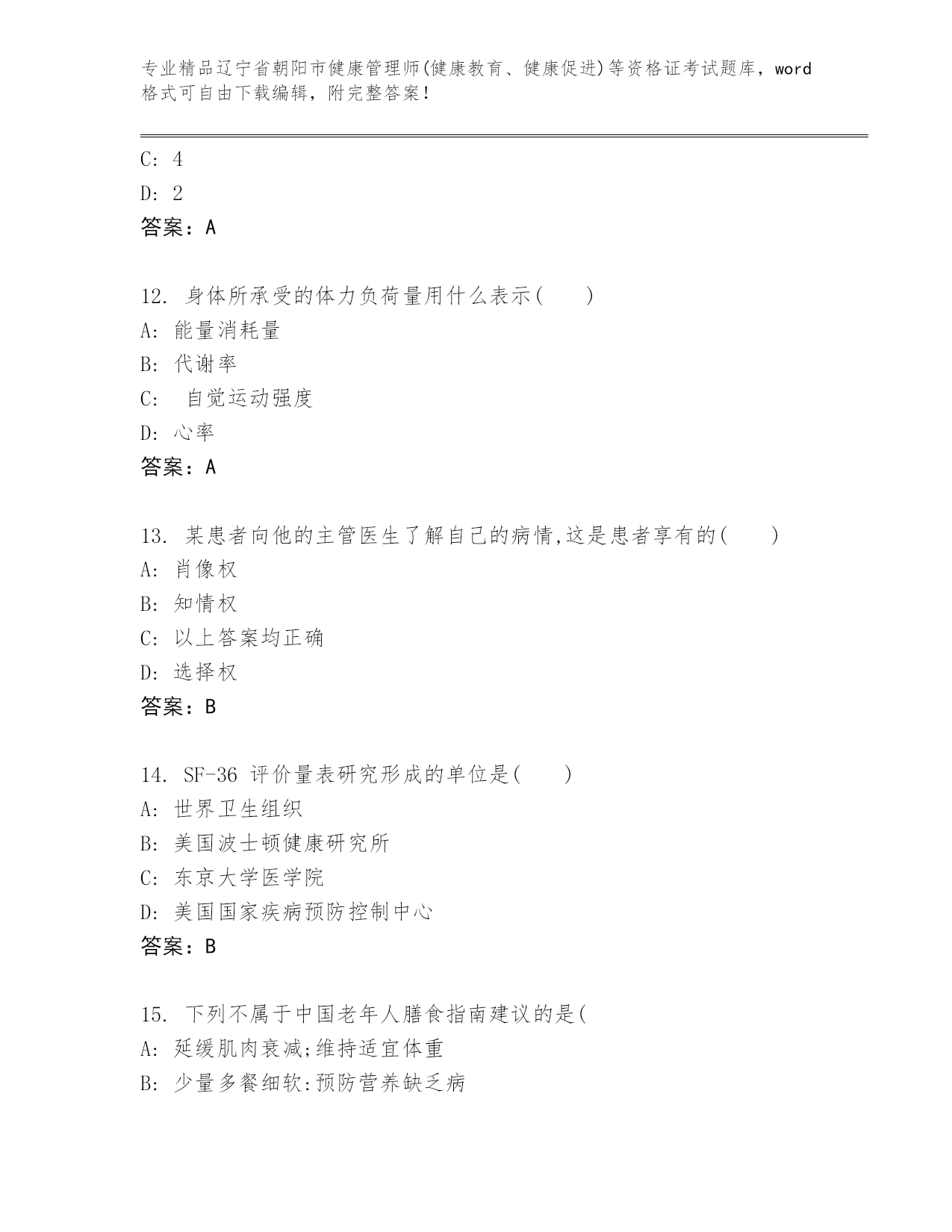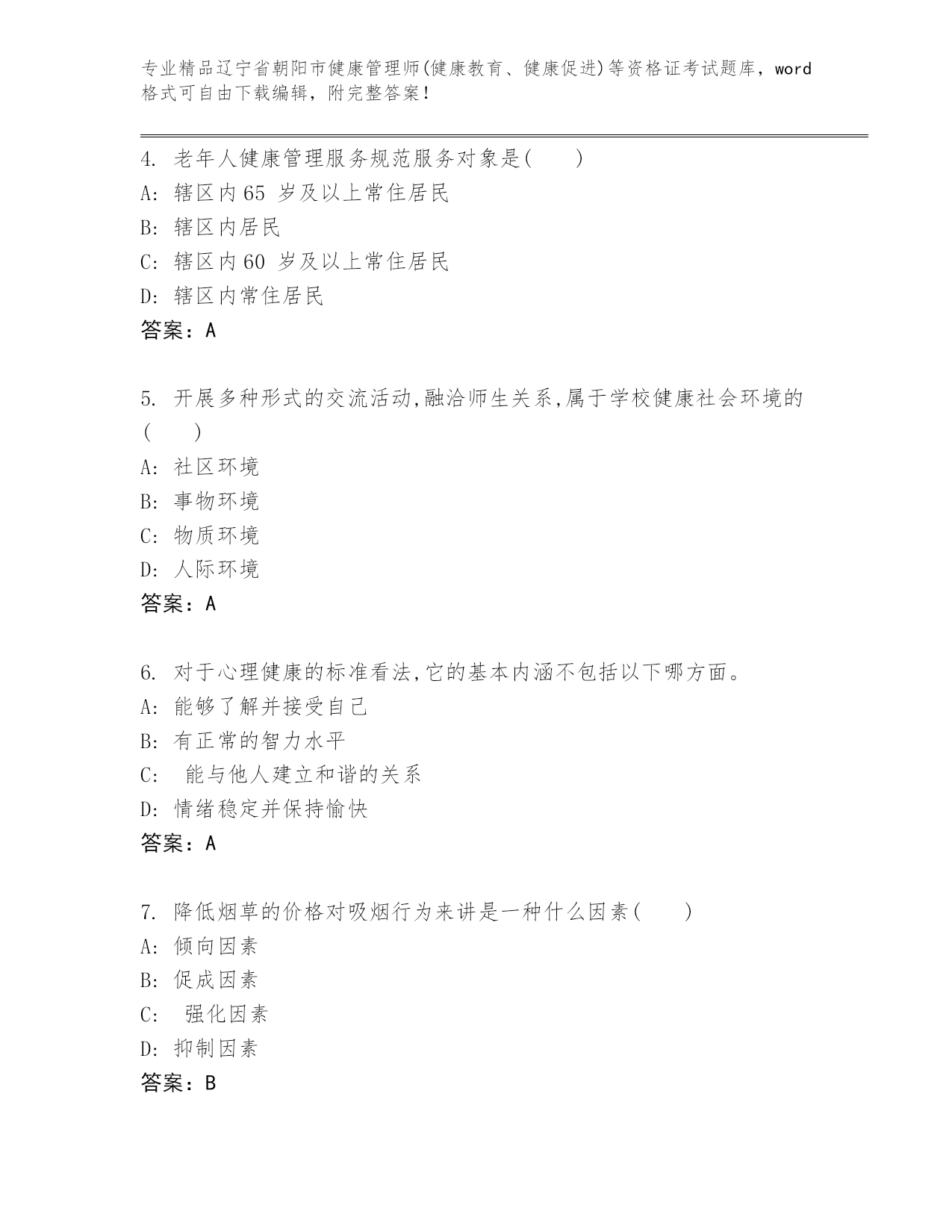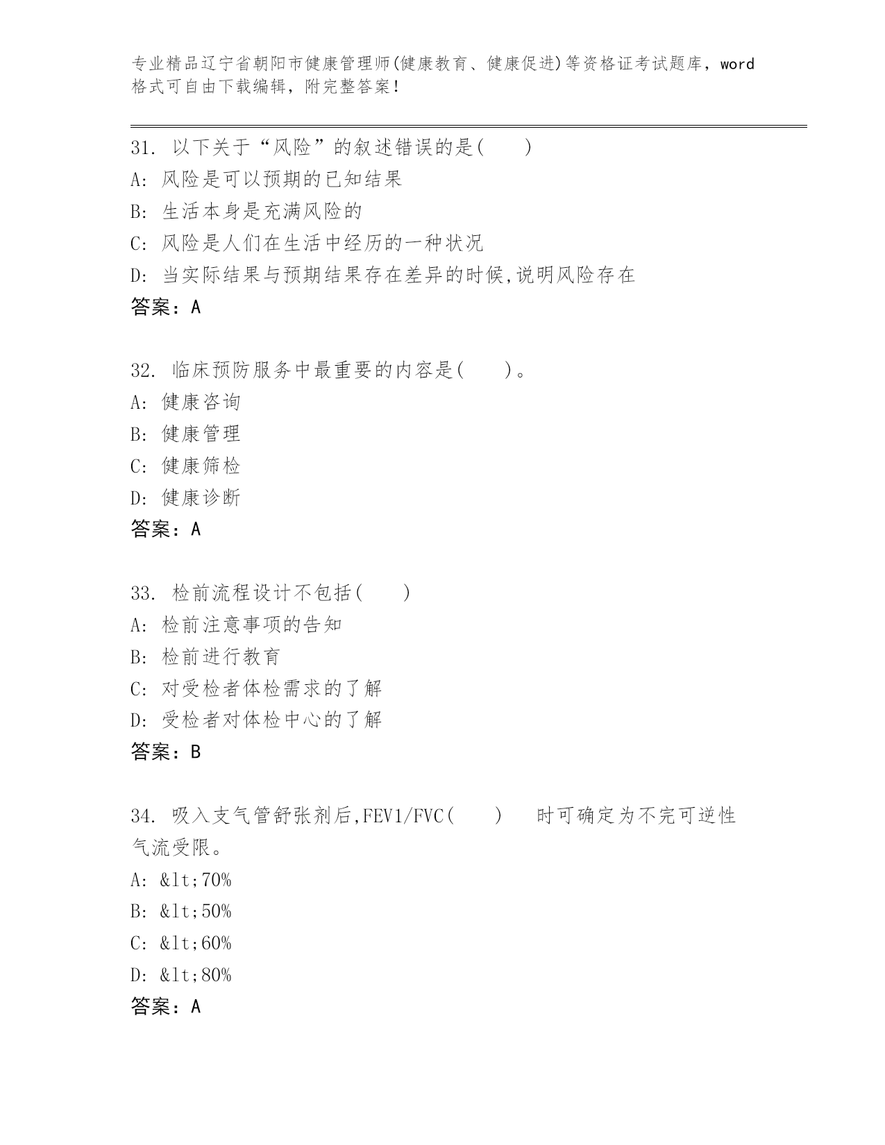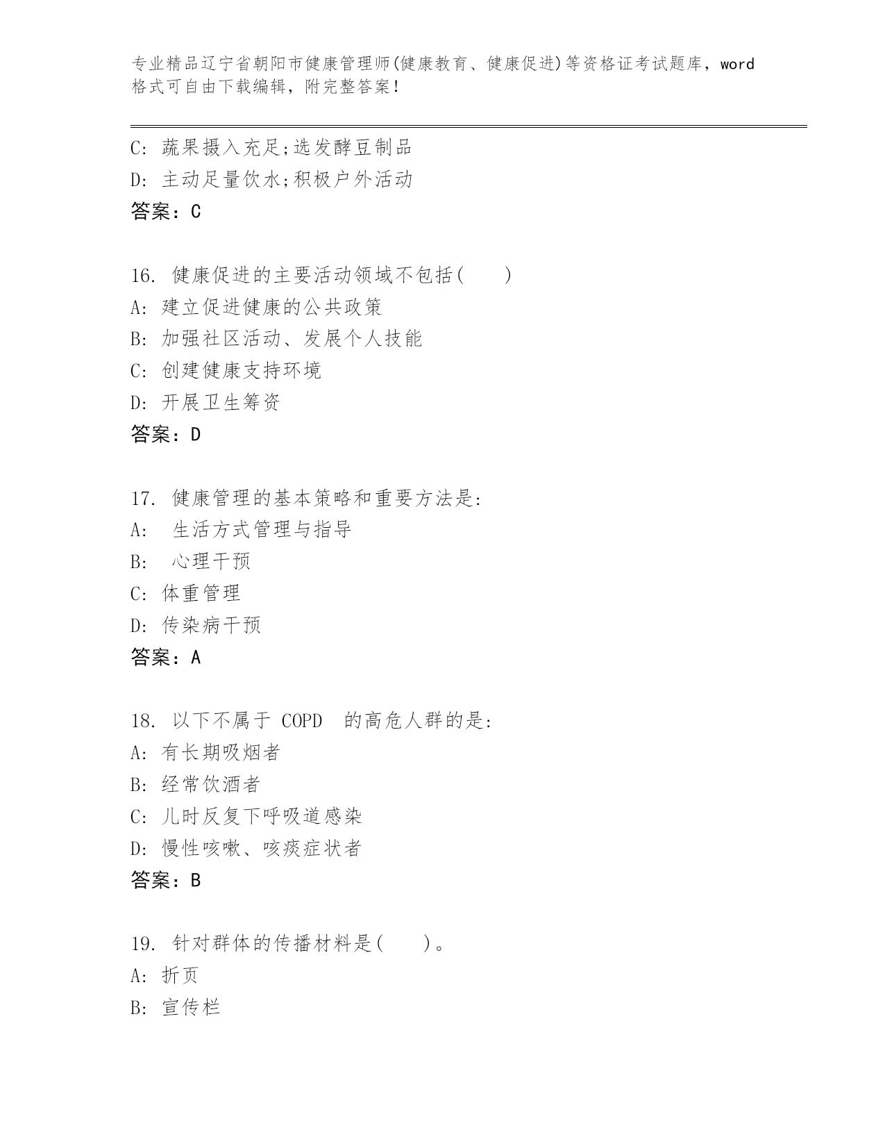 精品辽宁省朝阳市健康管理师(健康教育、健康促进)等资格证考试真题及解析答案