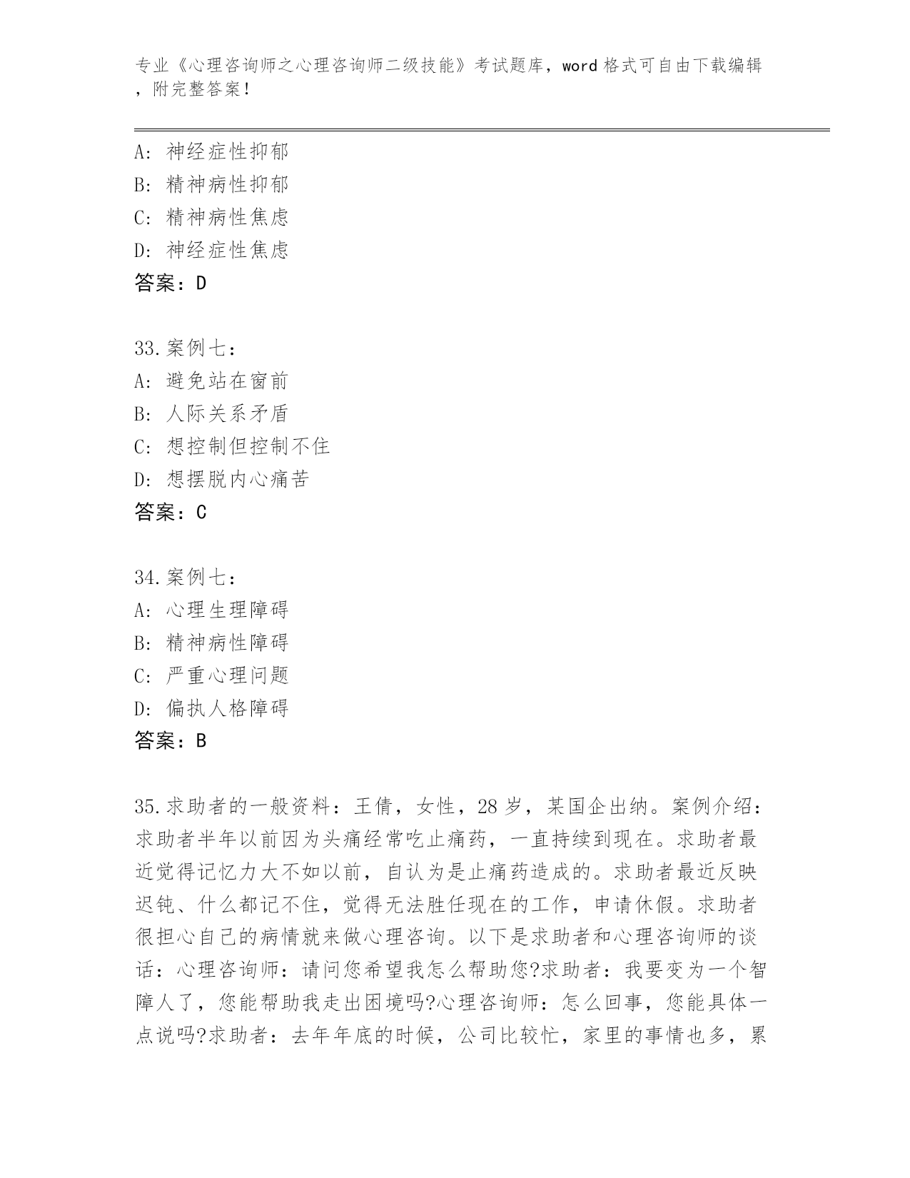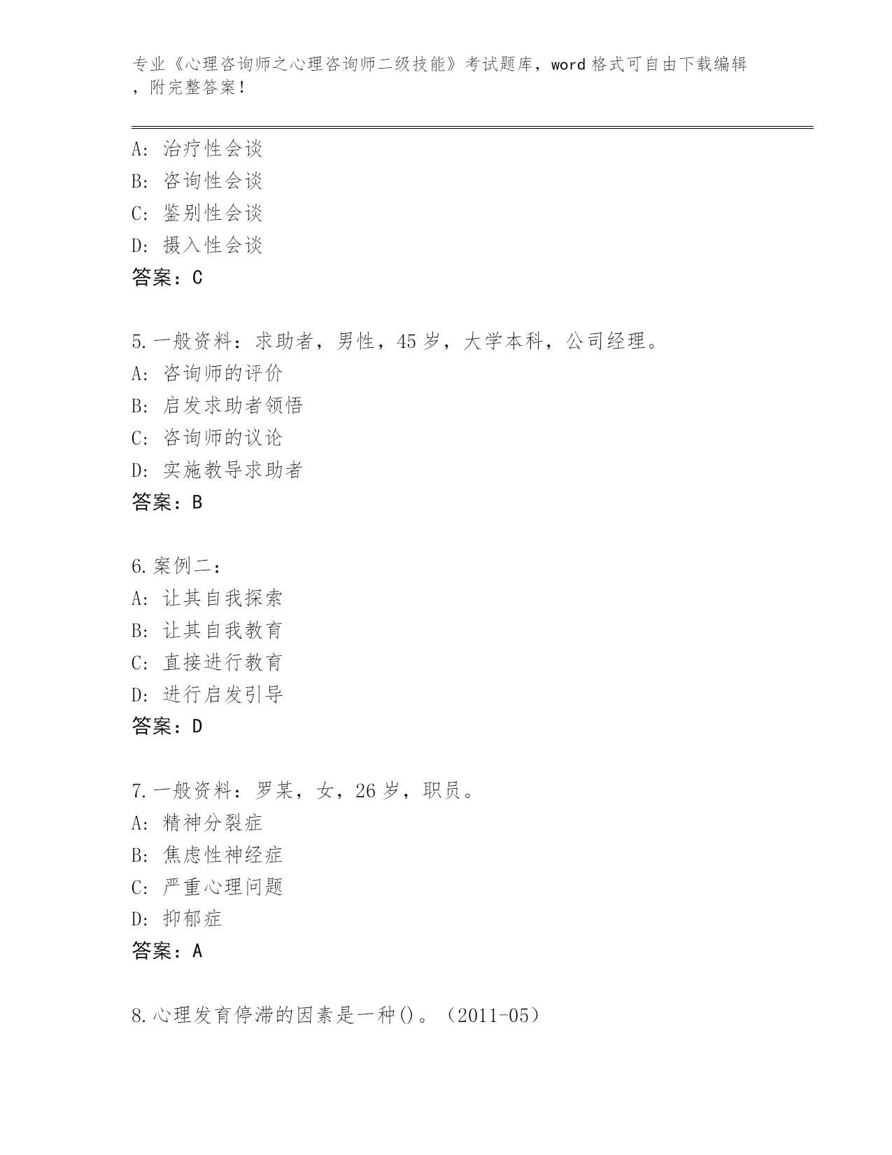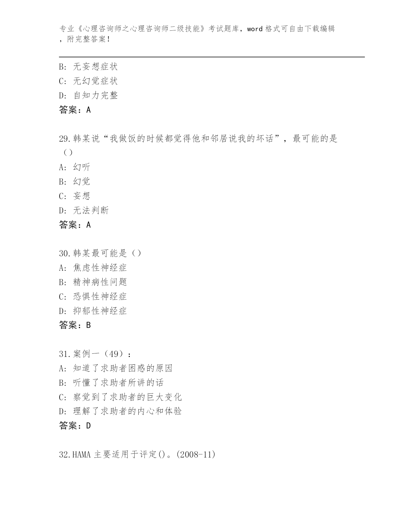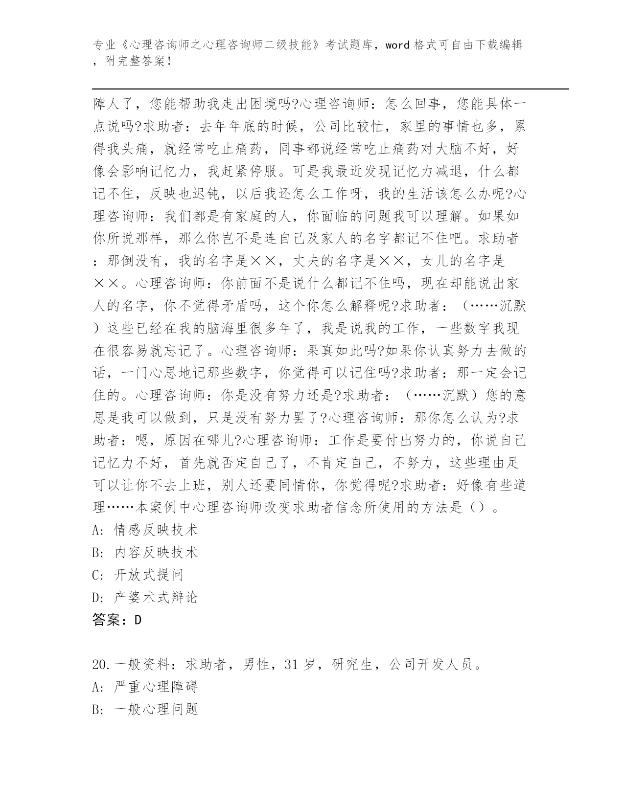 河南省马村区2024年《心理咨询师之心理咨询师二级技能》考试大全(名校卷)