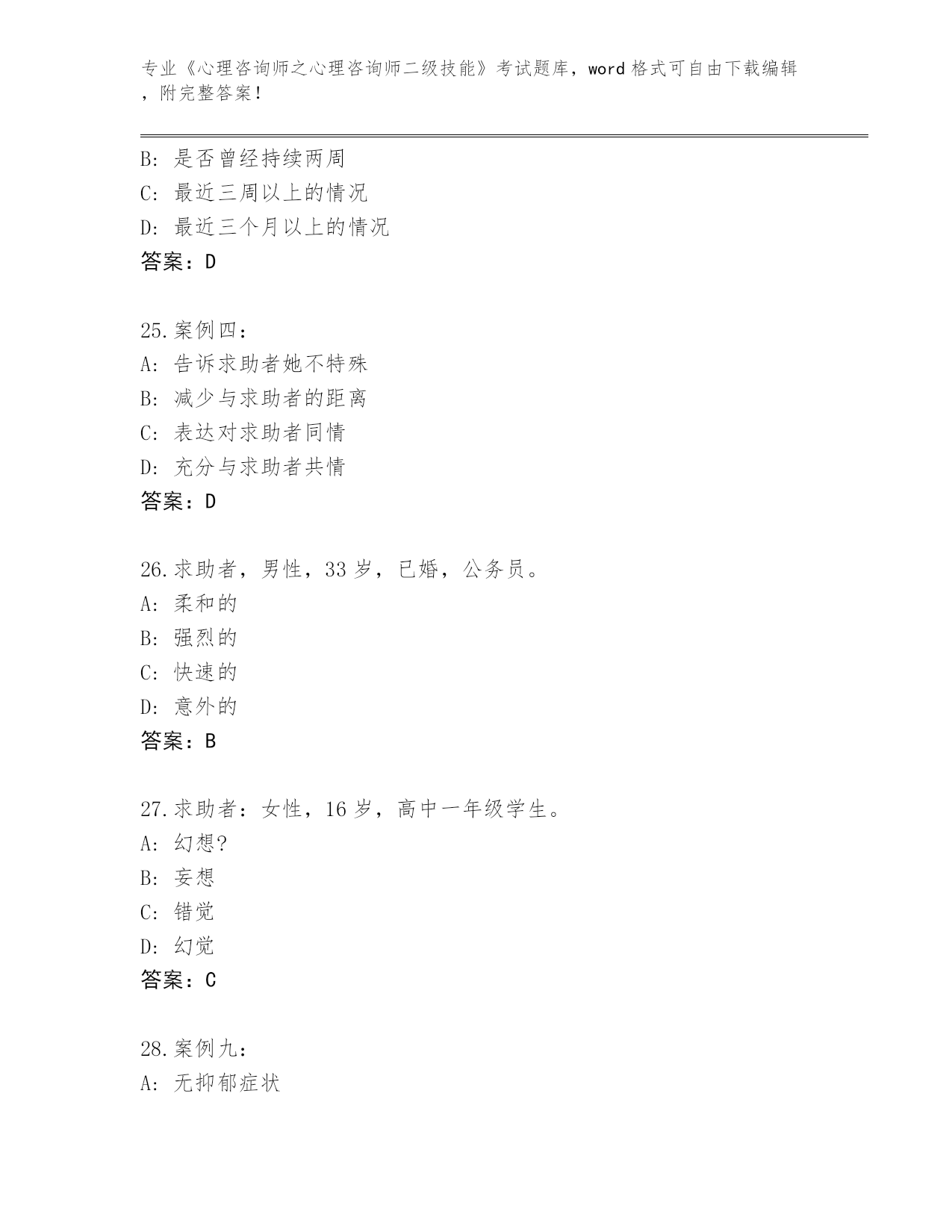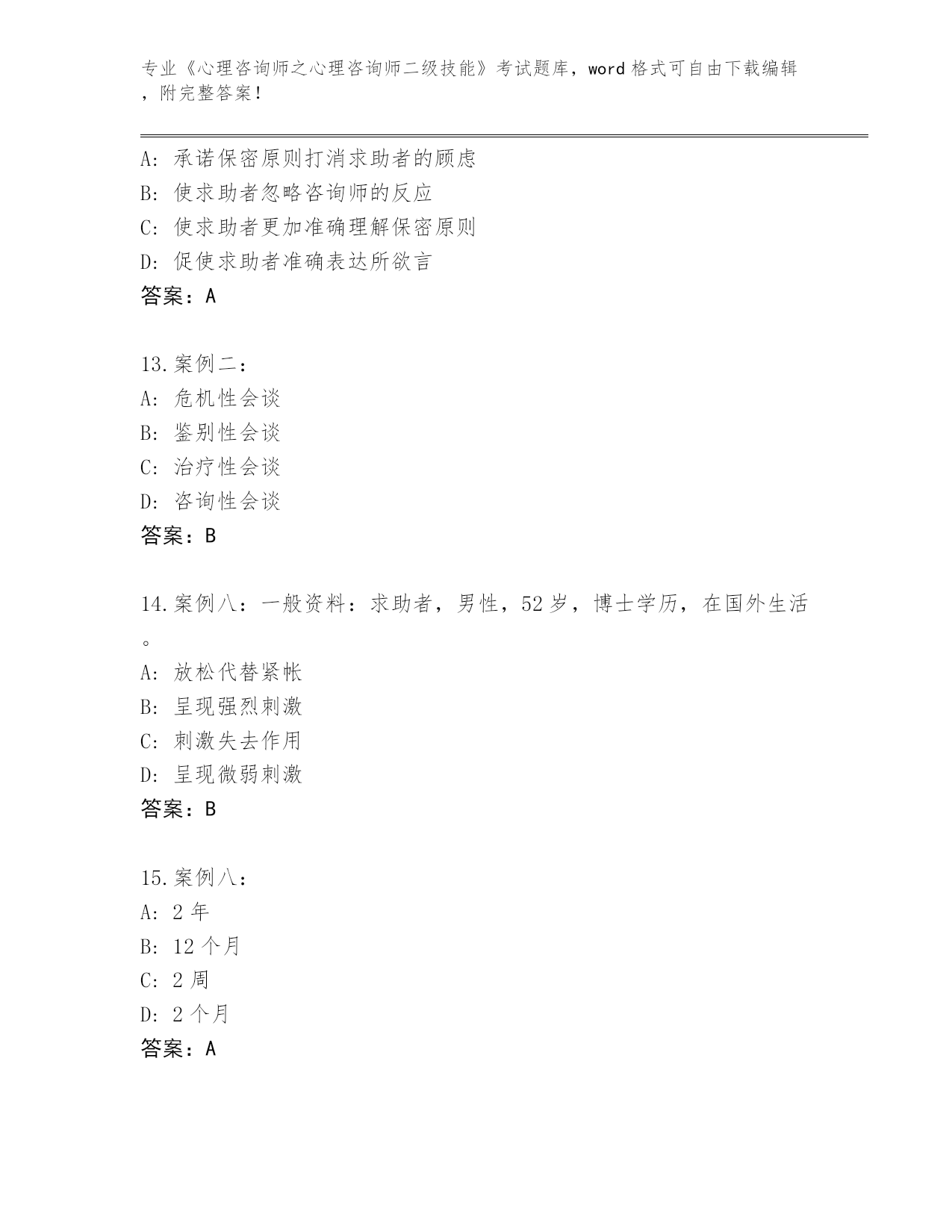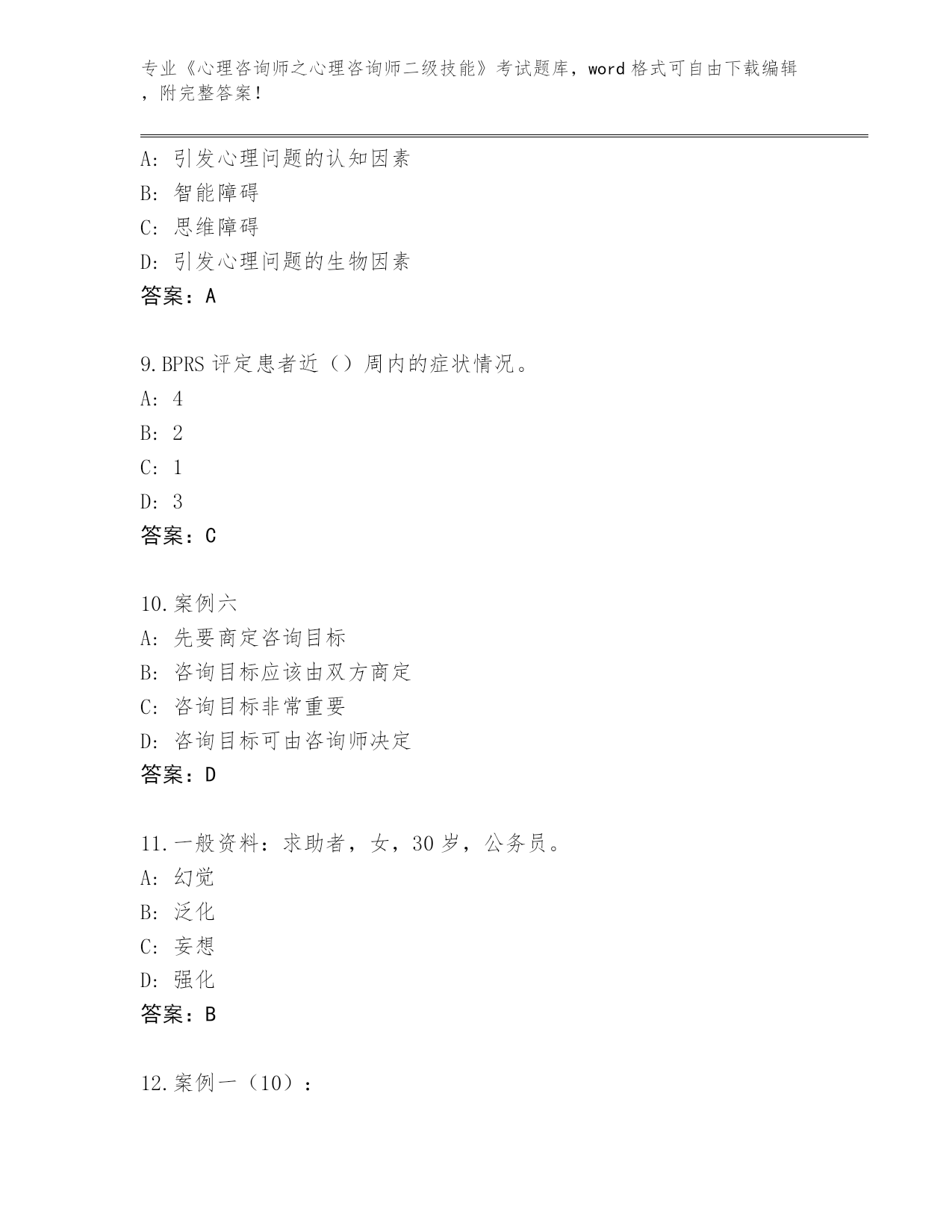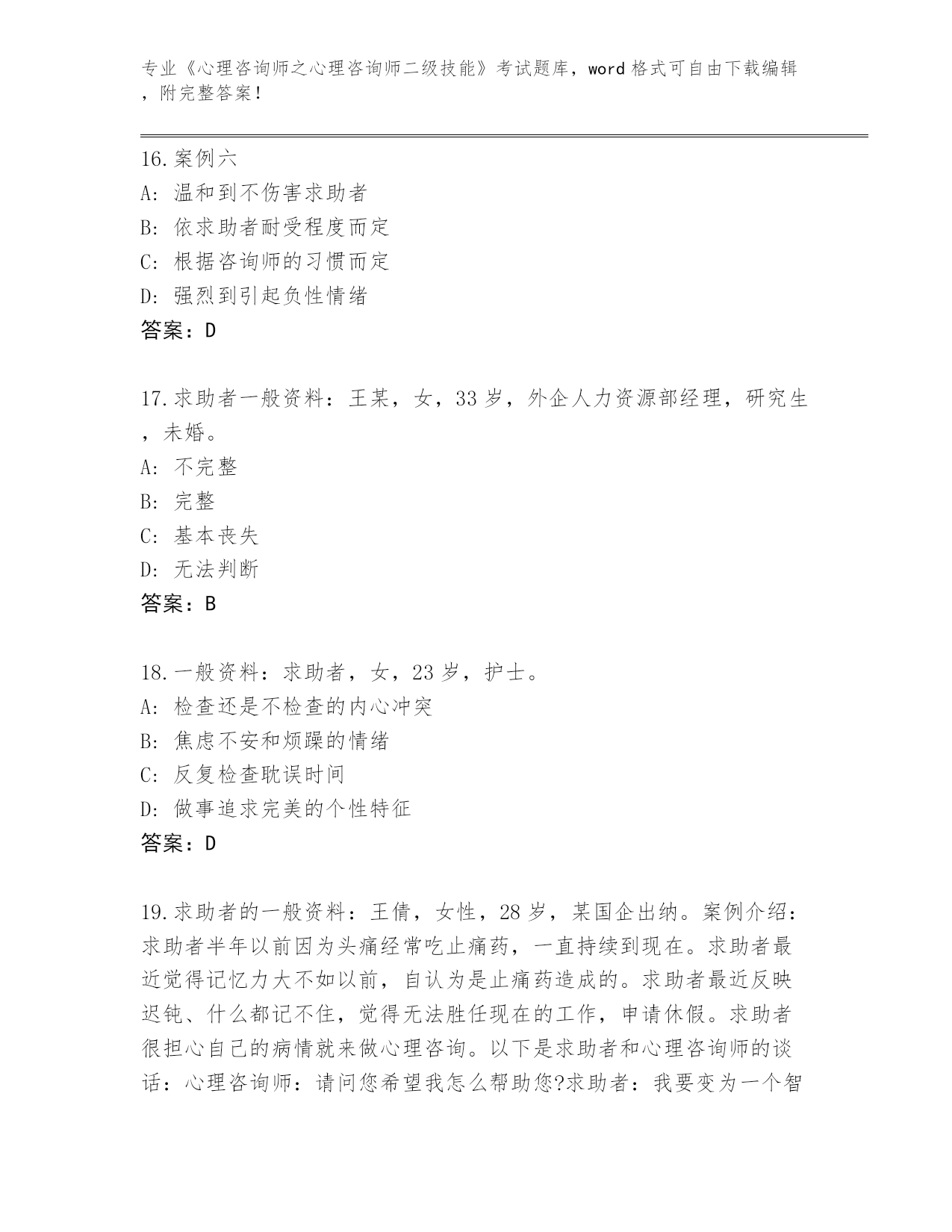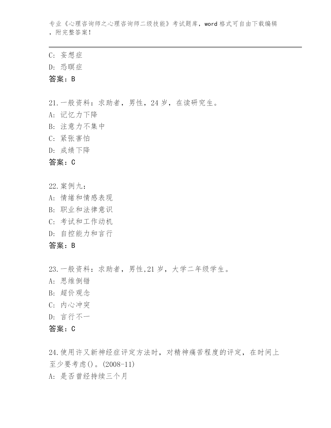 河南省马村区2024年《心理咨询师之心理咨询师二级技能》考试大全(名校卷)