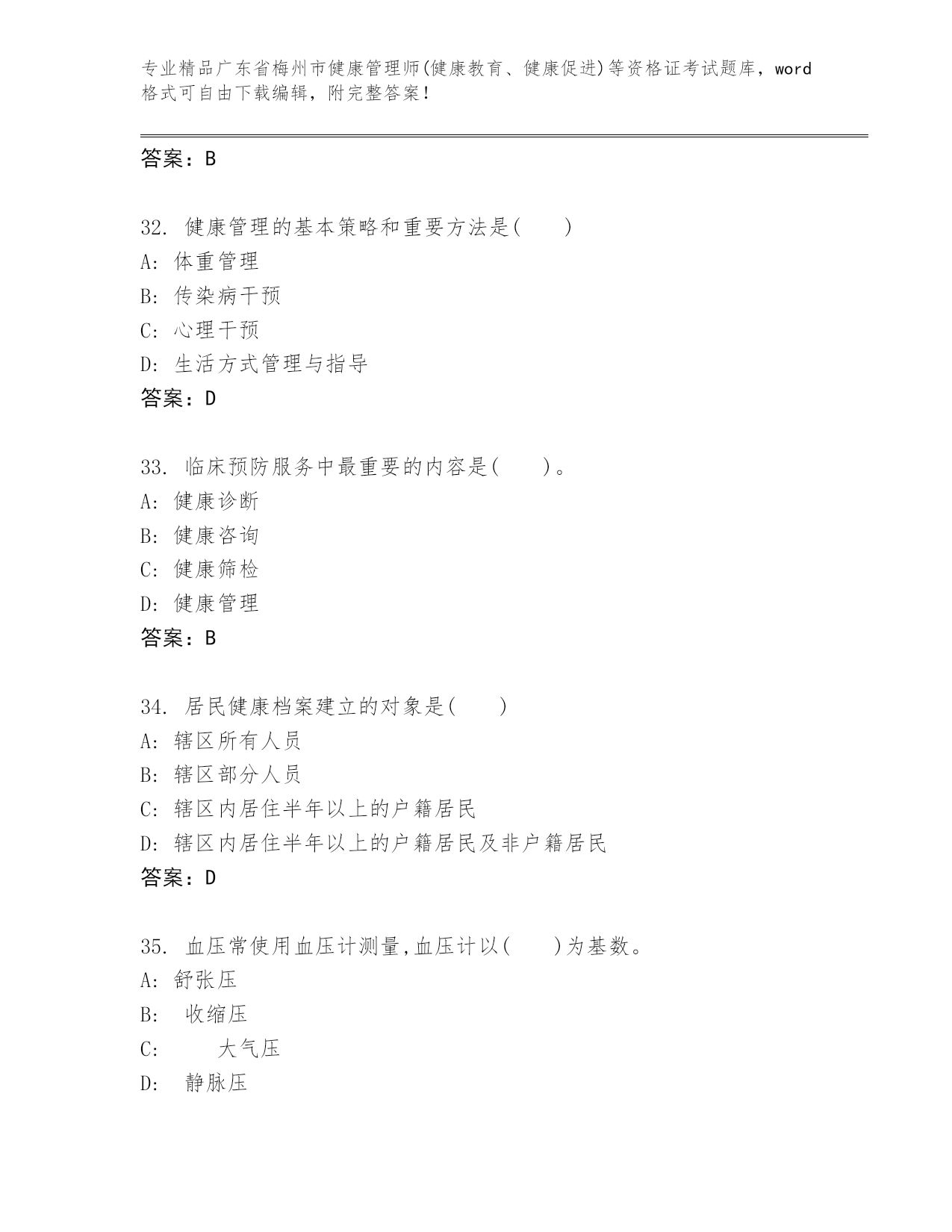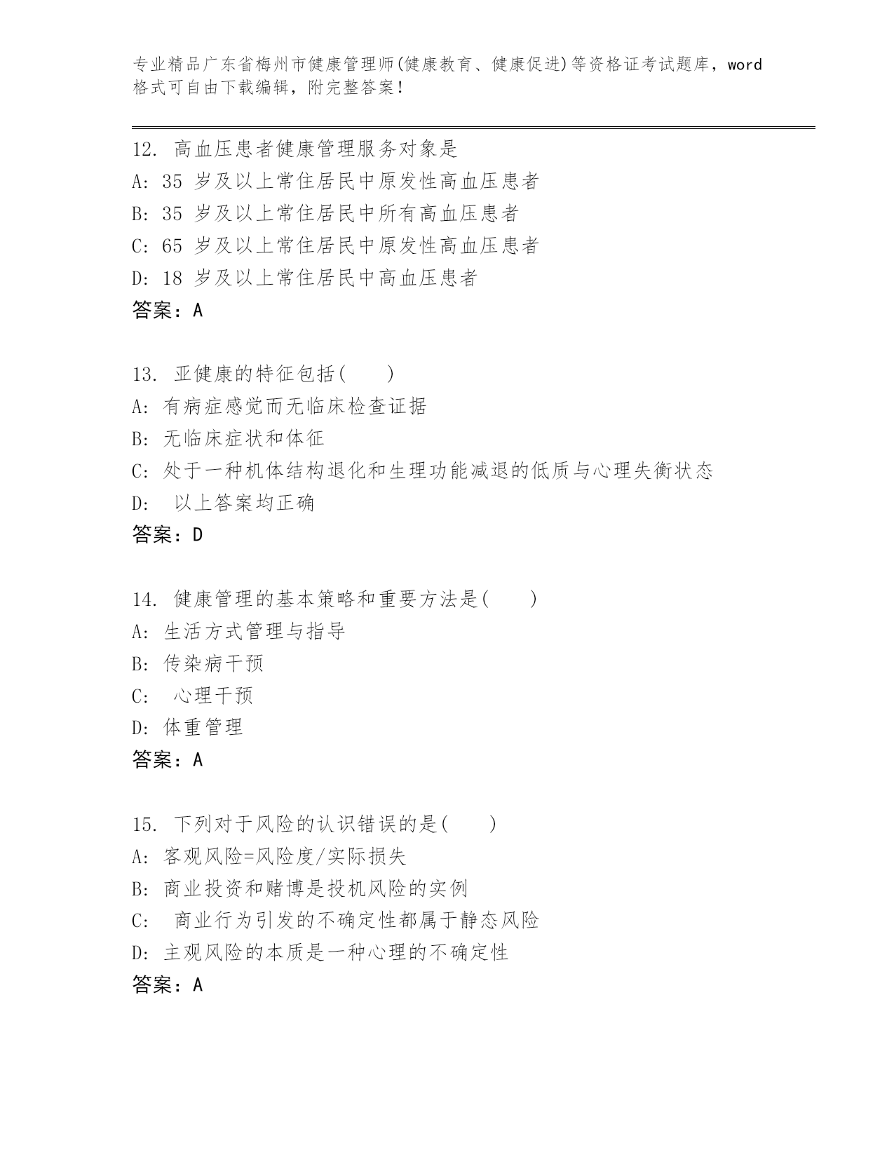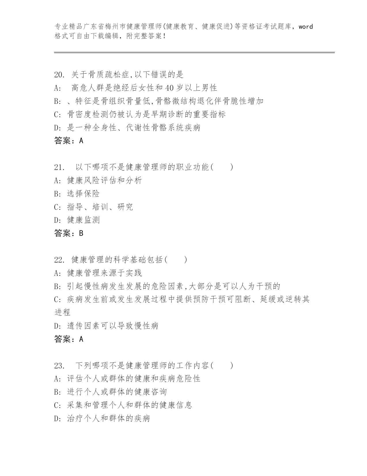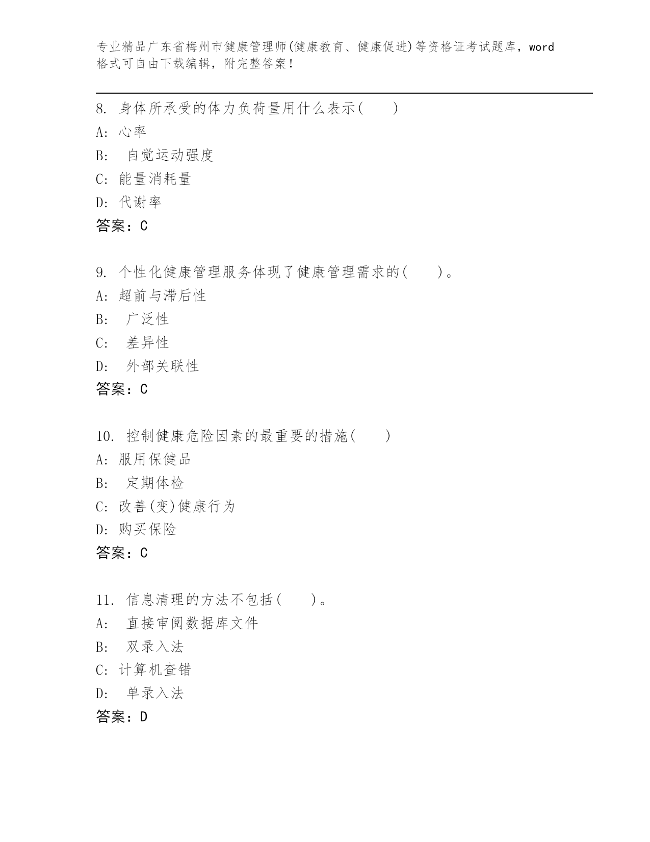 优选广东省梅州市健康管理师(健康教育、健康促进)等资格证考试通用题库及精品答案.docx