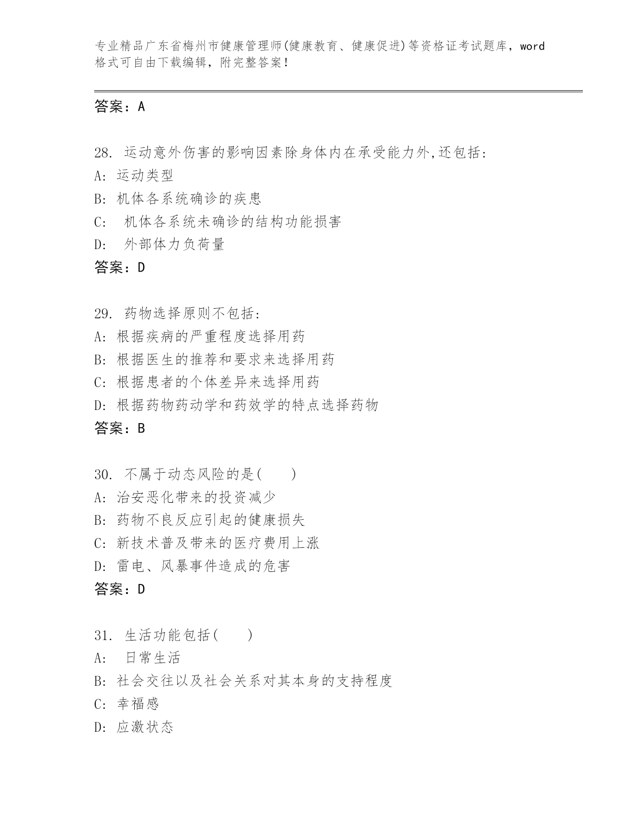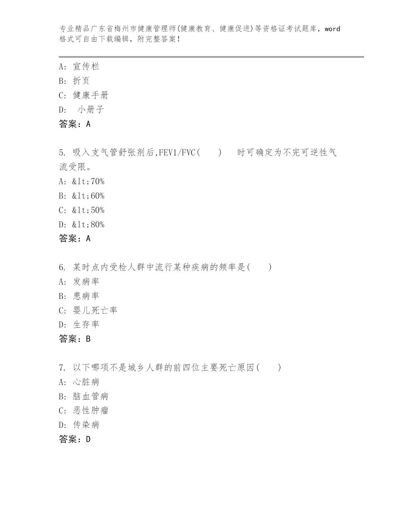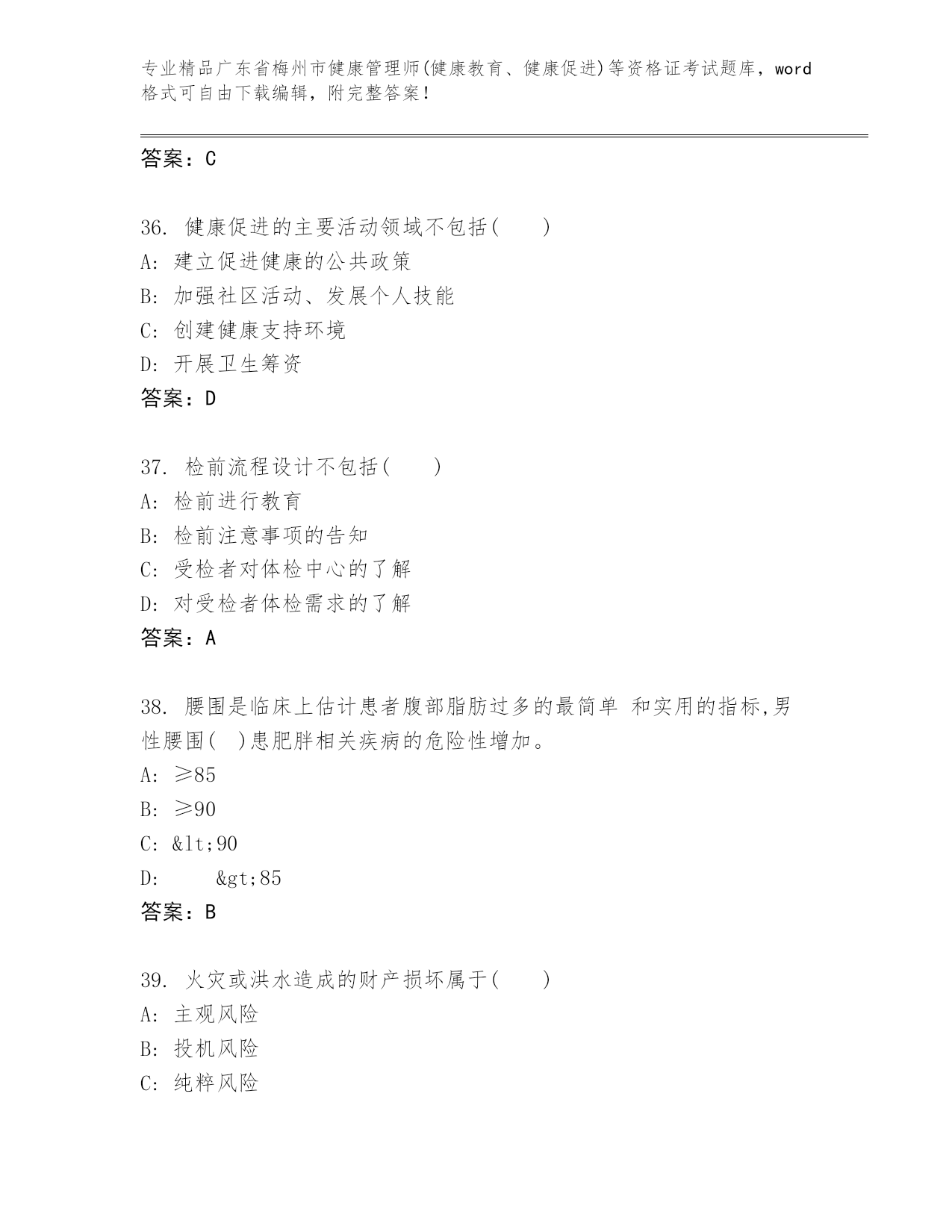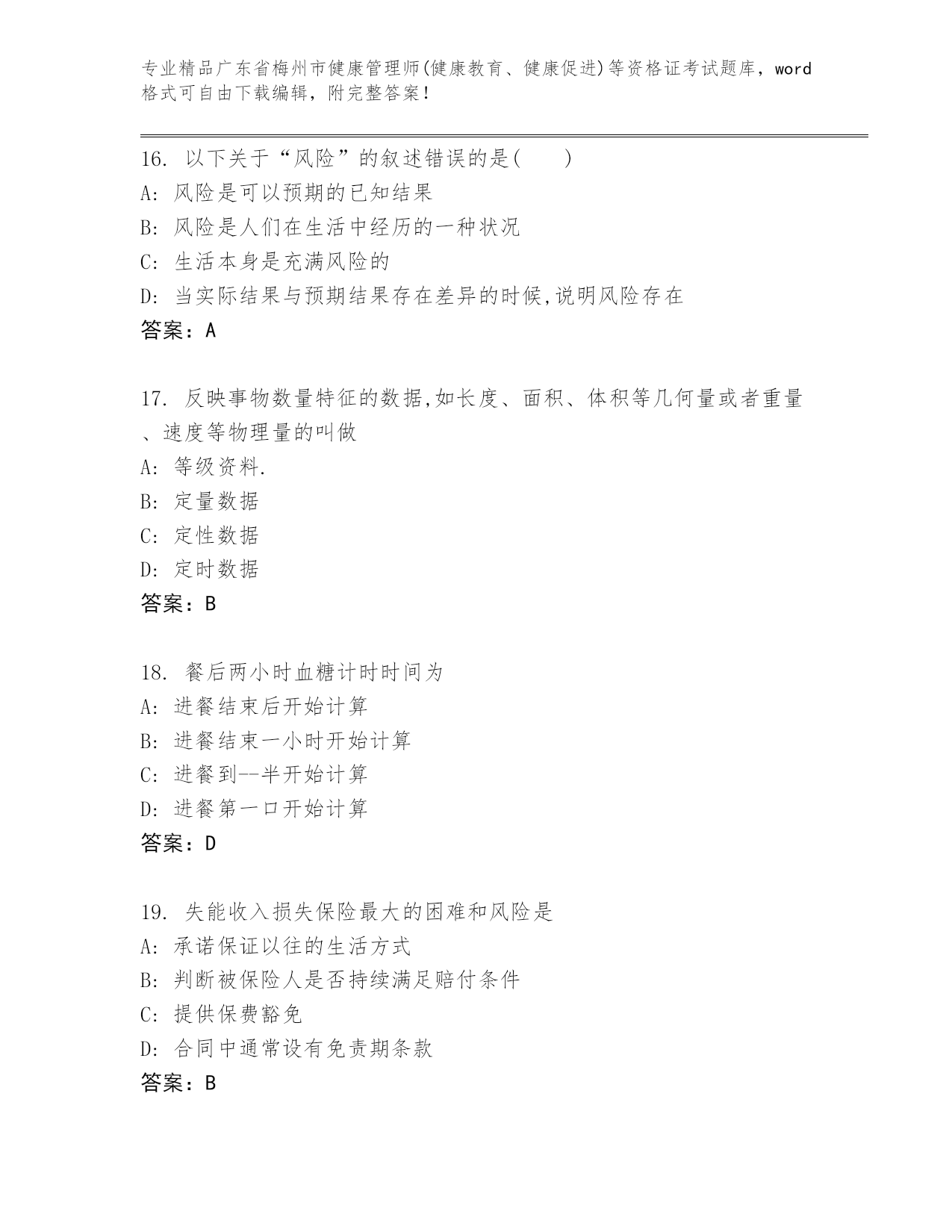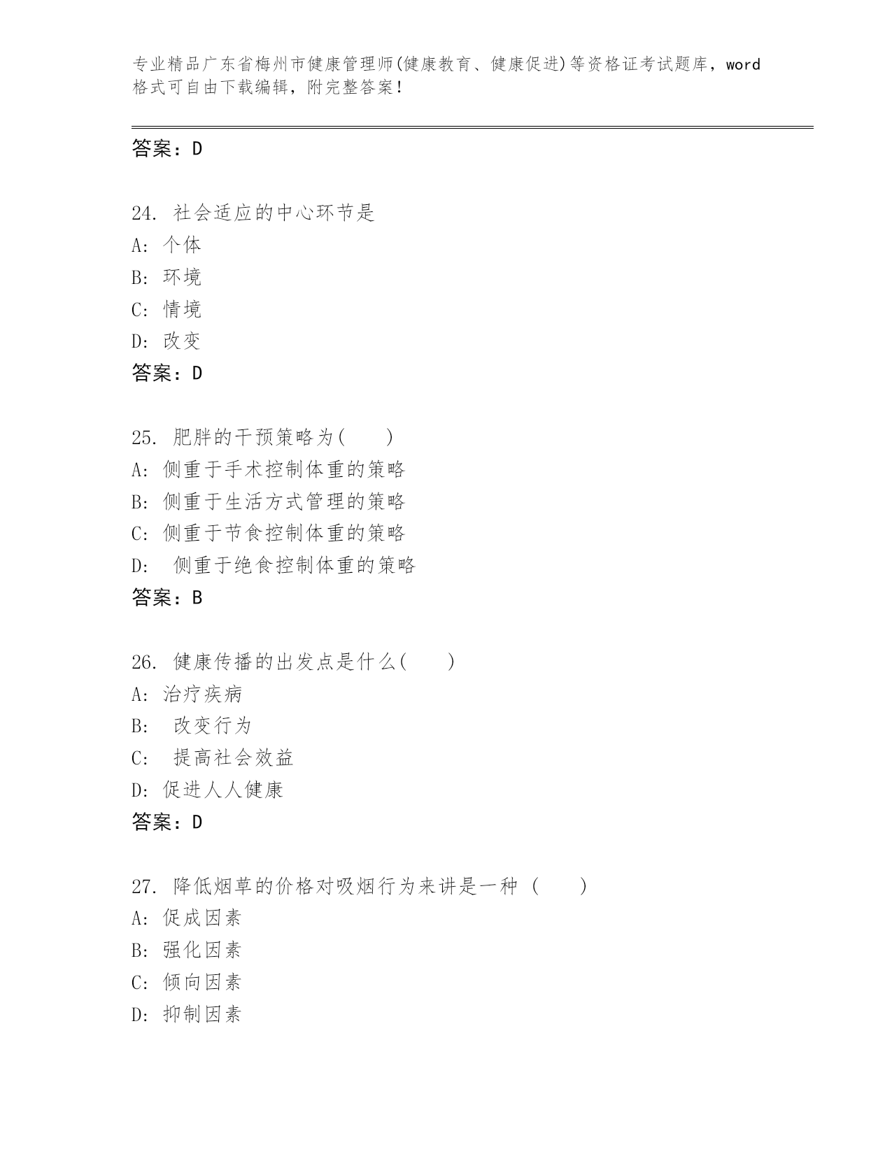 优选广东省梅州市健康管理师(健康教育、健康促进)等资格证考试通用题库及精品答案.docx