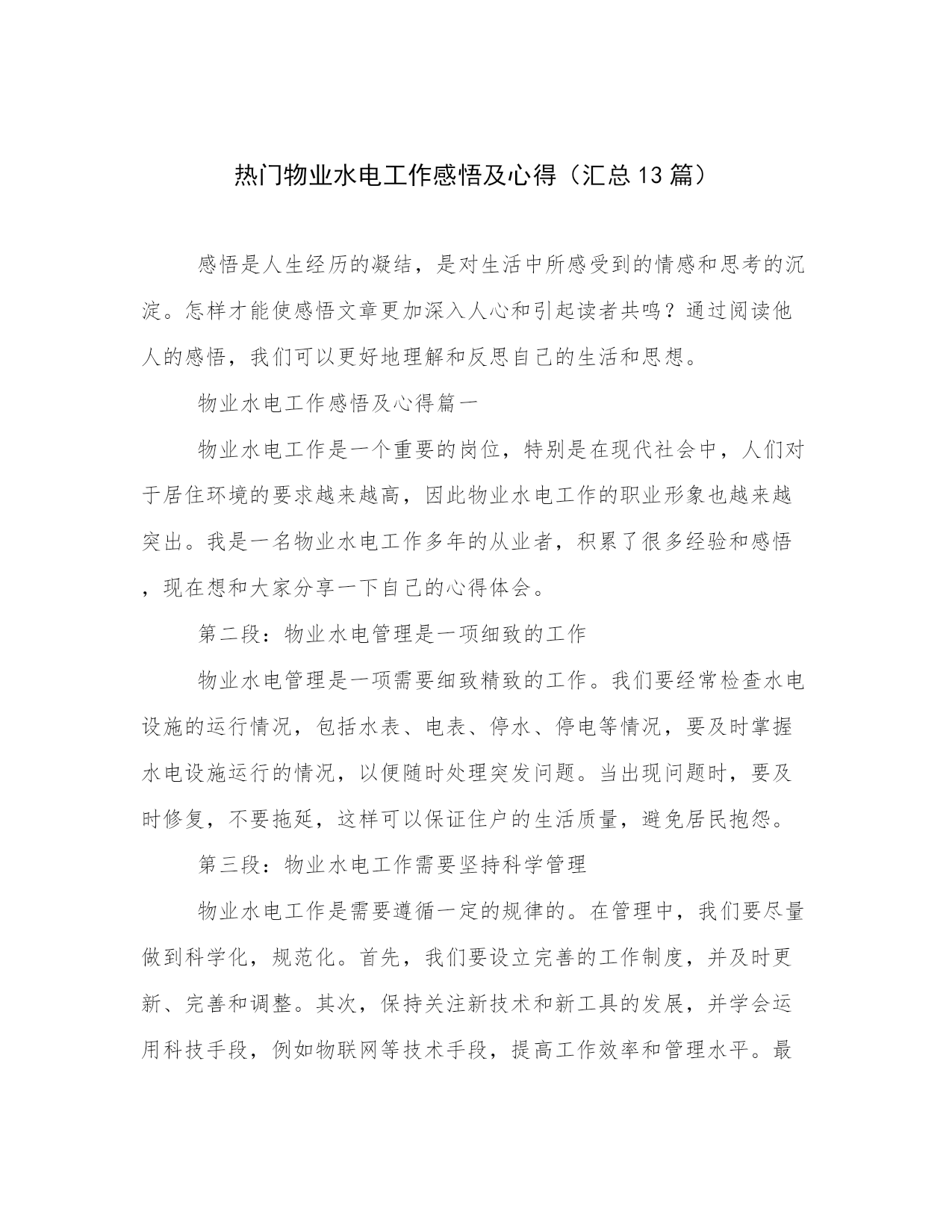 热门物业水电工作感悟及心得(汇总13篇).docx