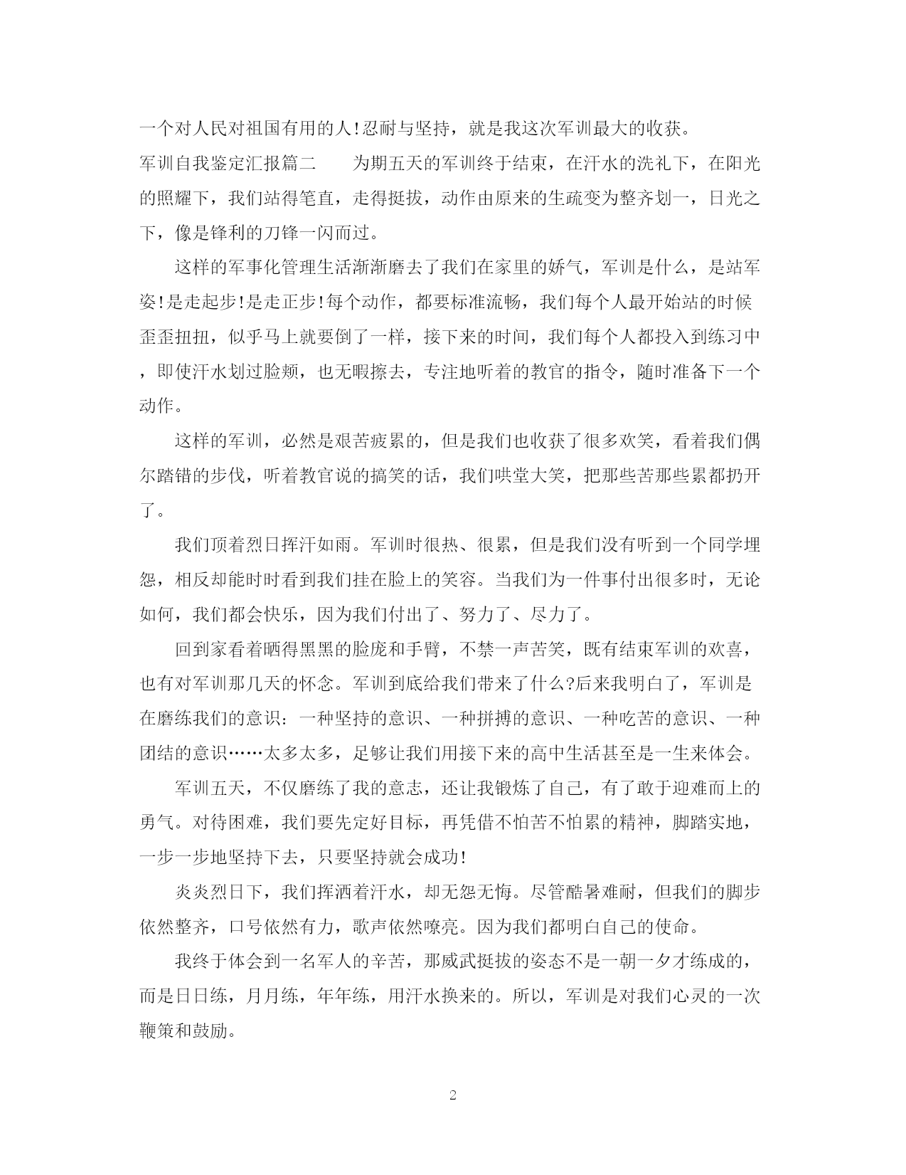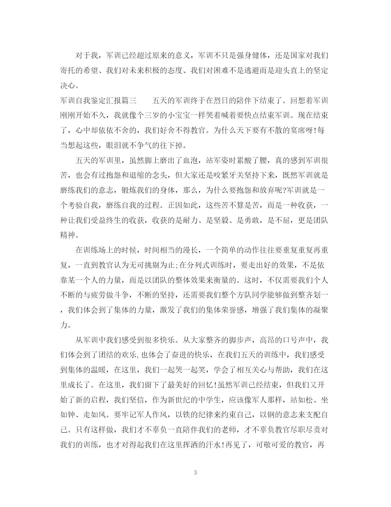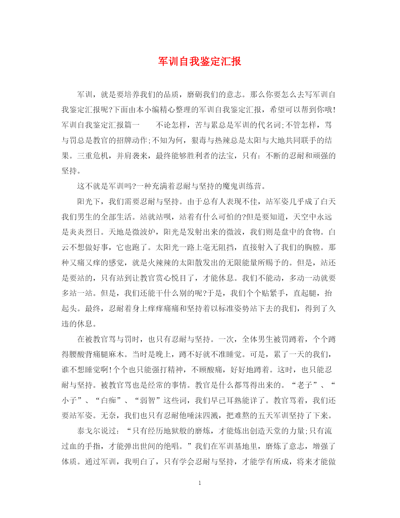 此资料由网络收集而来,如有侵权请告知上传者立即删除。资料共分享,我们负责传递知识。PAGEPAGE4军训自我鉴定汇报军训,就是要培养我们的品质,磨砺我们的意志。那么你要怎么去写军训自我鉴定汇报呢?下面由本小编精心整理的军训自我鉴定汇报,希望可以帮到你哦!军训自我鉴定汇报篇一不论怎样,苦与累总是军训的代名词;不管怎样,骂与罚总是教官的招牌动作;不知为何,狠毒与热辣总是太阳与大地共同联手的结果。三重危机,并肩袭来,最终能够胜利者的法宝,只有:不断的忍耐和顽强的坚持。这不就是军训吗?一种充满着忍耐与坚持的魔鬼训练营。阳光下,我们需要忍耐与坚持。由于总有人表现不佳,站军姿几乎成了白天我们男生的全部生活。站就站呗,站着有什么可怕的?但是要知道,天空中永远是炎炎烈日。天地是微波炉,阳光是发射出来的微波,我们则是盘中的食物。白云不想做好事,它也跑了。太阳光一路上毫无阻挡,直接射入了我们的胸膛。那种又痛又痒的感觉,就是火辣辣的太阳散发出的无限能量所赐予的。但是,站还是要站的,只有站到让教官赏心悦目了,才能休息。我们不能动,多动一动就要多站一站。但是,我们还能干什么别的呢?于是,我们个个贴紧手,直起腿,抬起头。最终,忍耐着身上痒痒痛痛和坚持着以标准姿势站下去的我们,得到了久违的休息。在被教官骂与罚时,也只有忍耐与坚持。一次,全体男生被罚蹲着,个个蹲得腰酸背痛腿麻木。当时是晚上,蹲不好就不准睡觉。可是,累了一天的我们,谁不想睡觉啊!个个也只能强打精神,不顾酸痛,好好地蹲着。这时,也只能忍耐与坚持。被教官骂也是经常的事情。教官是什么都骂得出来的。“老子”、“小子”、“白痴”、“弱智”这些词,我们早已耳熟能详了。教官骂着,我们还要站军姿。无奈,我们也只有忍耐他唾沫四溅,把难熬的五天军训坚持了下来。泰戈尔说过:“只有经历地狱般的磨炼,才能炼出创造天堂的力量;只有流过血的手指,才能弹出世间的绝唱。”我们在军训基地里,磨炼了意志,增强了体质。通过军训,我明白了,只有学会忍耐与坚持,才能学有所成,将来才能做一个对人民对祖国有用的人!忍耐与坚持,就是我这次军训最大的收获。军训自我鉴定汇报篇二为期五天的军训终于结束,在汗水的洗礼下,在阳光的照耀下,我们站得笔直,走得挺拔,动作由原来的生疏变为整齐划一,日光之下,像是锋利的刀锋一闪而过。这样的军事化管理生活渐渐磨去了我们在家里的娇气,军训是什么,是站军姿!是走起步!是走正步!每个动作,都要标准流畅,我们每个人最开始站的时候歪歪扭扭,似乎马上就要倒了一样,接下来的时间,我们每个人都投入到练习中,即使汗水划过脸颊,也无暇擦去,专注地听着的教官的指令,随时准备下一个动作。这样的军训,必然是艰苦疲累的,但是我们也收获了很多欢笑,看着我们偶尔踏错的步伐,听着教官说的搞笑的话,我们哄堂大笑,把那些苦那些累都扔开了。我们顶着烈日挥汗如雨。军训时很热、很累,但是我们没有听到一个同学埋怨,相反却能时时看到我们挂在脸上的笑容。当我们为一件事付出很多时,无论如何,我们都会快乐,因为我们付出了、努力了、尽力了。回到家看着晒得黑黑的脸庞和手臂,不禁一声苦笑,既有结束军训的欢喜,也有对军训那几天的怀念。军训到底给我们带来了什么?后来我明白了,军训是在磨练我们的意识:一种坚持的意识、一种拼搏的意识、一种吃苦的意识、一种团结的意识……太多太多,足够让我们用接下来的高中生活甚至是一生来体会。军训五天,不仅磨练了我的意志,还让我锻炼了自己,有了敢于迎难而上的勇气。对待困难,我们要先定好目标,再凭借不怕苦不怕累的精神,脚踏实地,一步一步地坚持下去,只要坚持就会成功!炎炎烈日下,我们挥洒着汗水,却无怨无悔。尽管酷暑难耐,但我们的脚步依然整齐,口号依然有力,歌声依然嘹亮。因为我们都明白自己的使命。我终于体会到一名军人的辛苦,那威武挺拔的姿态不是一朝一夕才练成的,而是日日练,月月练,年年练,用汗水换来的。所以,军训是对我们心灵的一次鞭策和鼓励。对于我,军训已经超过原来的意义,军训不只是强身健体,还是国家对我们寄托的希望、我们对未来积极的态度、我们对困难不是逃避而是迎头直上的坚定决心。军训自我鉴定汇报篇三五天的军训终于在烈日的陪伴下结束了。回想着军训刚刚开始不久,我就像个三岁的小宝宝一样哭着喊着要快点结束军训。现在结束了,心中却依依不舍的,我们好舍不得教官。为什么天下要有不散的宴席呀!每当想起这些,眼泪就不争气的往下掉。五天的军训里,虽然脚上磨出了血泡,站军姿时累酸了腰,真的感到军训很苦,也会有过抱怨和退缩的念头,但大家还是咬紧牙关坚持下来,既然军训就是磨练我们的意志,锻炼我们的身体,那么,为什么要抱怨和放弃呢?军训就是一个考验自我,磨练自我的过程。正因如此,这些苦不算是苦,而是一种收获,一种让我们受益终