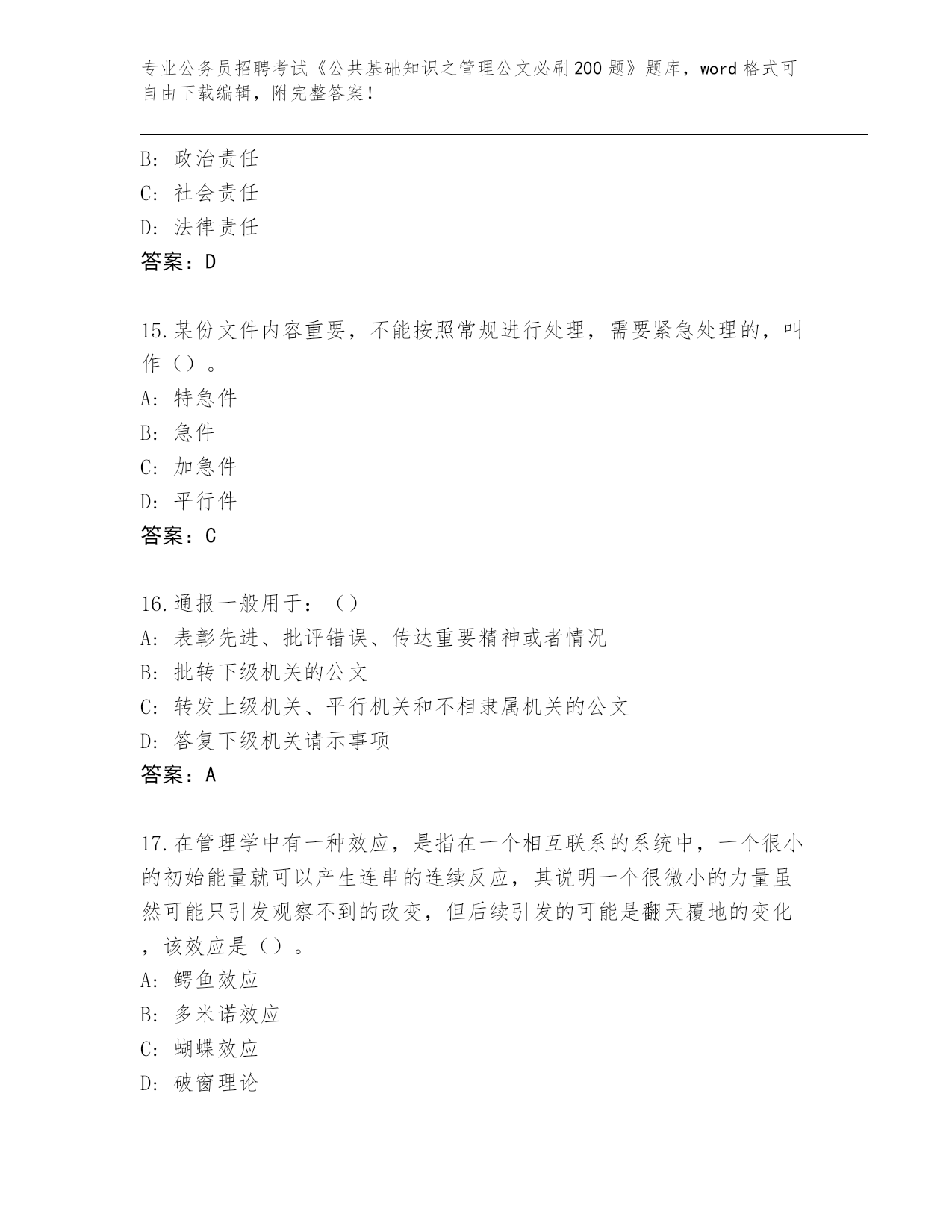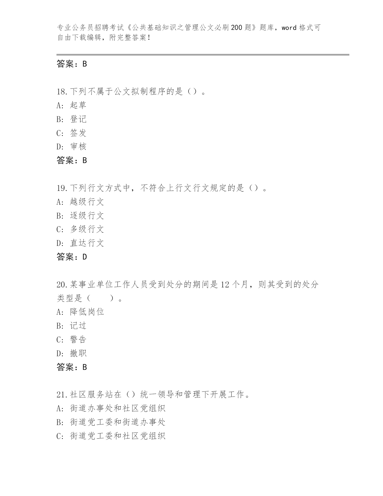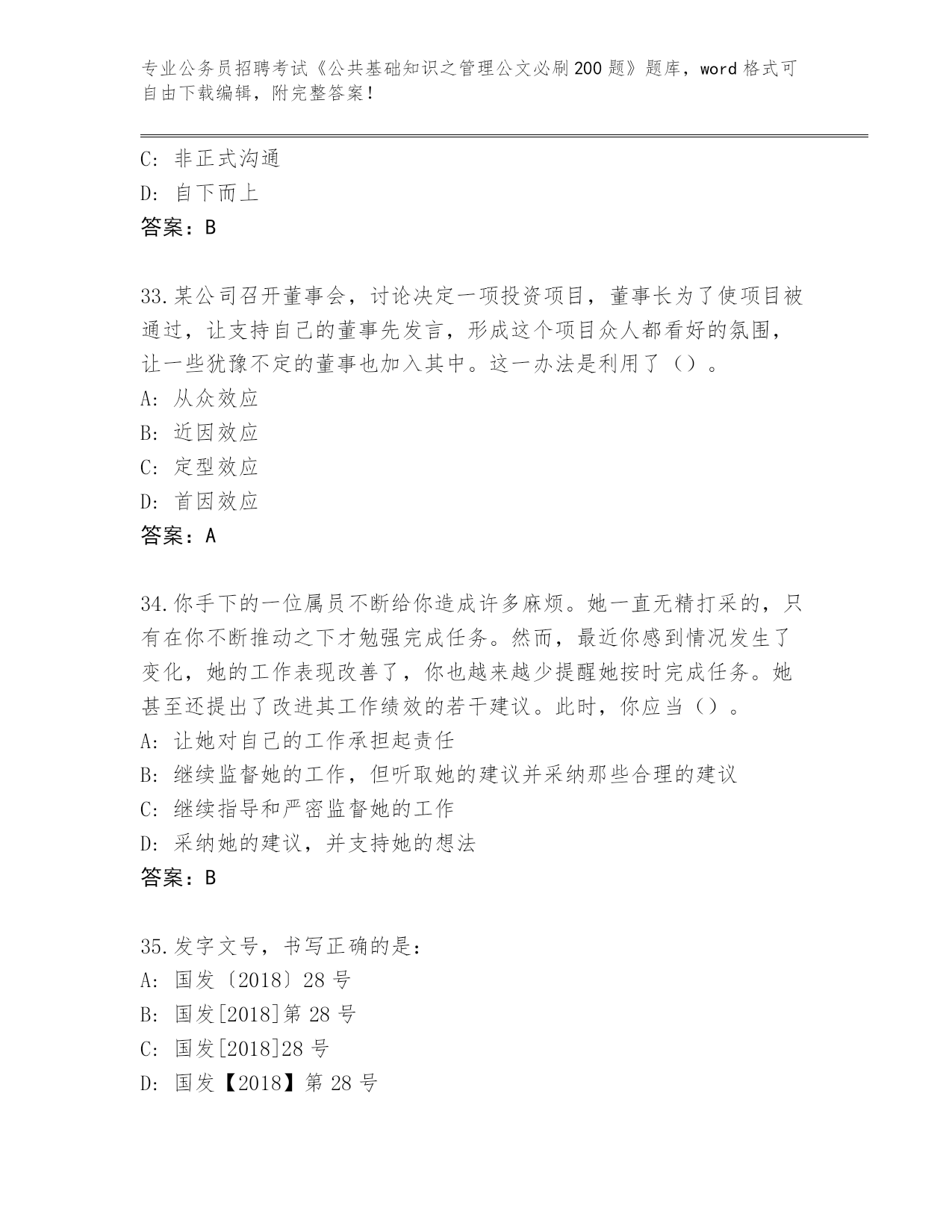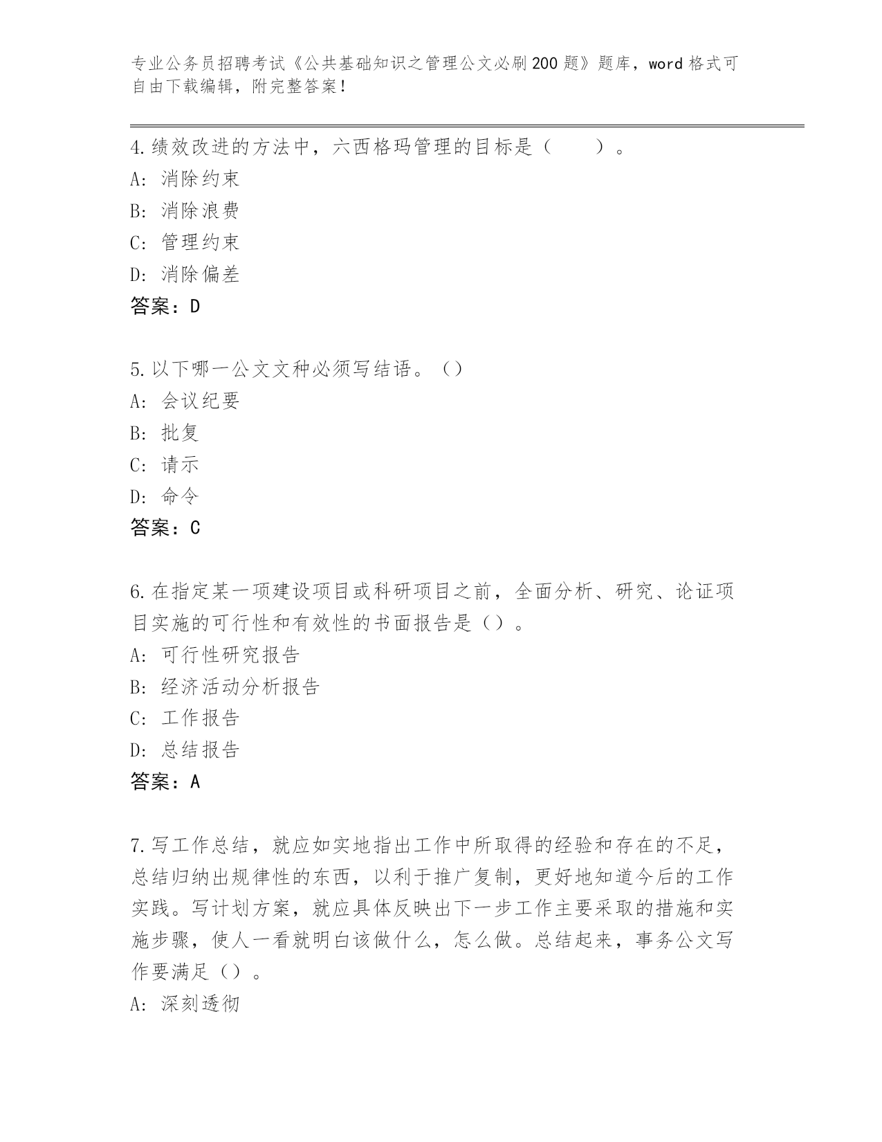 历年云南省会泽县公务员招聘考试《公共基础知识之管理公文必刷200题》完整版(A卷)