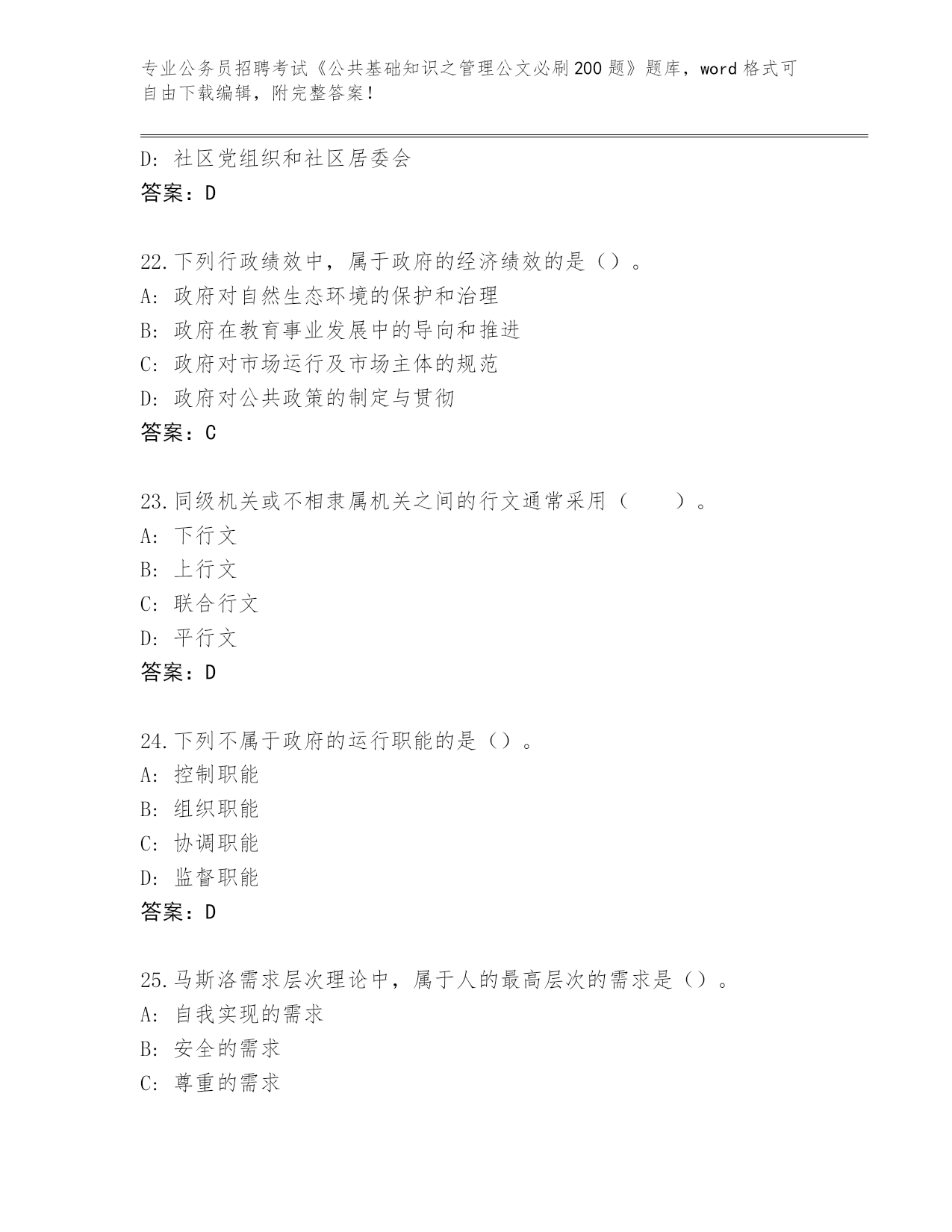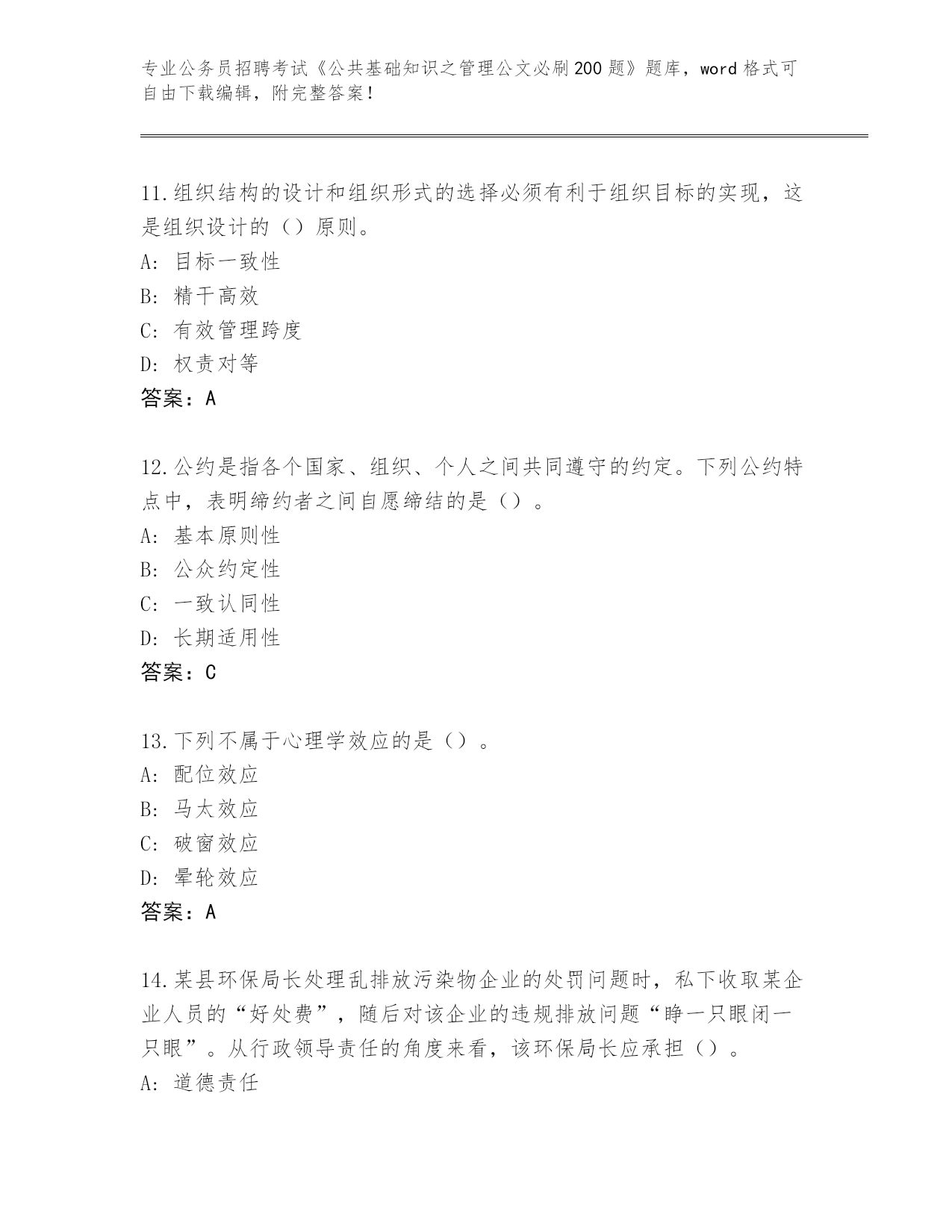历年云南省会泽县公务员招聘考试《公共基础知识之管理公文必刷200题》完整版(A卷).docx