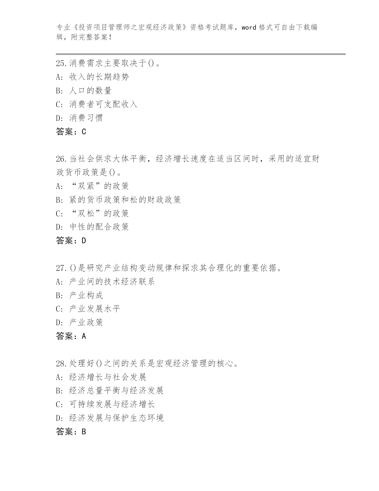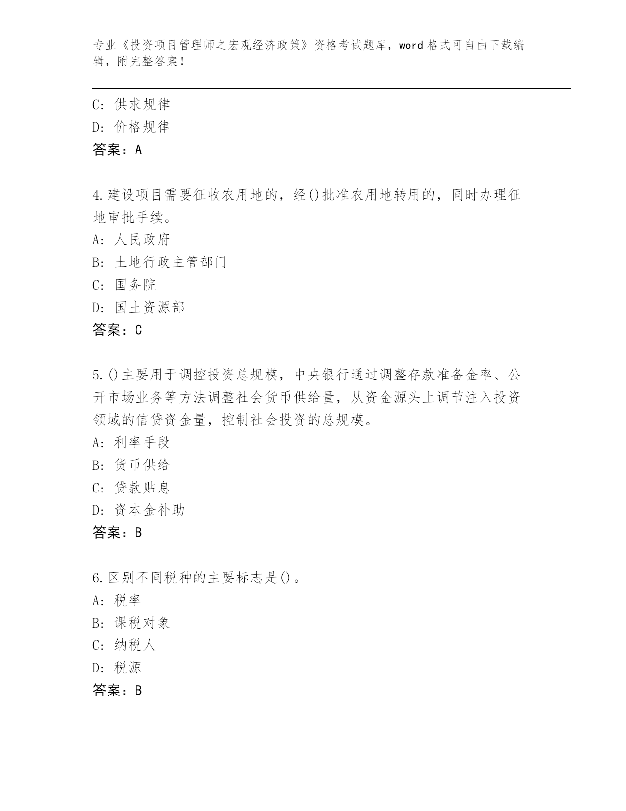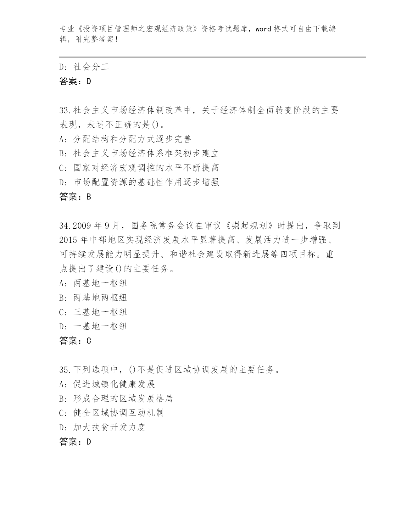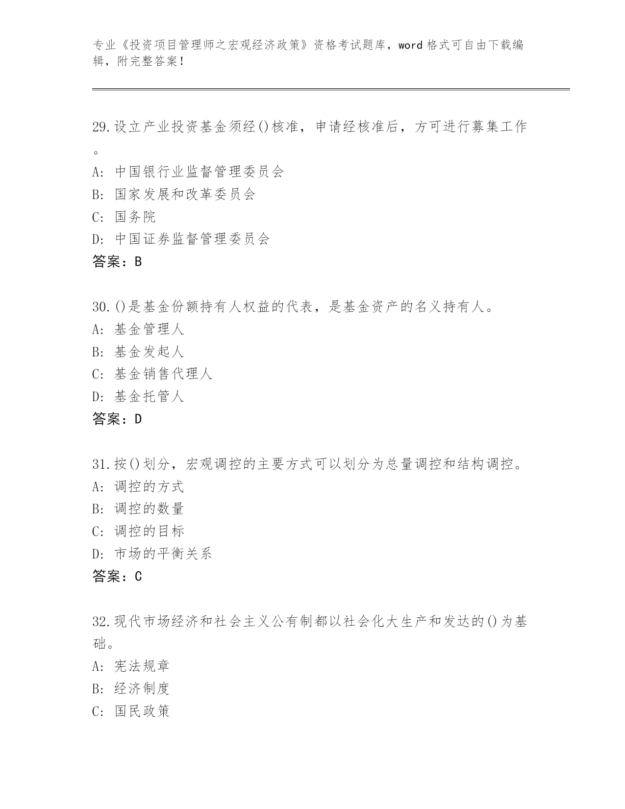 2024年江苏省沭阳县《投资项目管理师之宏观经济政策》资格考试完整题库及答案(典优)