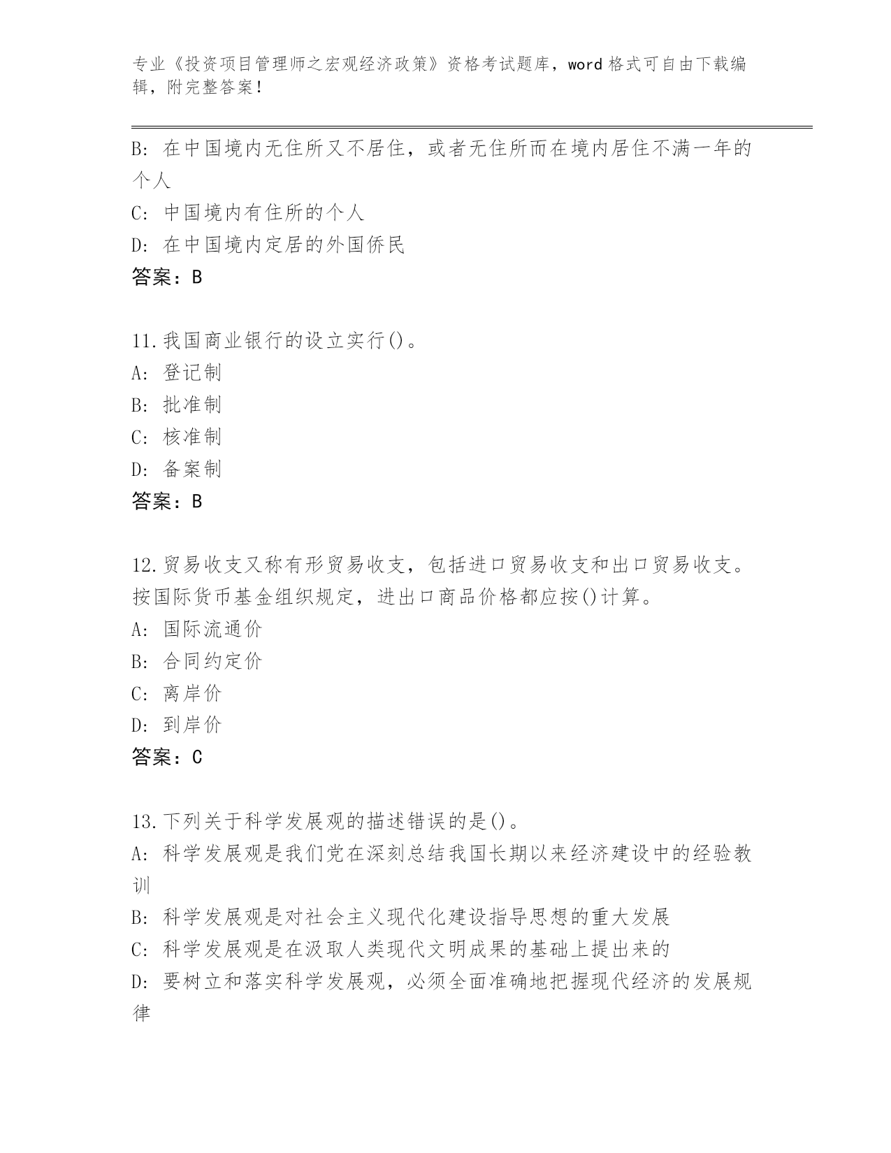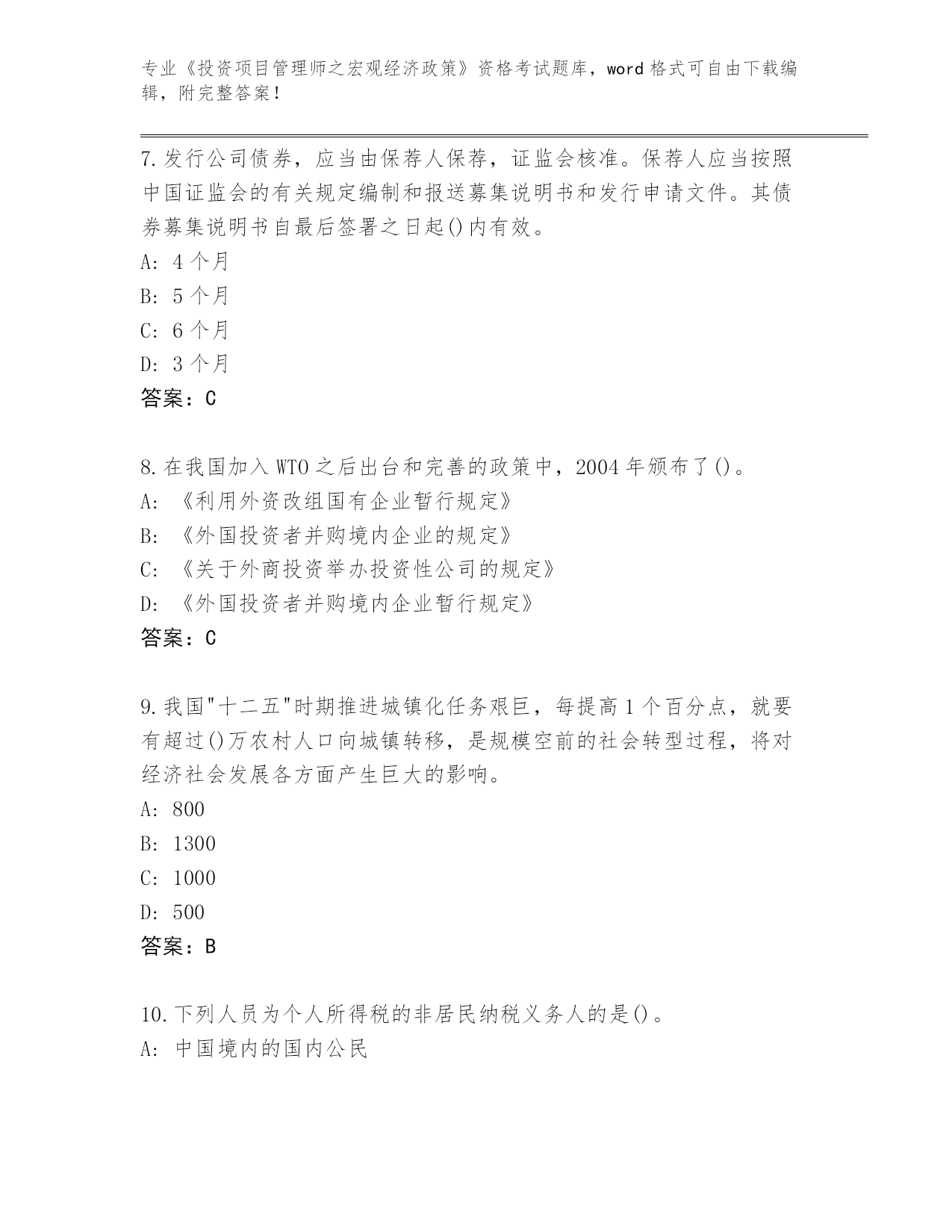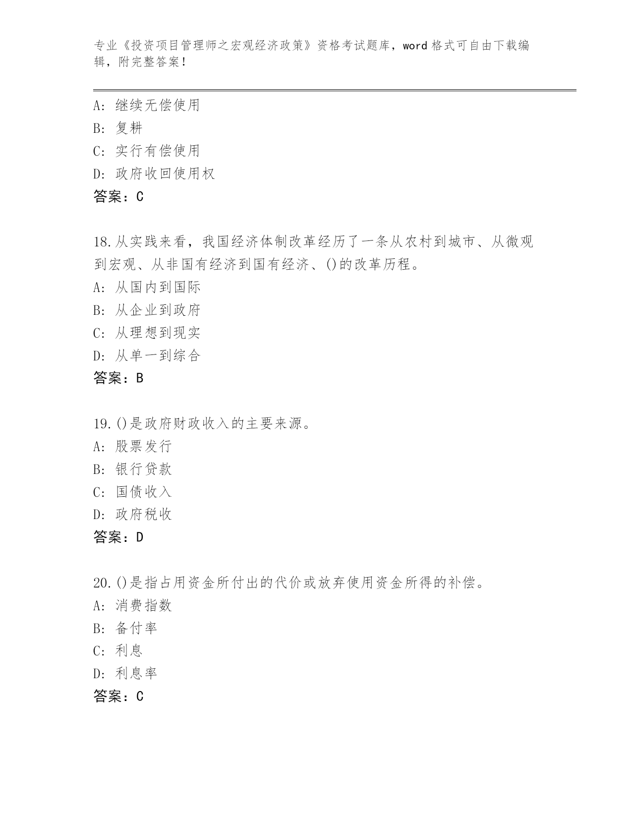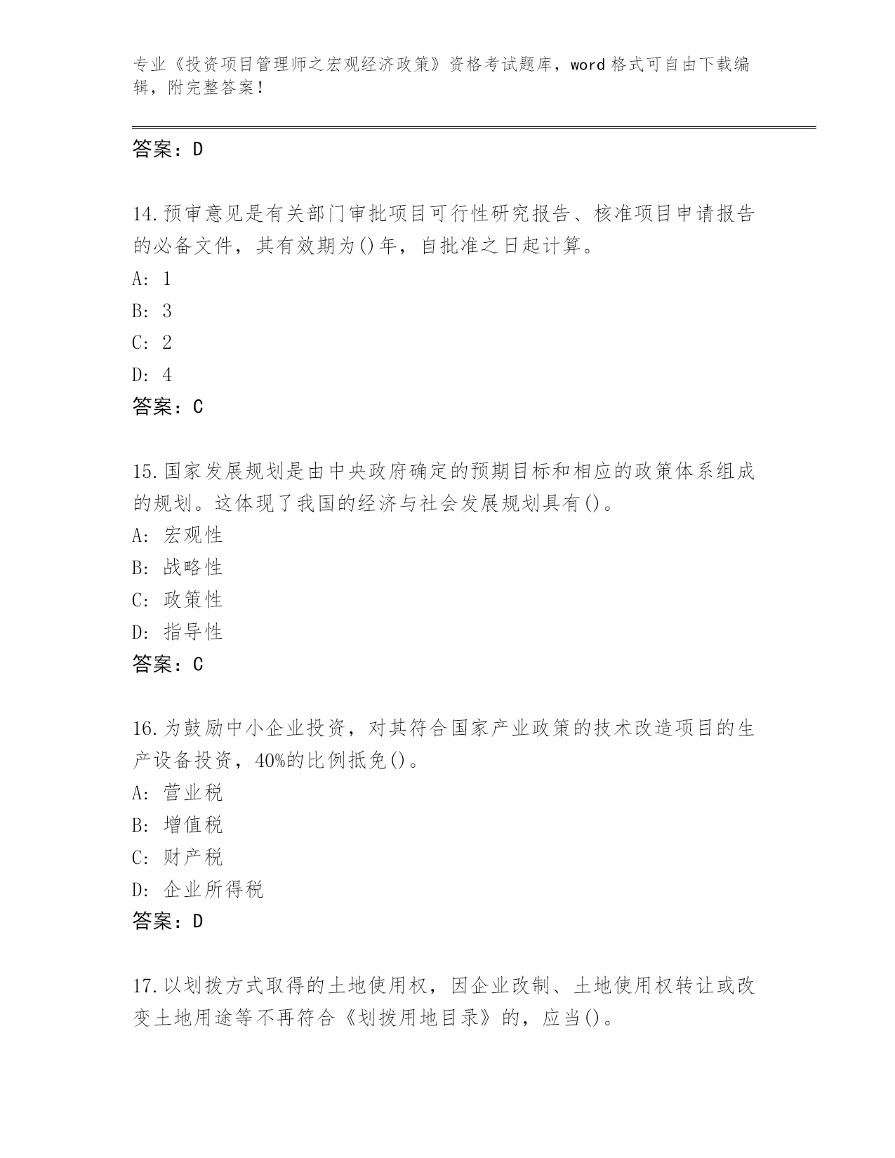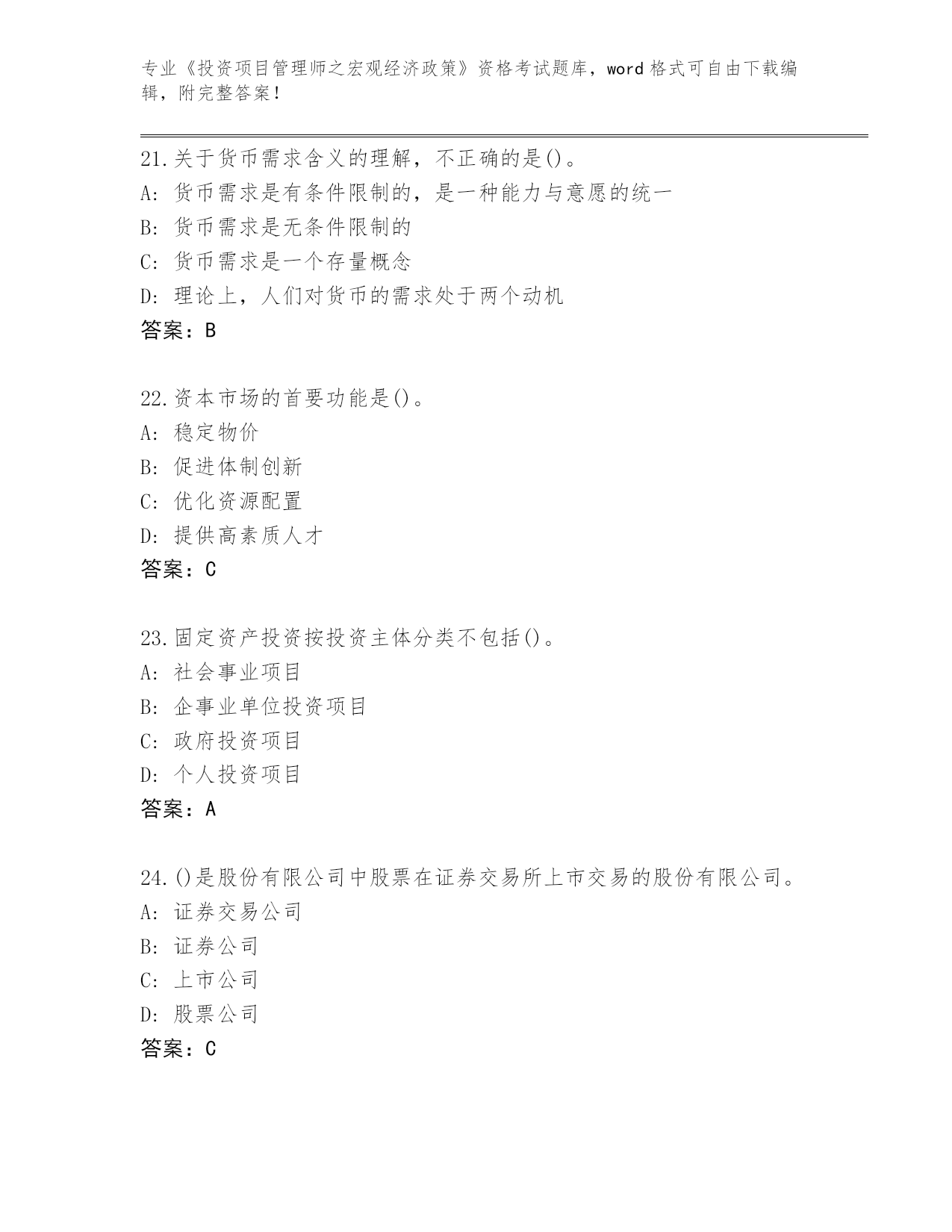 2024年江苏省沭阳县《投资项目管理师之宏观经济政策》资格考试完整题库及答案(典优)