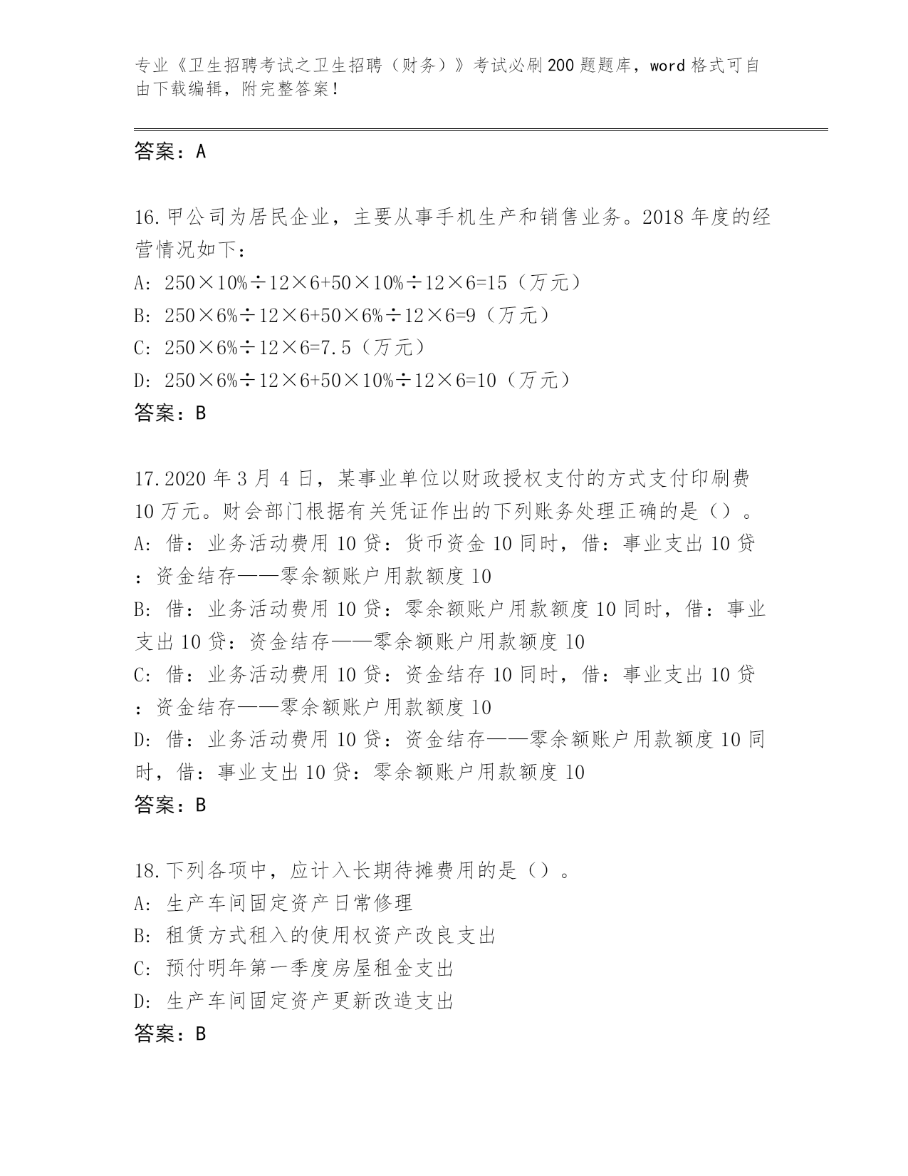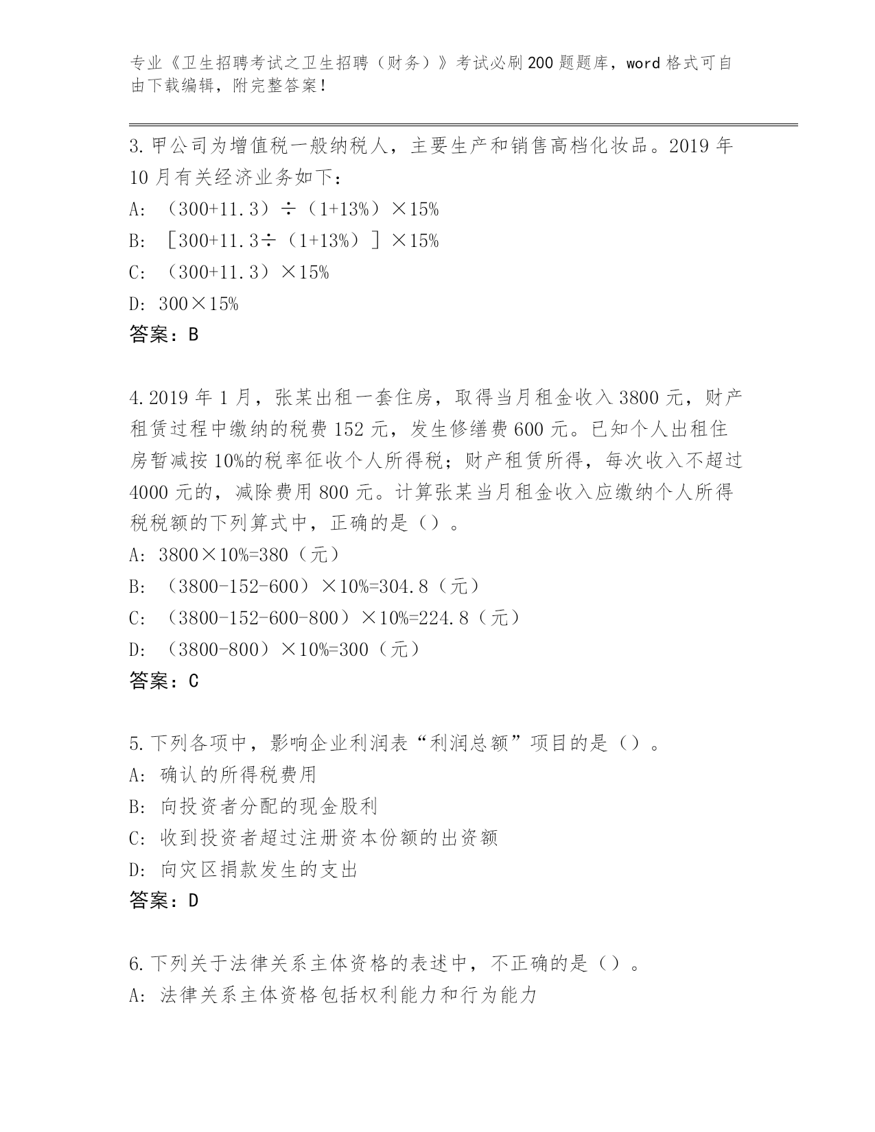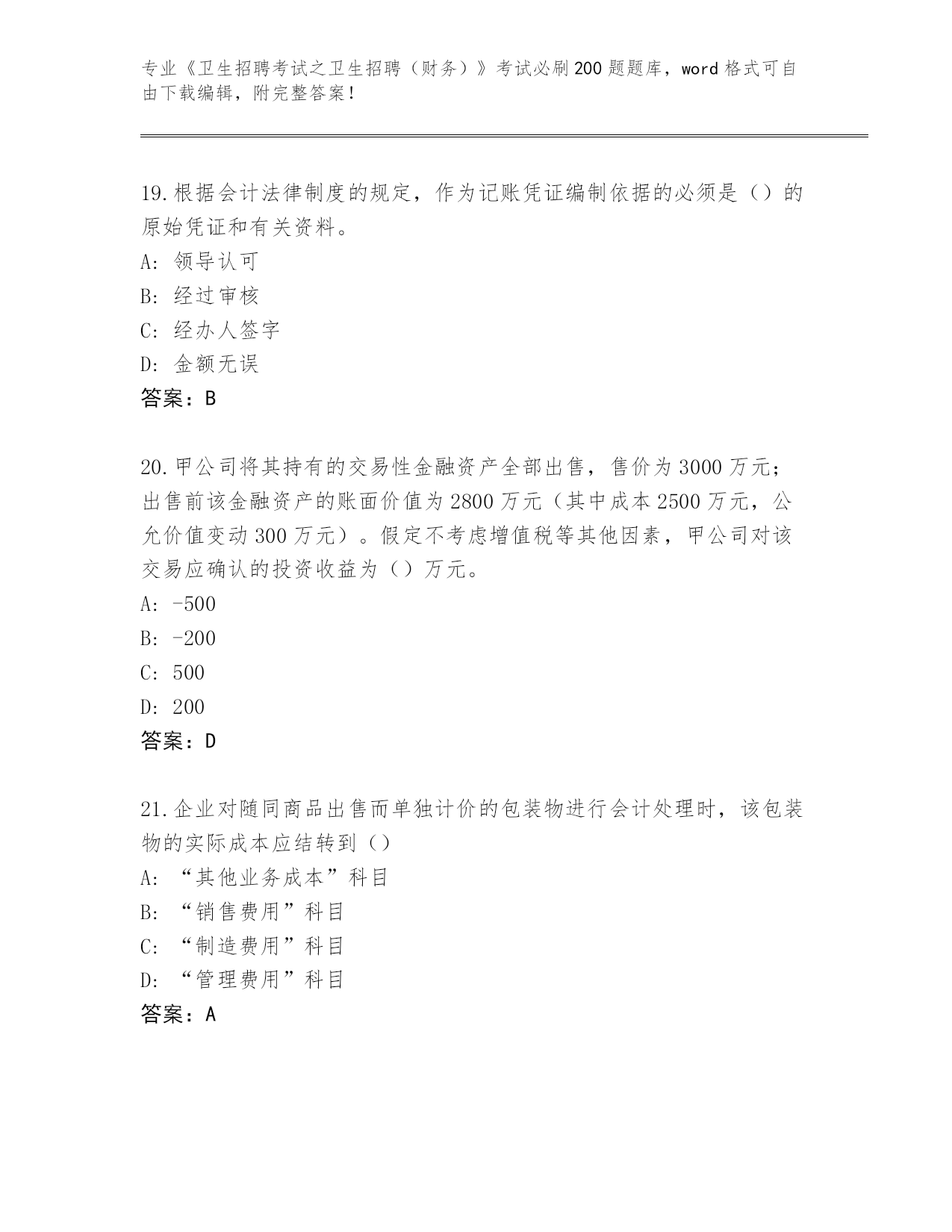 山西省蒲县整理《卫生招聘考试之卫生招聘(财务)》资格考试必刷200题真题A4版可打印