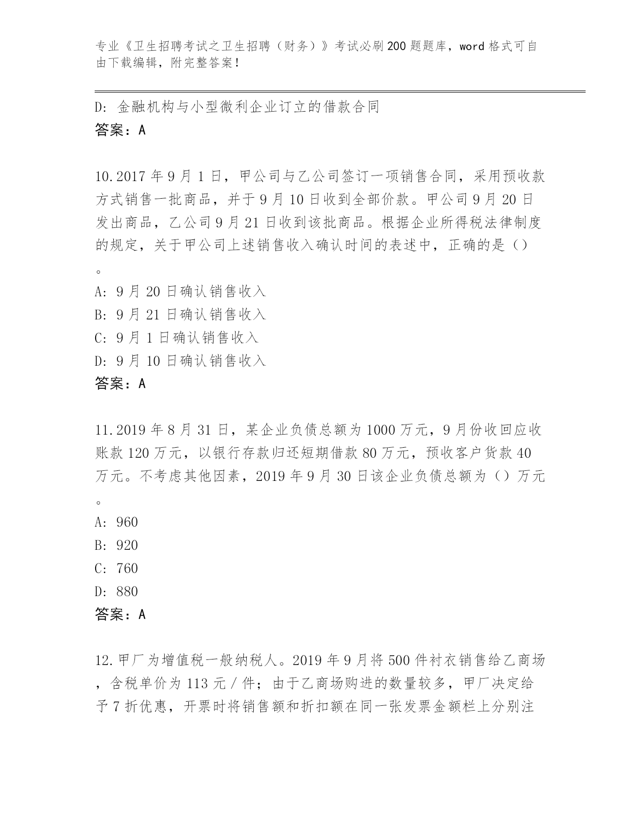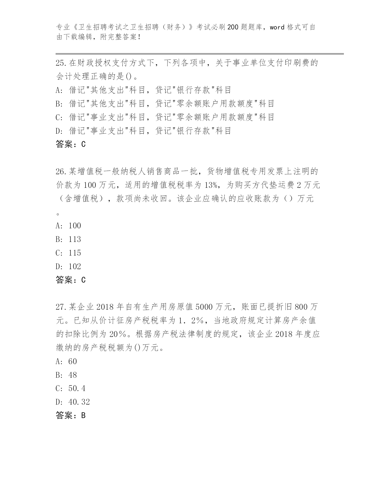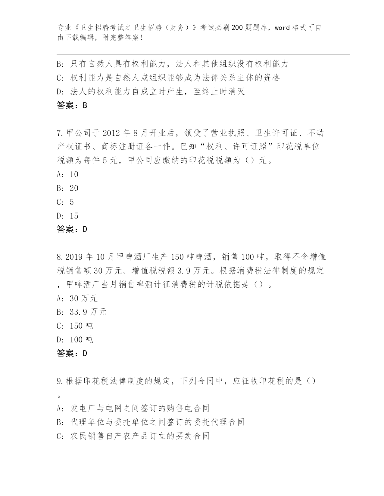 山西省蒲县整理《卫生招聘考试之卫生招聘(财务)》资格考试必刷200题真题A4版可打印