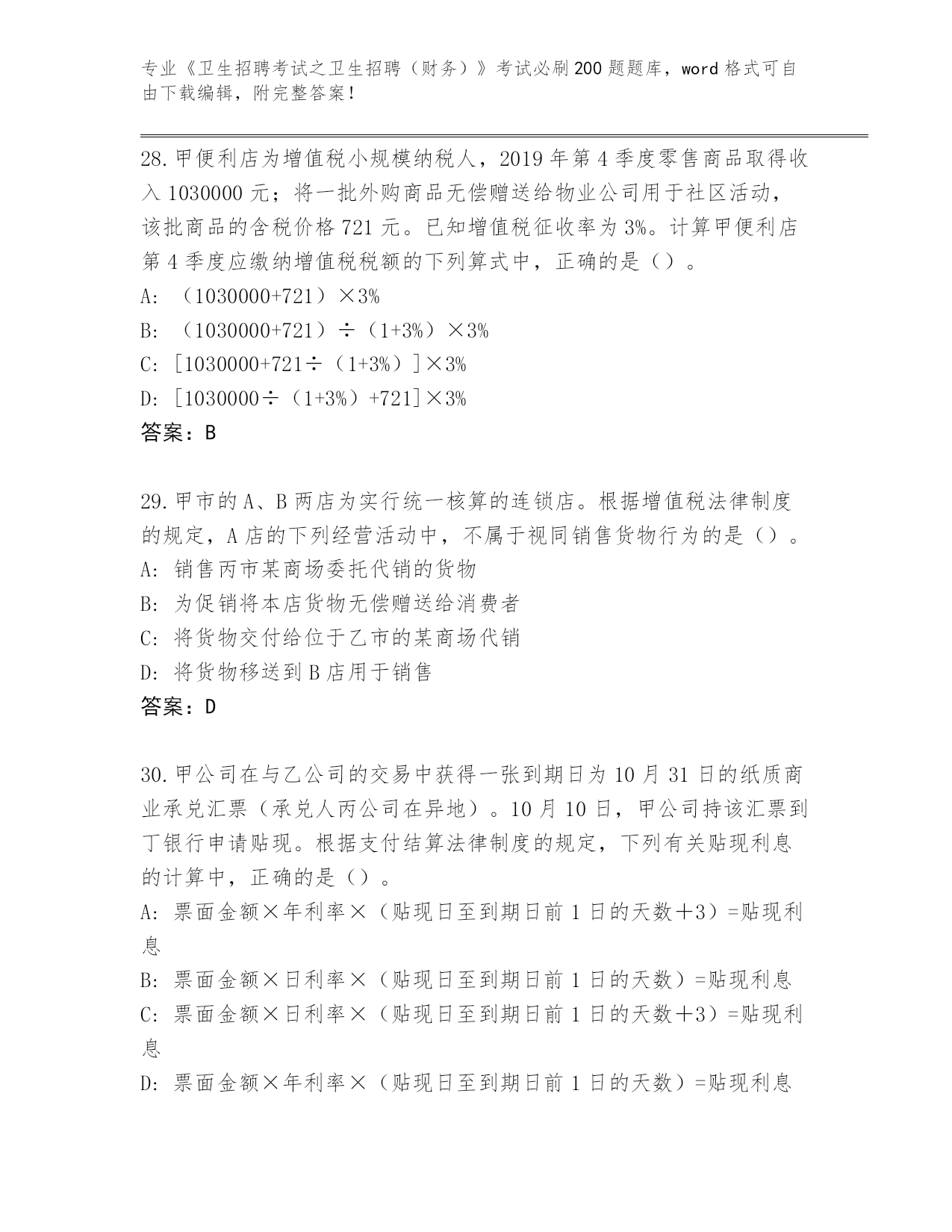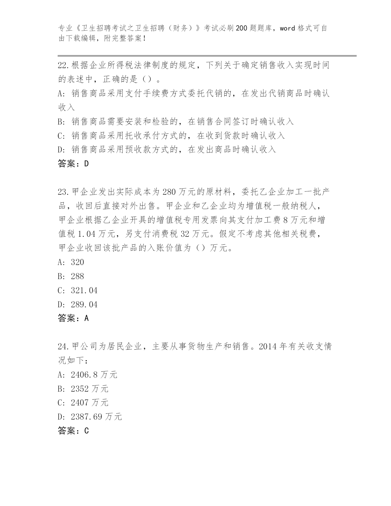 2024河南省温县《卫生招聘考试之卫生招聘(财务)》资格考试必刷200题真题a4版可打印