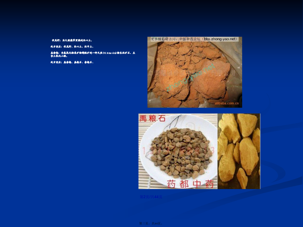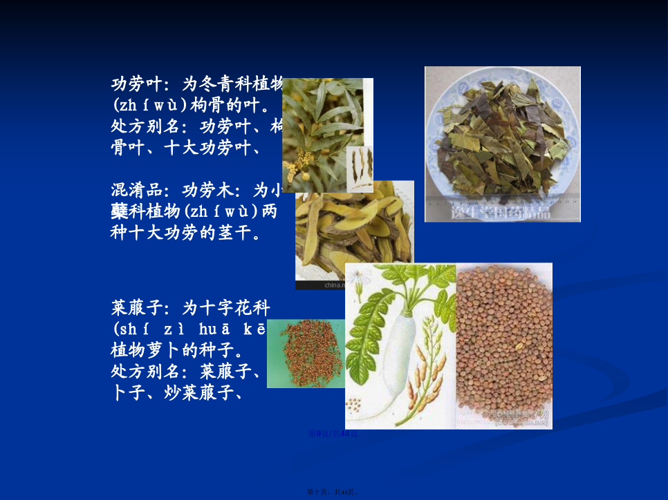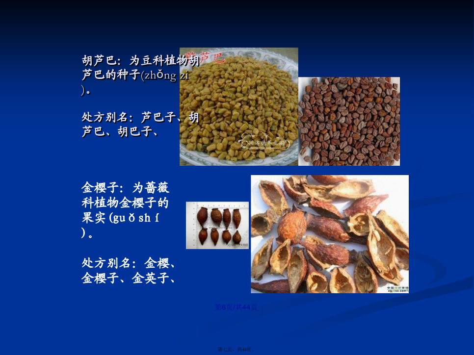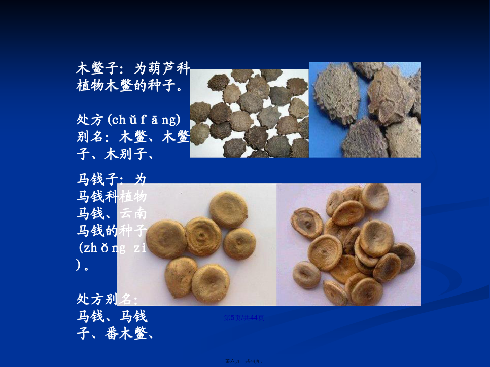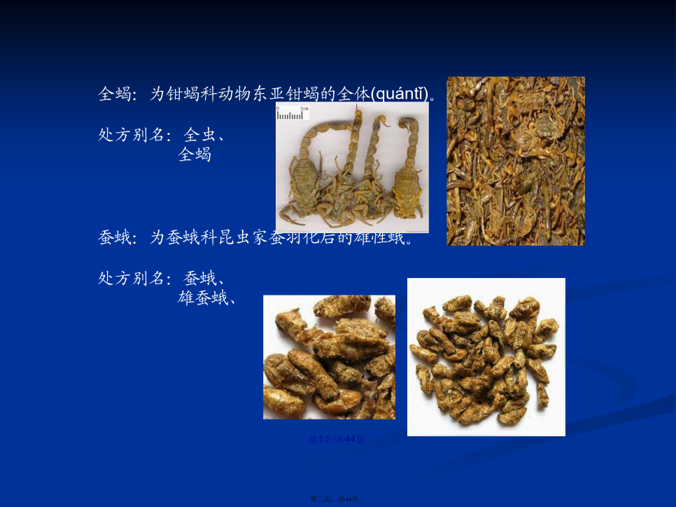 会计学全蝎:为钳蝎科动物东亚钳蝎的全体(quántǐ)。处方别名:全虫、全蝎蚕蛾:为蚕蛾科昆虫家蚕羽化后的雄性蛾。处方别名:蚕蛾、雄蚕蛾、伏龙肝:为久经柴草熏烧的灶心土。处方别名:伏龙肝、灶心土、灶中土、禹余粮:为氢氧化物类矿物褐铁矿的一种天然(tiānrán)粉末状矿石。主含三氧化二铁。处方别名:禹余粮、禹粮石、余粮石、五味子:为木兰科植物五味子的果实(guǒshí)。处方别名:五味、五味子、辽五味、北五味、牵牛子、牛蒡子木鳖子:为葫芦科植物木鳖的种子。处方(chǔfāng)别名:木鳖、木鳖子、木别子、胡芦巴:为豆科植物胡芦巴的种子(zhǒngzi)。处方别名:芦巴子、胡芦巴、胡巴子、补骨脂:为豆科植物补骨脂的果实。处方(chǔfāng)别名:补骨脂、怀故子、故脂、破故子、破故纸、木蝴蝶:为紫葳科植物木蝴蝶的种子。处方(chǔfāng)别名:木蝴蝶、玉蝴蝶、云故子、洋故纸、千层纸、千张纸、川楝子为楝科植物川楝的干燥成熟果实。冬季果实成熟时采收,除去杂质,干燥处方别名(biémíng):川楝子金铃子、苦楝子、川楝实功劳叶:为冬青科植物(zhíwù)枸骨的叶。处方别名:功劳叶、枸骨叶、十大功劳叶、混淆品:功劳木:为小蘗科植物(zhíwù)两种十大功劳的茎干。凤眼草:为苦木科植物臭椿的果实。处方别名:臭椿子、凤眼子酸枣仁:为鼠李科植物酸枣的种子(zhǒngzi)。处方别名:枣仁、酸枣仁、地肤子:为藜科植物地肤的果实。处方(chǔfāng)别名:地肤子、扫帚子、急性子:为凤仙花科植物凤仙花的种子。处方(chǔfāng)别名:急性子、凤仙子、砂仁:为姜科植物阳春砂、绿壳砂、海南砂的果实(guǒshí)。处方别名:砂仁、阳春砂、绿壳砂、海南砂薏苡仁:为禾本科植物薏苡的种仁。处方别名:薏米、薏仁、薏苡仁、芡实:为睡莲科植物芡的种仁。处方(chǔfāng)别名:芡实、苏芡实、桂圆肉:为无患子科植物龙眼的假种皮。处方(chǔfāng)别名:元肉、桂圆肉、龙眼、龙眼肉、大皂角:为豆科植物皂荚的果实(guǒshí)。。处方别名:大皂角、皂荚、其不育果称“猪牙皂”青果:为橄榄科植物橄榄的果实。处方(chǔfāng)别名:青果、青橄榄混淆品:藏青果:为使君子科植物诃子的幼果。西果、西青果、藏青果白果:为银杏科植物银杏的种子。处方(chǔfāng)别名:白果、银杏、白果仁、橘络:为芸香科橘属多种植物(zhíwù)果皮内的维管束组织。处方别名:橘筋、桔络、橘络、橘丝丝瓜络:为葫芦科植物(zhíwù)丝瓜果实的维管束。处方别名:丝瓜络、丝瓜筋、炒丝瓜络、八角茴香:为木兰科植物(zhíwù)八角茴香的果实。处方别名:大茴、八角、大料、大茴香、八角茴香路路通:为金缕梅科植物(zhíwù)枫香树的果序。别名:枫香果、枫球子、枫树球、六六通、九孔子胖大海:为梧桐科植物胖大海的种子(zhǒngzi)。处方别名:大海、大发、胖大海、钩藤:为茜草科植物多种钩藤的带钩茎枝。处方别名:钩藤、勾丁、大胡麻:为亚麻科植物亚麻的种子。处方(chǔfāng)别名:亚麻、亚麻子、胡麻、胡麻子、大胡麻胡椒:为胡椒科植物胡椒的果实。带果皮的称“黑胡椒”、脱去果皮的称“白胡椒”。处方(chǔfāng)别名:黑胡椒、白胡椒瓜蒌:为葫芦科植物栝楼、双边栝楼的果实(guǒshí)。其全果称“瓜蒌”、“全瓜蒌”。其果皮称“瓜蒌皮”。其种子称“蒌仁”。其根称“天花粉”花椒(huājiāo):为芸香科植物青椒、花椒(huājiāo)的果实。处方别名:青椒、花椒(huājiāo)、川椒、柿蒂:为柿树科植物柿的宿存花萼。处方别名:柿蒂、柿子把香橼(xiāngyuán):为芸香科植物枸橼、香圆的果实。处方别名:香橼(xiāngyuán)槟榔:为棕榈科植物槟榔的种子。处方别名:大腹子、槟榔、玉片通草:为五加科植物通脱木的茎髓。处方别名(biémíng):通草、大通草、混淆品:小通草:为旌(jing)节花科植物喜马山旌节花、中国旌节花或山茱萸科植物青荚叶的茎髓。小通草透骨草:为大戟科植物地构叶的干燥地上(dìshànɡ)部分。药处方用名:透骨草、珍珠透骨草凤仙透骨草:本品为凤仙花科植物凤仙花的干燥茎。处方用名:凤仙透骨草、凤仙草益母草:为唇形科植物益母草的地上部分(bùfen)。处方别名:茺蔚、坤草、茺蔚草、益母草茺蔚子:为唇形科植物益母草的种子。处方别名:茺蔚子、坤草子、益母草子夏枯草:为唇形科植物夏枯草的果穗。处方别名(biémíng):夏枯草、夏枯球、枯草穗地耳草:为藤黄科植物地耳草的全草。处方别名(bié