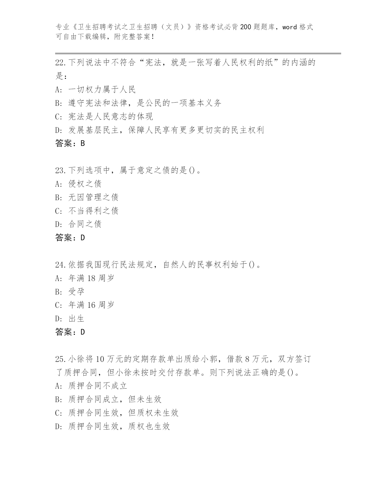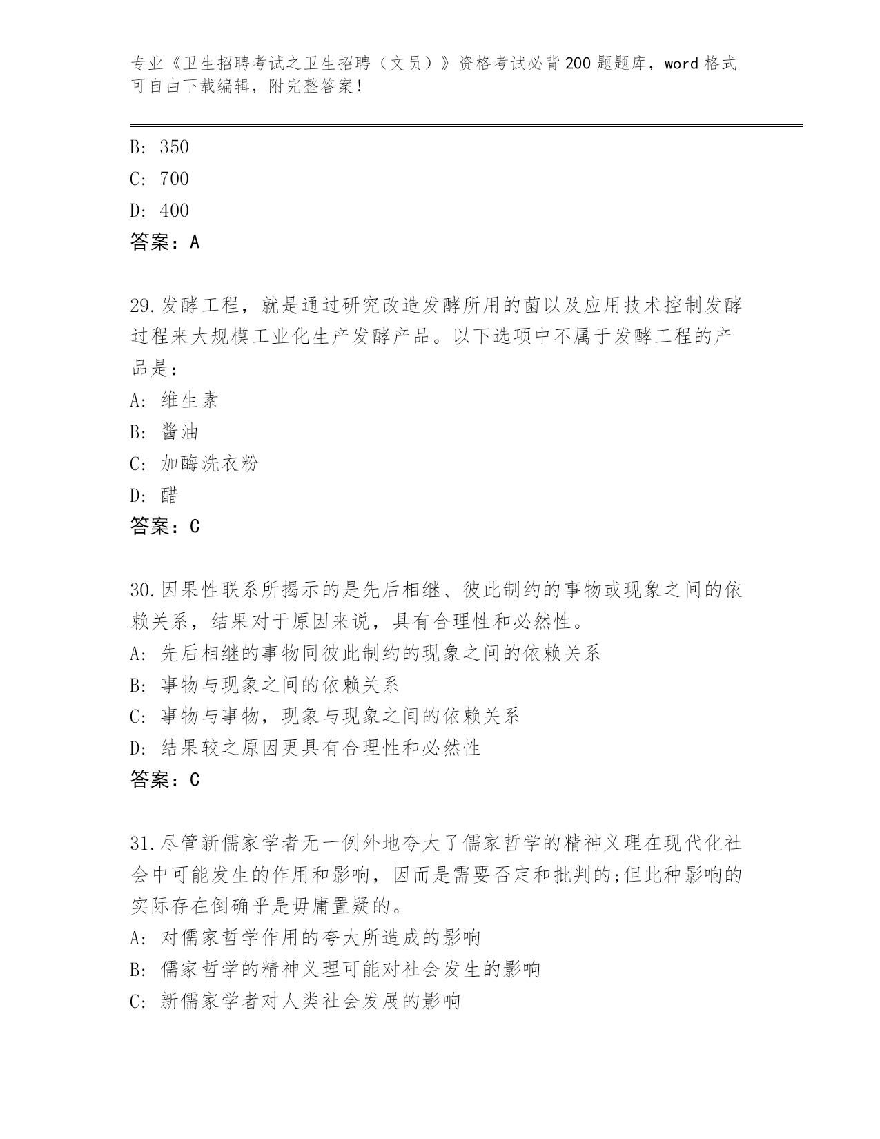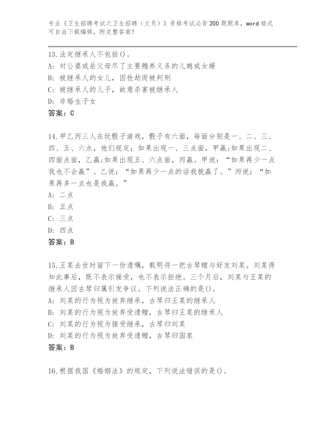 2024安徽省《卫生招聘考试之卫生招聘(文员)》资格考试必背200题大全带答案(突破训练)