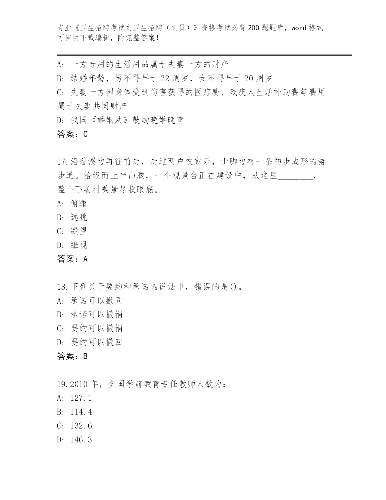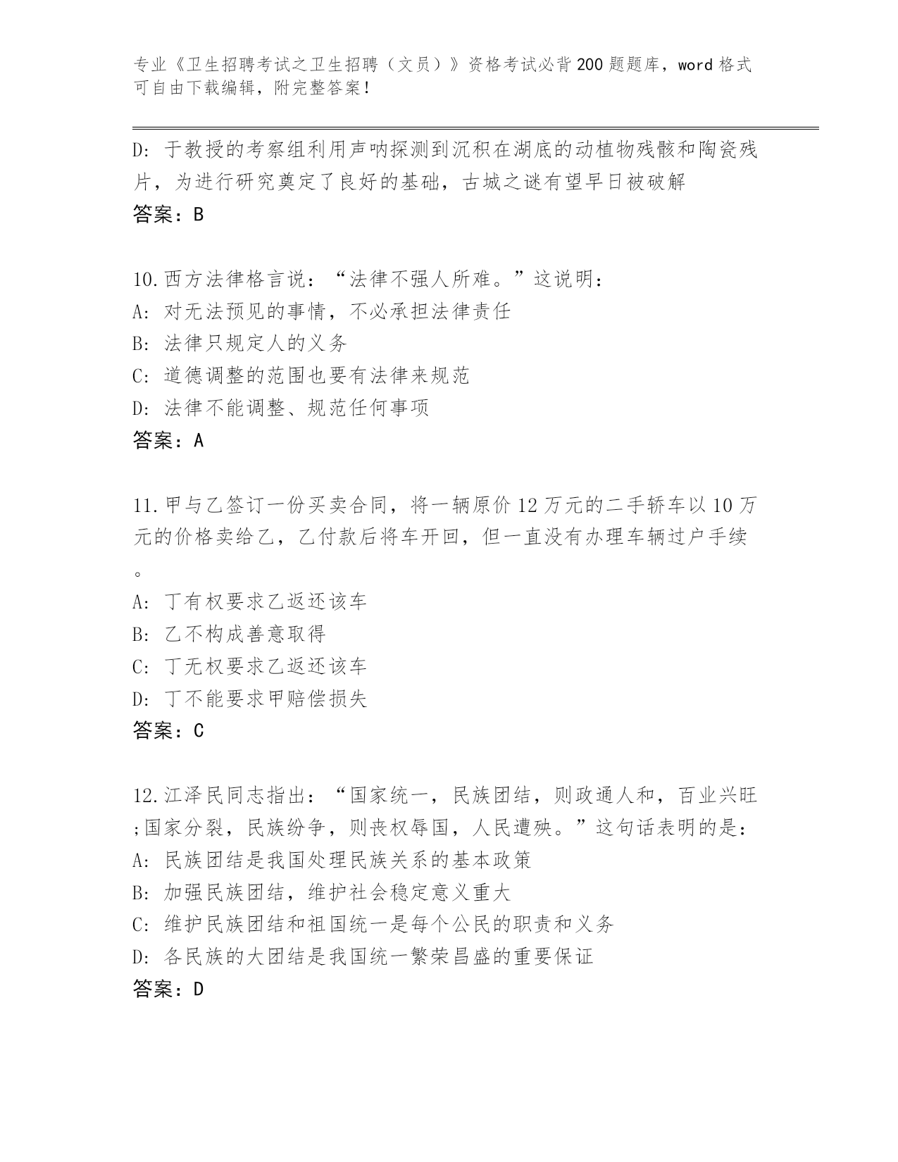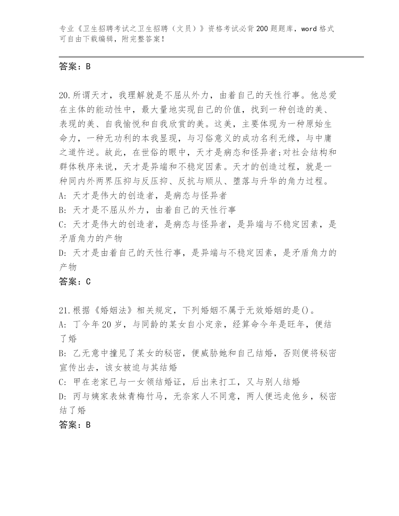 整理湖北省《卫生招聘考试之卫生招聘(文员)》资格考试必背200题大全带答案(突破训练)