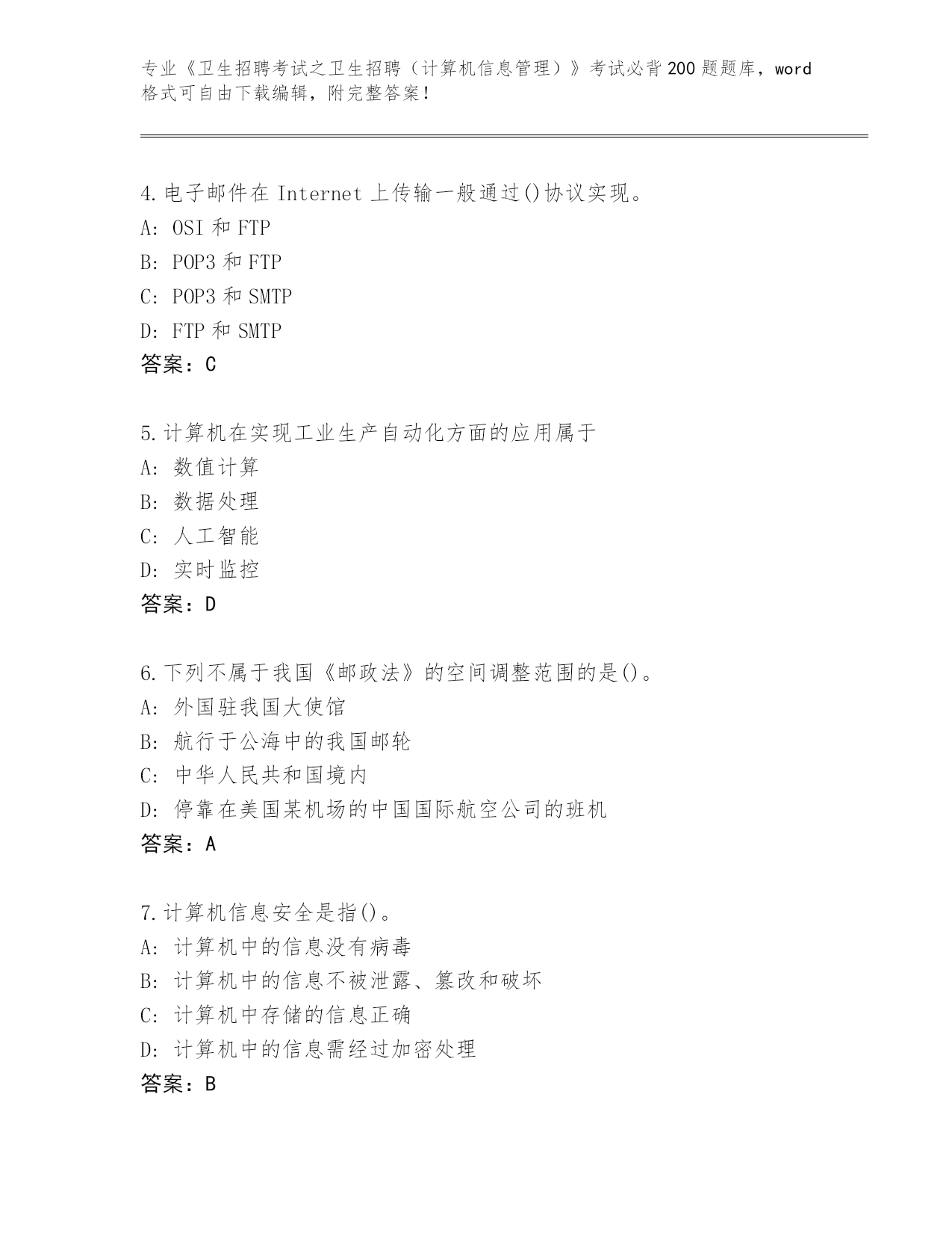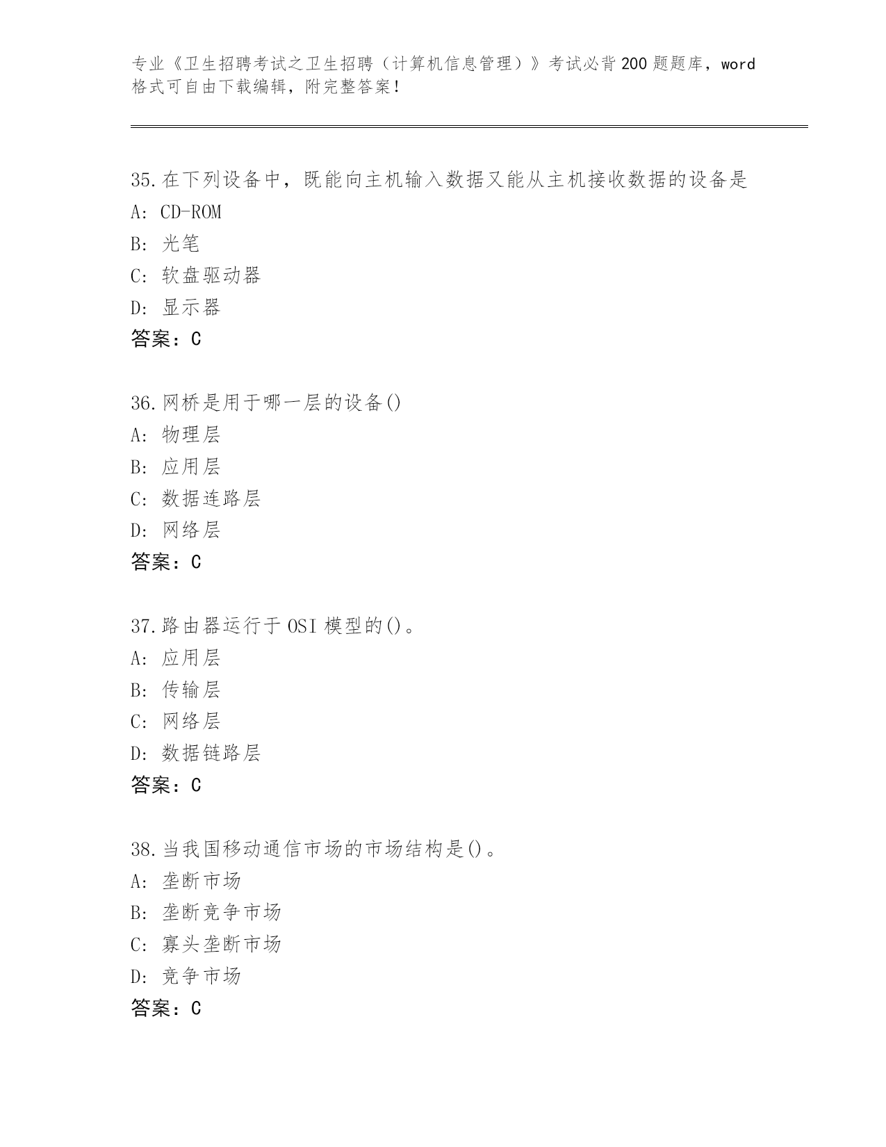 江西省《卫生招聘考试之卫生招聘(计算机信息管理)》考试必背200题真题【研优卷】