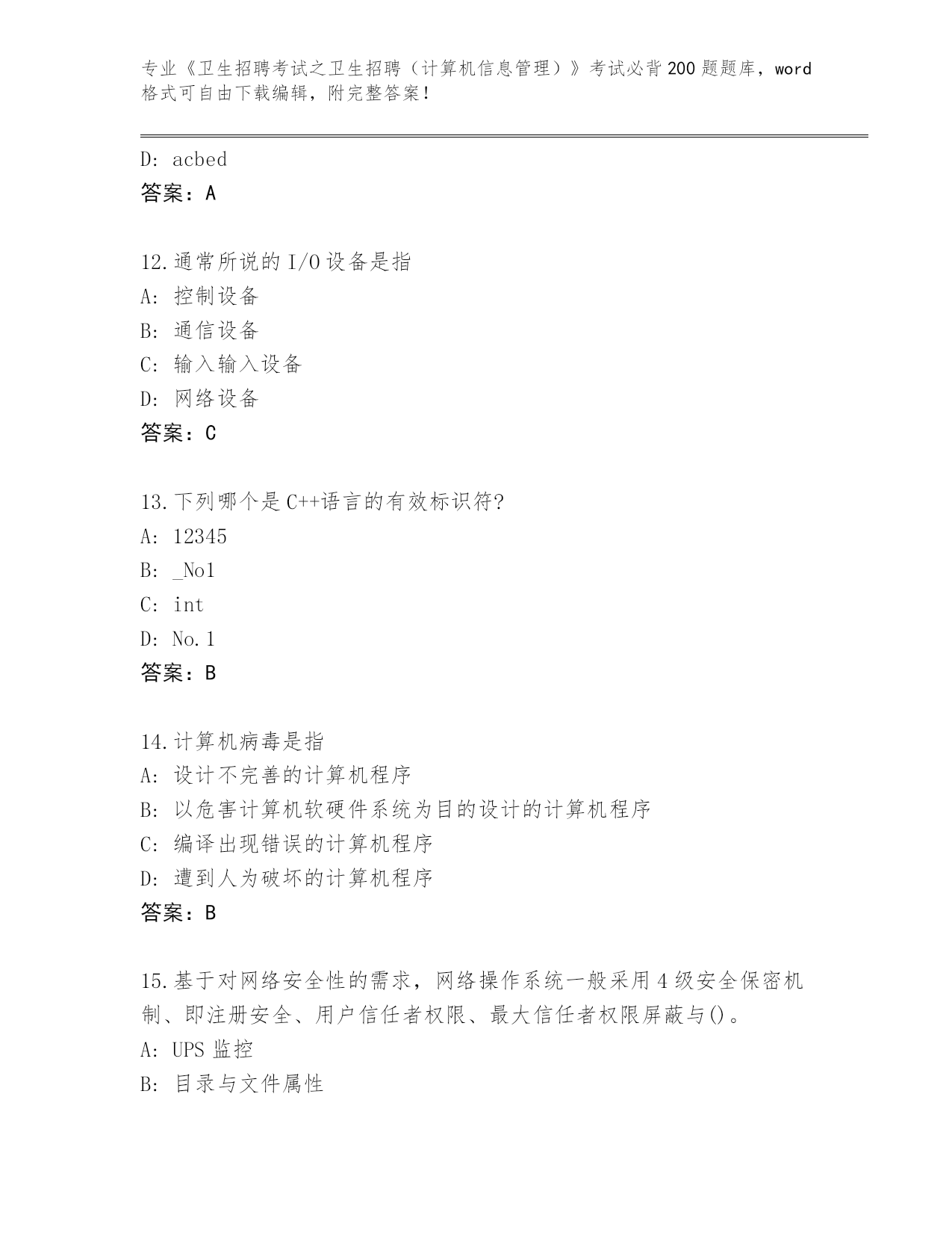 整理广东省《卫生招聘考试之卫生招聘(计算机信息管理)》考试必背200题附答案【研优卷】